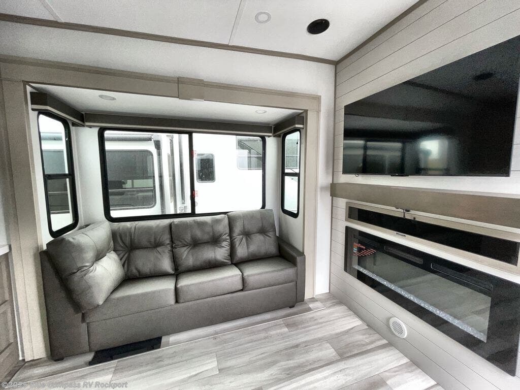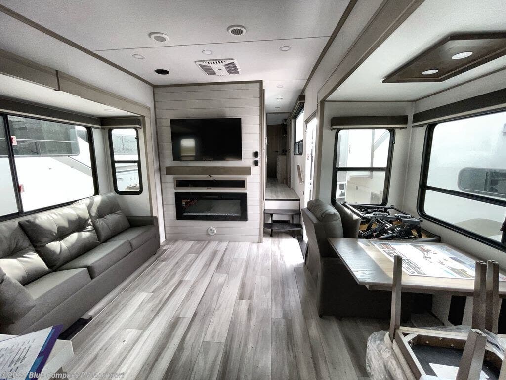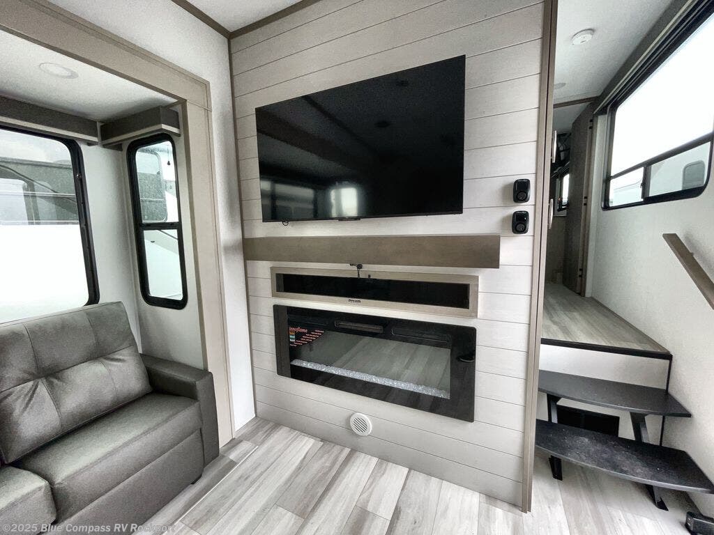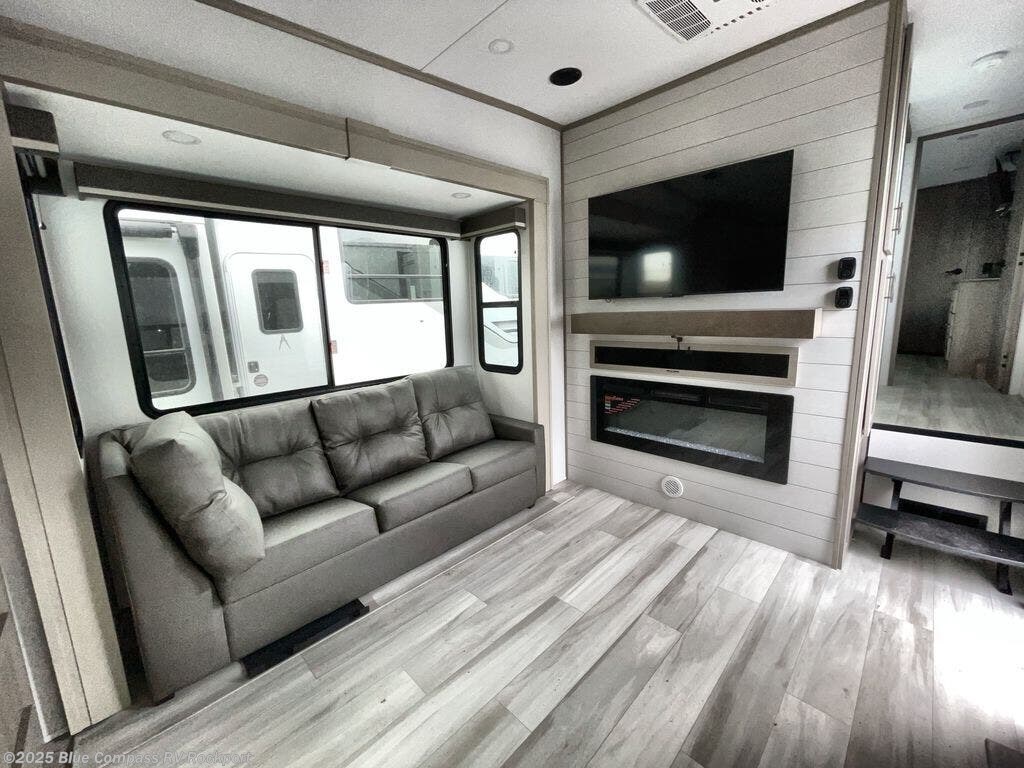 Any Grand Design Influence fifth wheel features five-sided aluminum cage construction with a walk-on roof and a fully enclosed underbelly with heated tanks and storage for all weather camping. For peace of mind, the MORryde CRE3000 Suspension system will provide safe and smooth towing, and the 101" widebody construction offers all the room you need and that is before multiple slides are fully engaged. You will appreciate the Keyed-Alike locks, slam-latch baggage doors with magnetic door catches, exterior security light, and SolidStep entry steps. On the inside, Congoleum flooring, premium roller shades for privacy, a hallway handrail for safety, and nightstands with USB ports to keep all of your electronics fully charged. You will also love the On Demand tankless water heater when showering, plus the added heat and ambiance from an electric fireplace, and so much more!