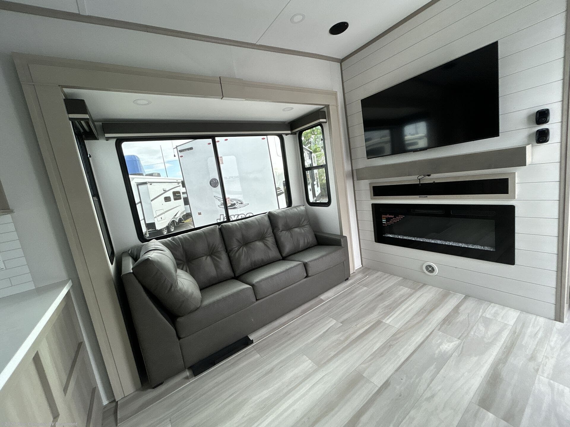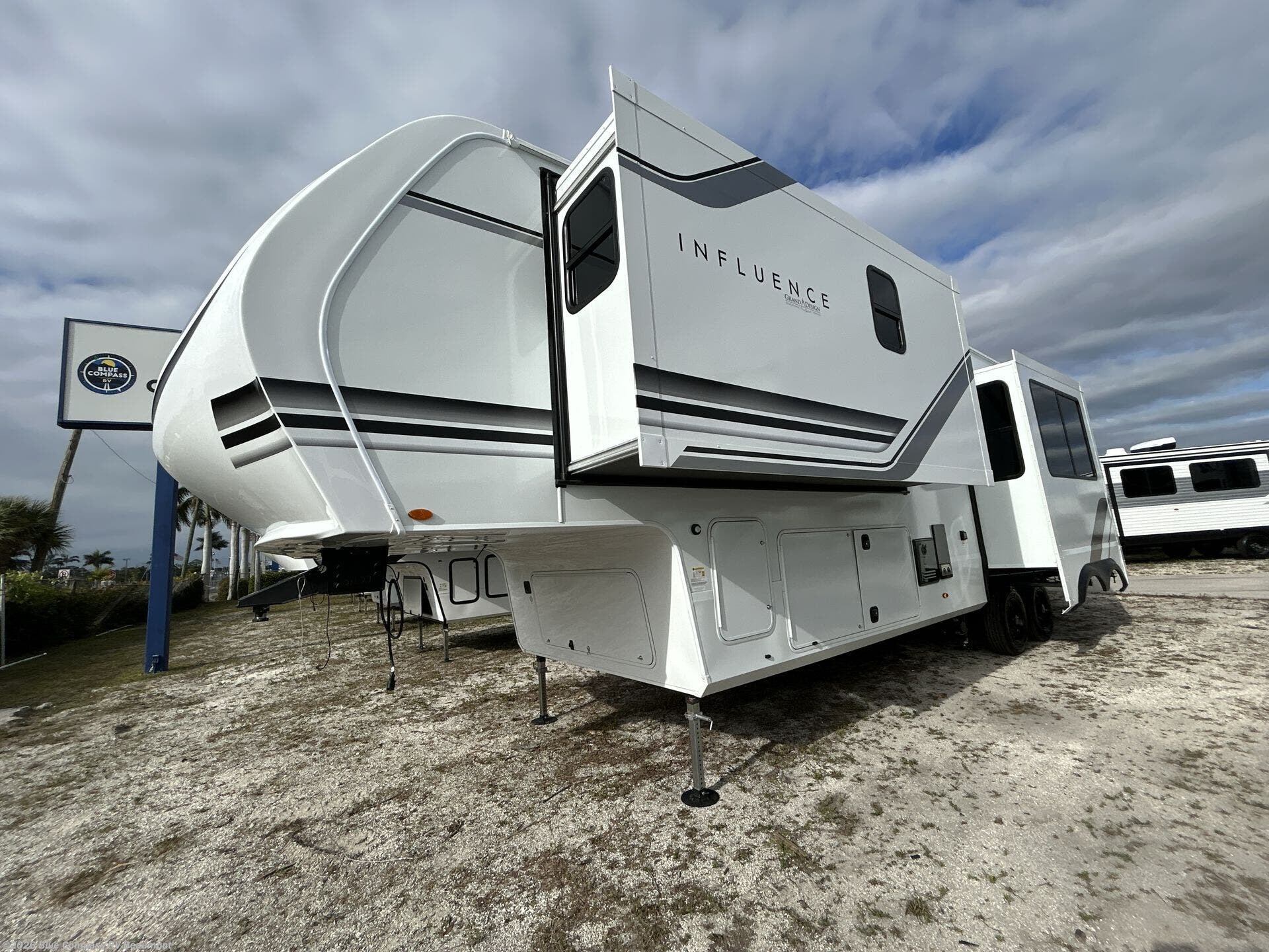 Any Grand Design Influence fifth wheel features five-sided aluminum cage construction with a walk-on roof and a fully enclosed underbelly with heated tanks and storage for all weather camping. For peace of mind, the MORryde CRE3000 Suspension system will provide safe and smooth towing, and the 101" widebody construction offers all the room you need and that is before multiple slides are fully engaged. You will appreciate the Keyed-Alike locks, slam-latch baggage doors with magnetic door catches, exterior security light, and SolidStep entry steps. On the inside, Congoleum flooring, premium roller shades for privacy, a hallway handrail for safety, and nightstands with USB ports to keep all of your electronics fully charged. You will also love the On Demand tankless water heater when showering, plus the added heat and ambiance from an electric fireplace, and so much more!