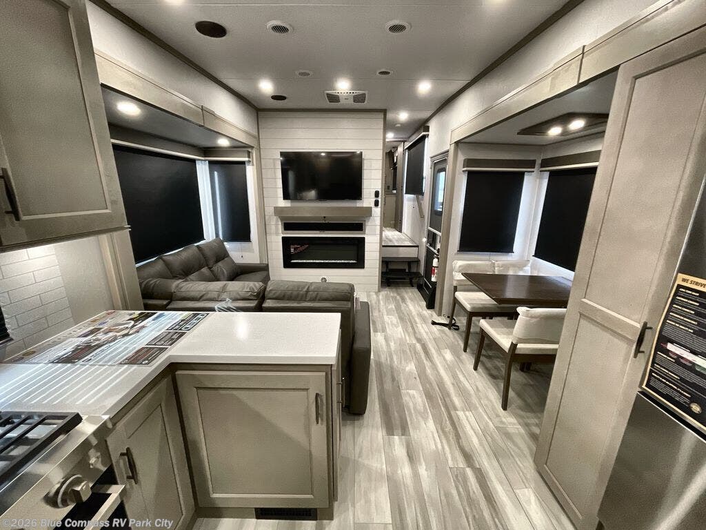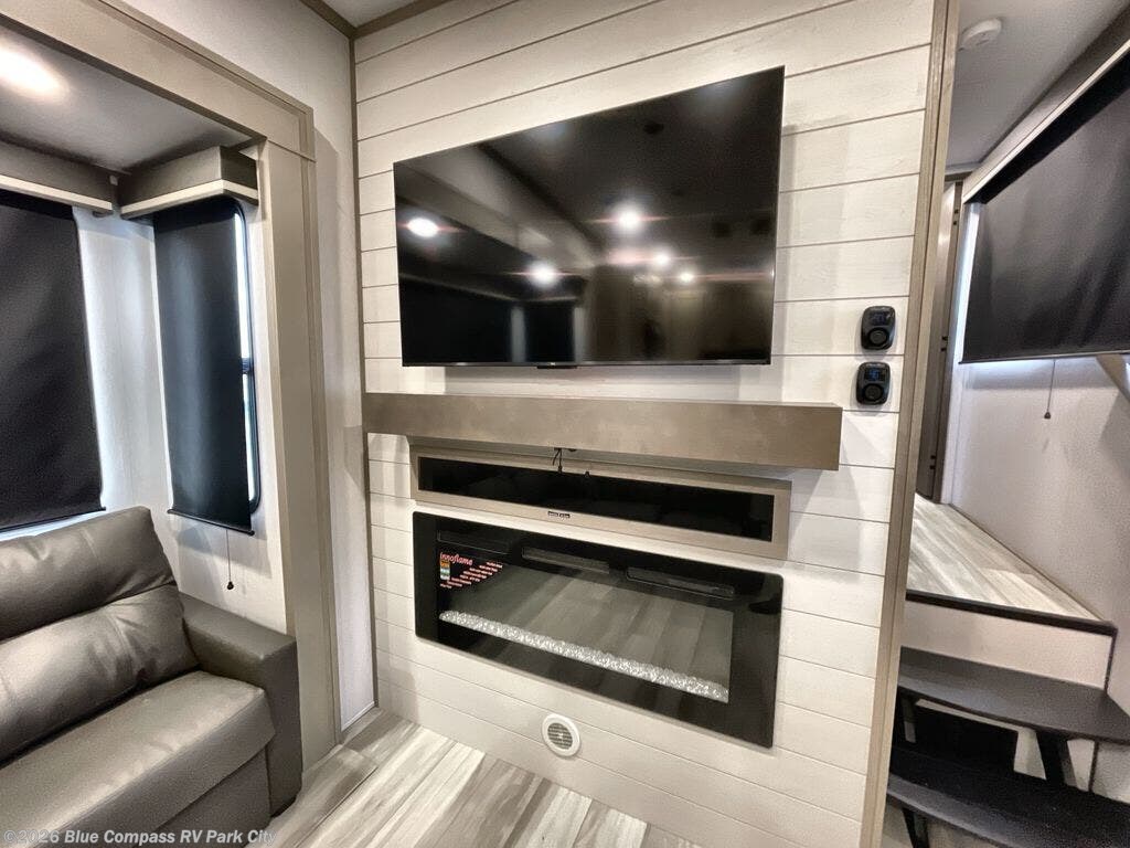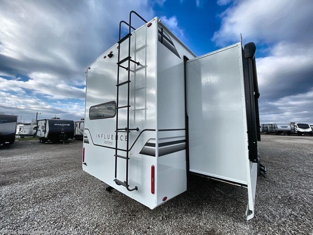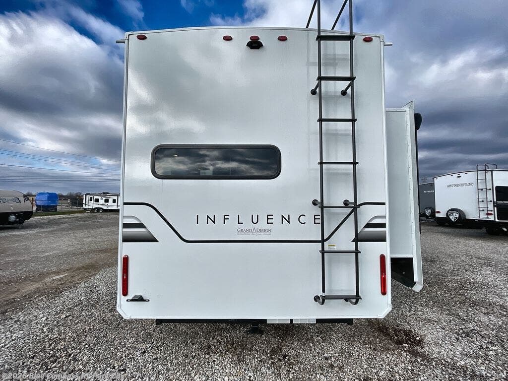 Any Grand Design Influence fifth wheel features five-sided aluminum cage construction with a walk-on roof and a fully enclosed underbelly with heated tanks and storage for all weather camping. For peace of mind, the MORryde CRE3000 Suspension system will provide safe and smooth towing, and the 101" widebody construction offers all the room you need and that is before multiple slides are fully engaged. You will appreciate the Keyed-Alike locks, slam-latch baggage doors with magnetic door catches, exterior security light, and SolidStep entry steps. On the inside, Congoleum flooring, premium roller shades for privacy, a hallway handrail for safety, and nightstands with USB ports to keep all of your electronics fully charged. You will also love the On Demand tankless water heater when showering, plus the added heat and ambiance from an electric fireplace, and so much more!