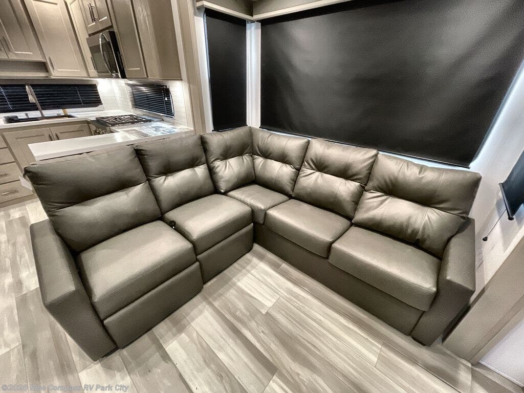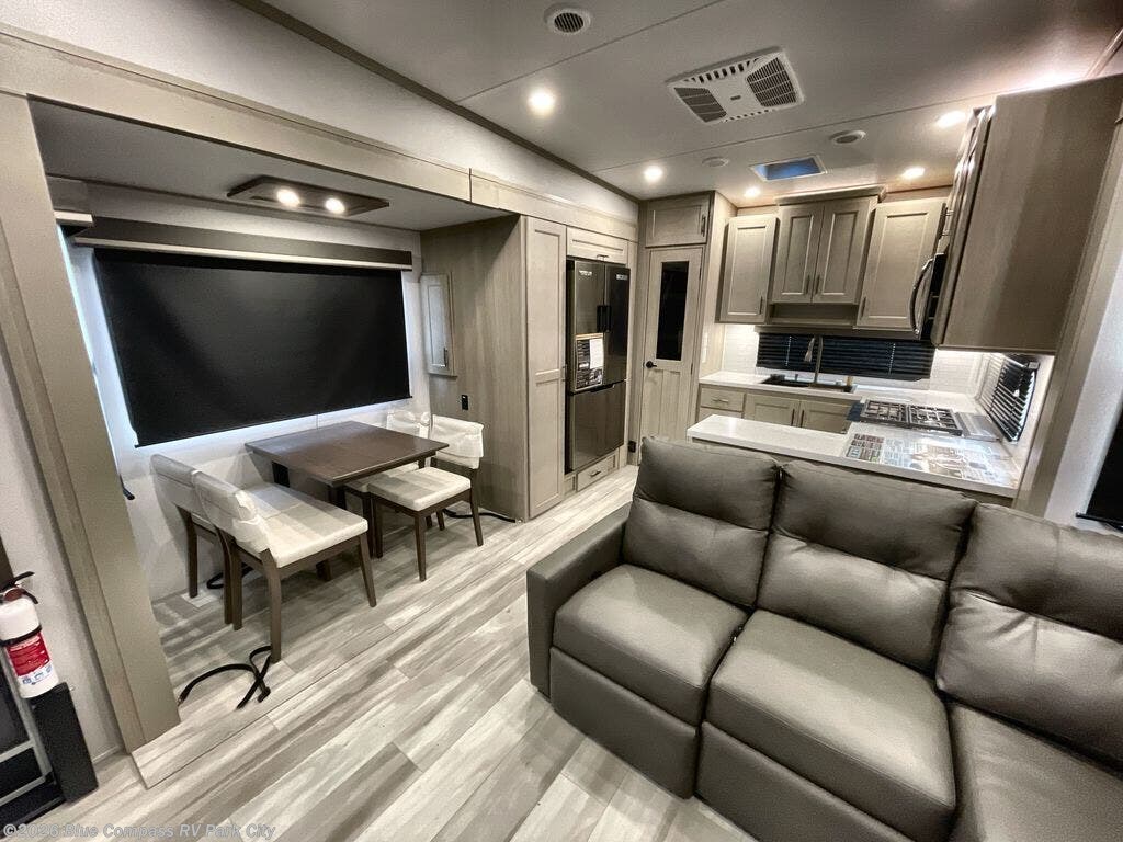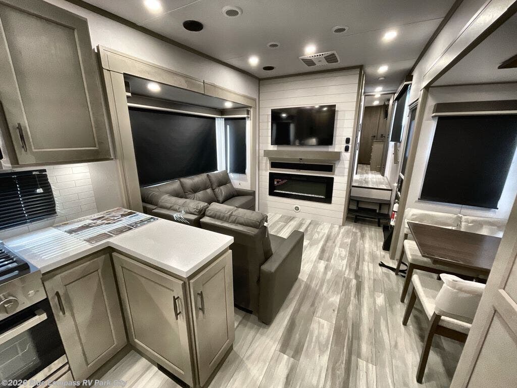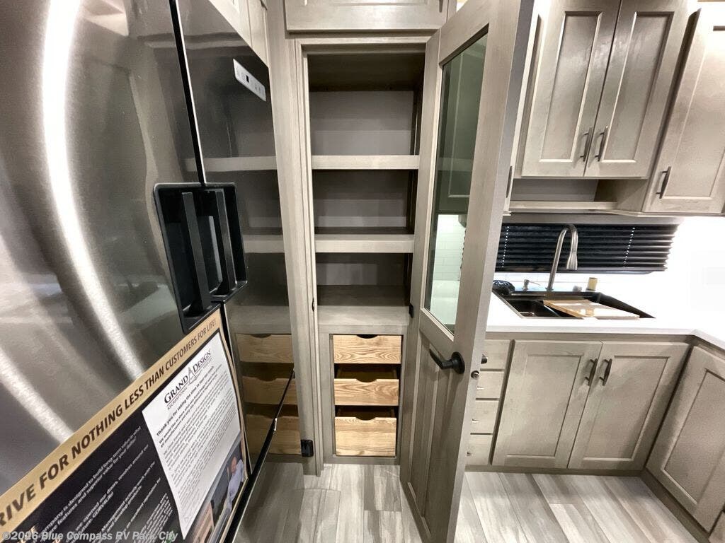 Any Grand Design Influence fifth wheel features five-sided aluminum cage construction with a walk-on roof and a fully enclosed underbelly with heated tanks and storage for all weather camping. For peace of mind, the MORryde CRE3000 Suspension system will provide safe and smooth towing, and the 101" widebody construction offers all the room you need and that is before multiple slides are fully engaged. You will appreciate the Keyed-Alike locks, slam-latch baggage doors with magnetic door catches, exterior security light, and SolidStep entry steps. On the inside, Congoleum flooring, premium roller shades for privacy, a hallway handrail for safety, and nightstands with USB ports to keep all of your electronics fully charged. You will also love the On Demand tankless water heater when showering, plus the added heat and ambiance from an electric fireplace, and so much more!