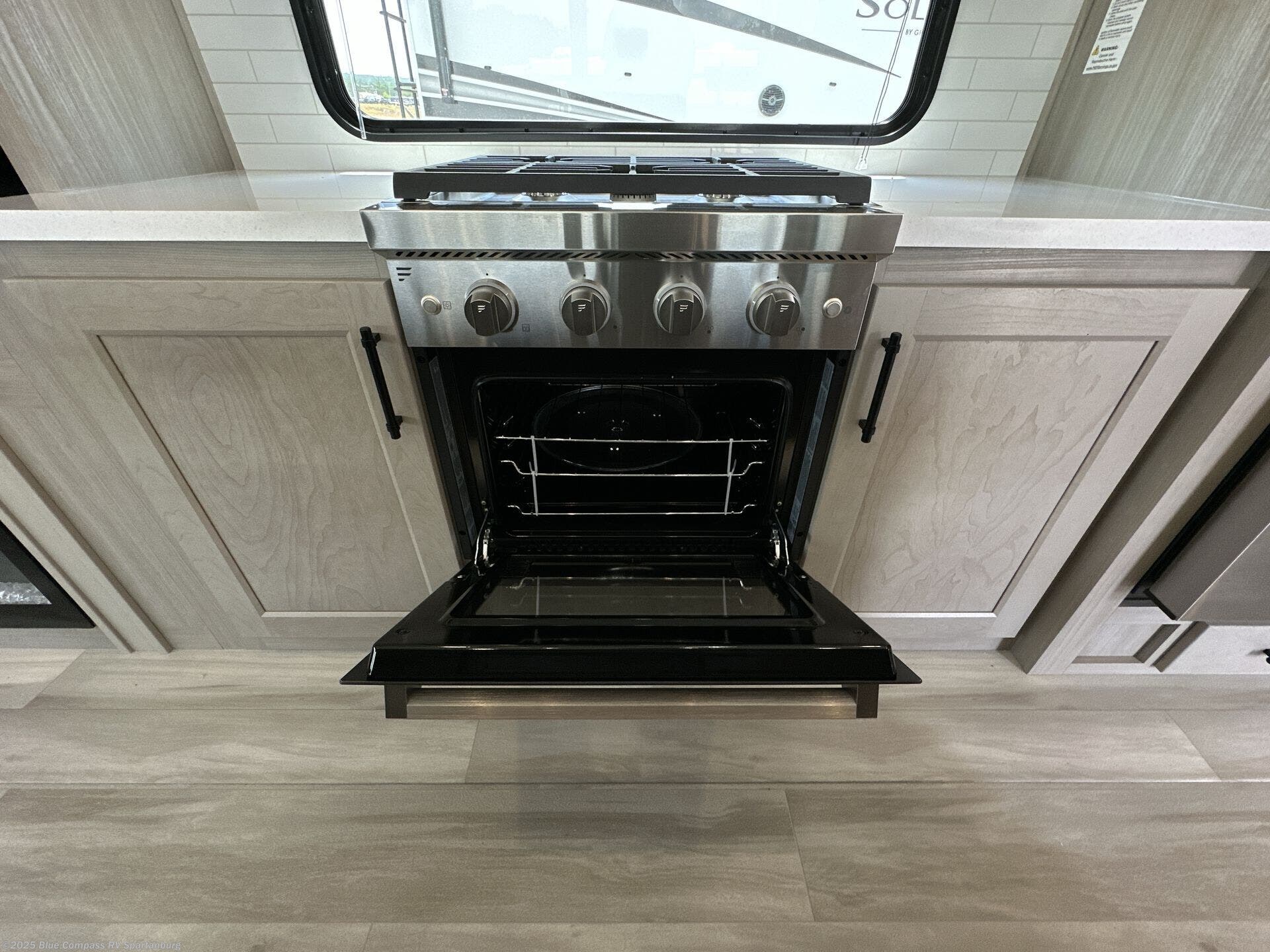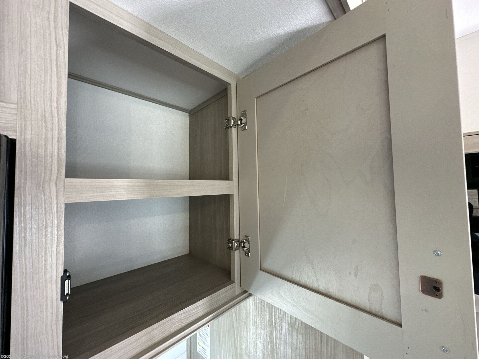 A perfect couples coach featuring triple slides and a tri-fold sofa just in case you want to have overnight guests! You will love the spacious interior thanks to the dual opposing slides in the main living and kitchen area. Here you will find a kitchen island in the center and plenty of seating with a free standing dinette, theater seating for movie night opposite the fireplace and entertainment center, as well as a tri-fold sofa. The kitchen offers all of the amenities just like home, a 16 cu. ft. 12-volt refrigerator for your perishables, and a pantry and hutch nearby for dry goods and dishes. There is even a pet dish under the refrigerator for your furry friends. The center island offers added counter space and a sink for dishes and prep work. Head up the steps to your private front bedroom with queen bed slide, and bathroom with dual entry. You even have washer/dryer prep in case you wish to add the units and enjoy even more at-home conveniences!