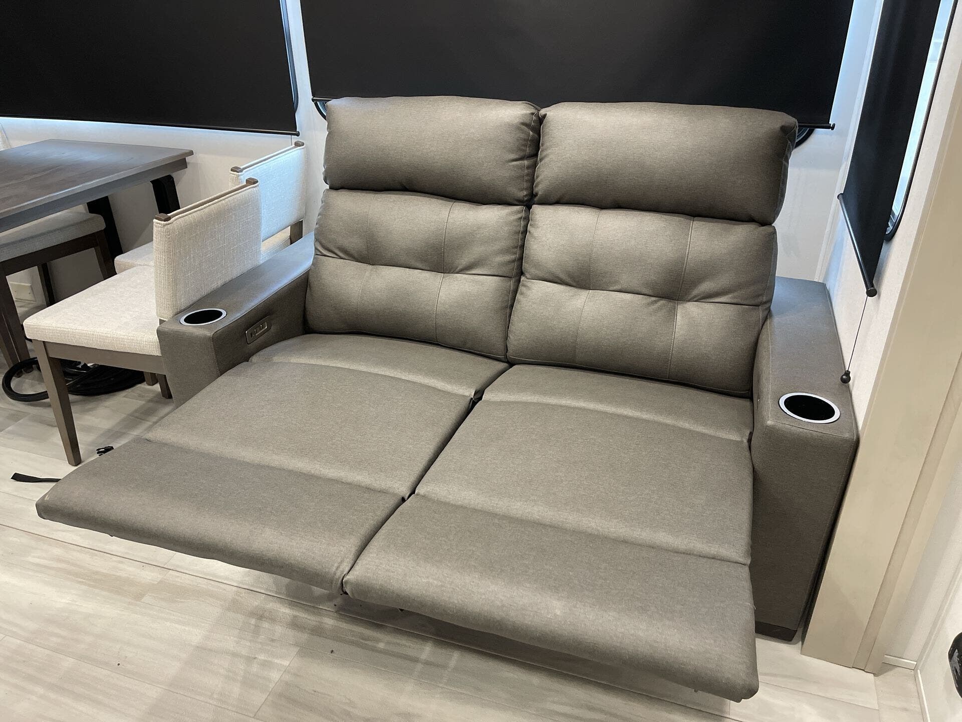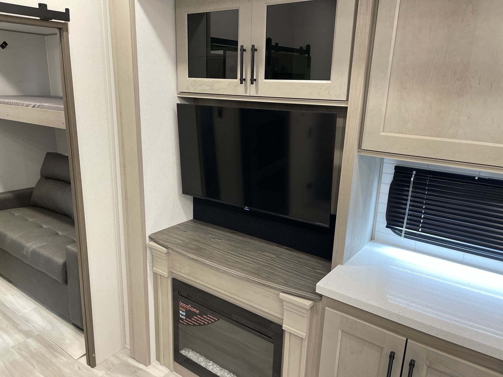 The Influence model is packed with modern conveniences to enhance your journey. Inside, you'll find a full kitchen equipped with a microwave, oven, refrigerator, and a stove top burner – perfect for preparing meals on the road. The spacious bathroom includes a shower, toilet, and a medicine cabinet, while additional features like a fireplace add warmth and ambiance. The interior also boasts a free-standing dinette with chairs, a comfortable rocker recliner, and a skylight to bring in natural light, creating a welcoming home away from home.