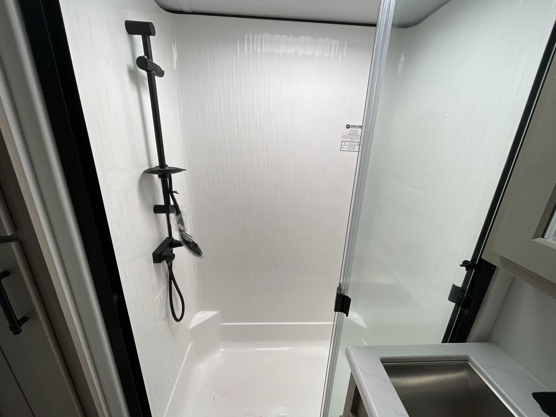 Comfort continues with climate control features such as a 15,000 BTU air conditioner and power roof vents. For entertainment, enjoy integrated satellite radio, a TV, and exterior speakers, perfect for outdoor gatherings. The outside of the RV features an awning, exterior shower, ladder, full leveling jacks, and an outside kitchen, elevating outdoor living experiences. For convenience, this fifth wheel includes a spare tire kit, roof vents, and a slideout that expands the living space even further.