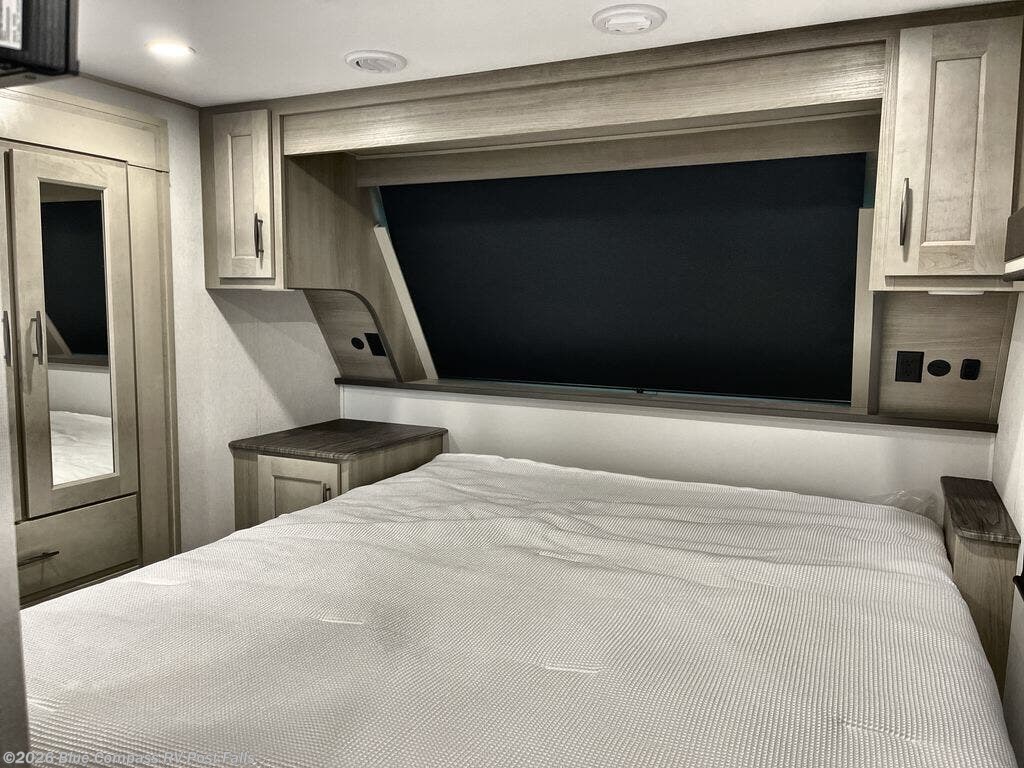 Any Grand Design Influence fifth wheel features five-sided aluminum cage construction with a walk-on roof and a fully enclosed underbelly with heated tanks and storage for all weather camping. For peace of mind, the MORryde CRE3000 Suspension system will provide safe and smooth towing, and the 101" widebody construction offers all the room you need and that is before multiple slides are fully engaged. You will appreciate the Keyed-Alike locks, slam-latch baggage doors with magnetic door catches, exterior security light, and SolidStep entry steps. On the inside, Congoleum flooring, premium roller shades for privacy, a hallway handrail for safety, and nightstands with USB ports to keep all of your electronics fully charged. You will also love the On Demand tankless water heater when showering, plus the added heat and ambiance from an electric fireplace, and so much more!