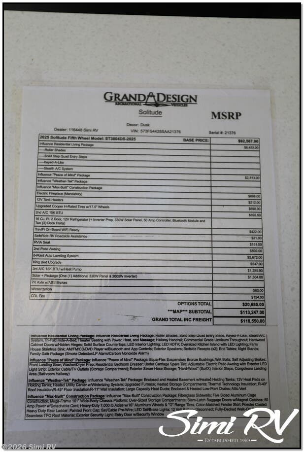 Request More Info on this 2025 Grand Design Influence 3804DS Offered for sale by Simi RV