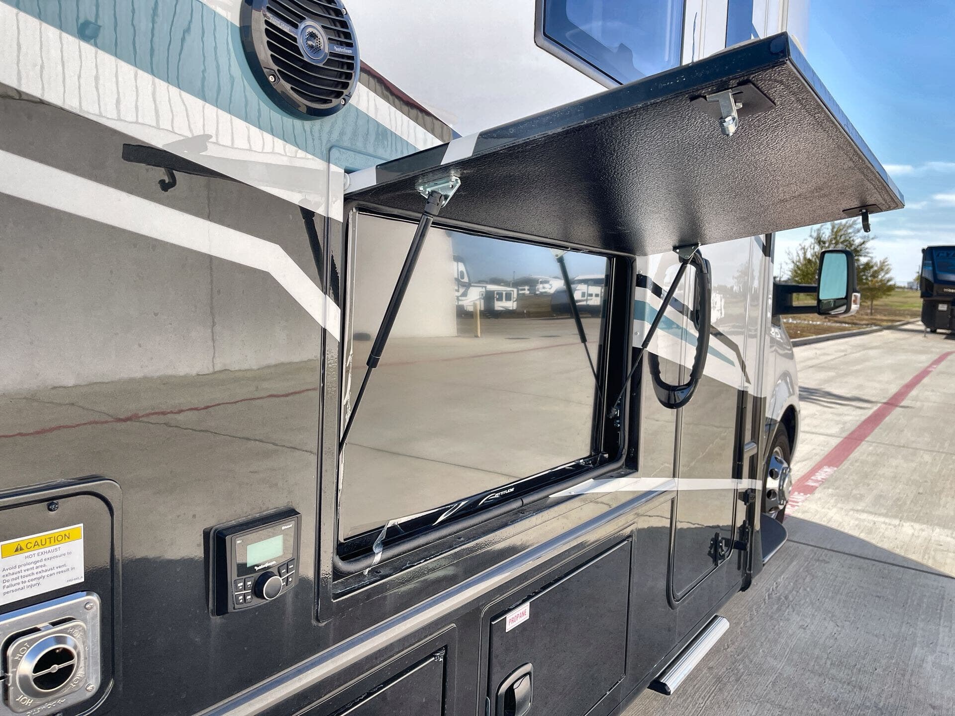 Backup Monitor, Hitch, Leveling Jacks, Power Awning, Slideout -