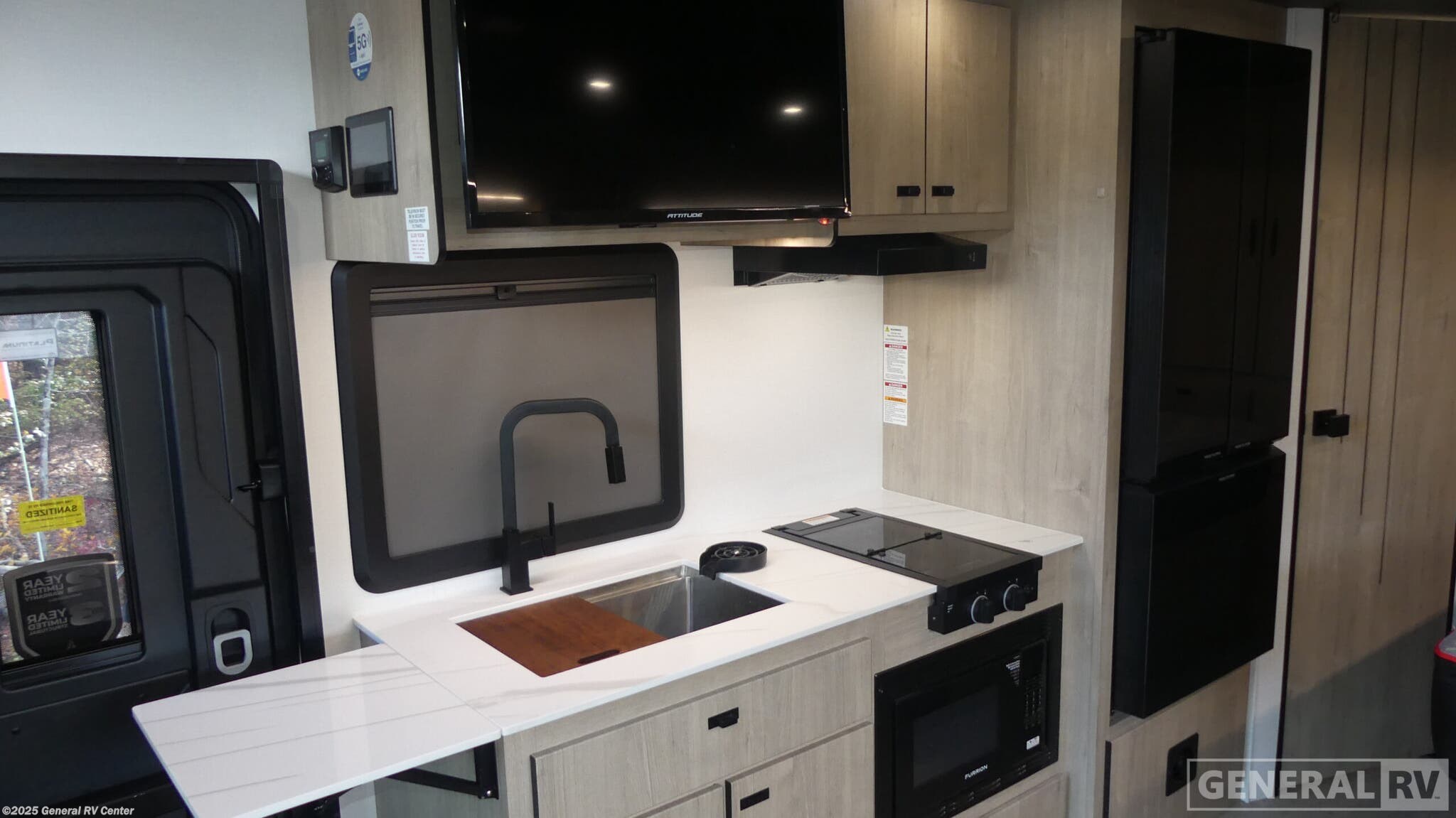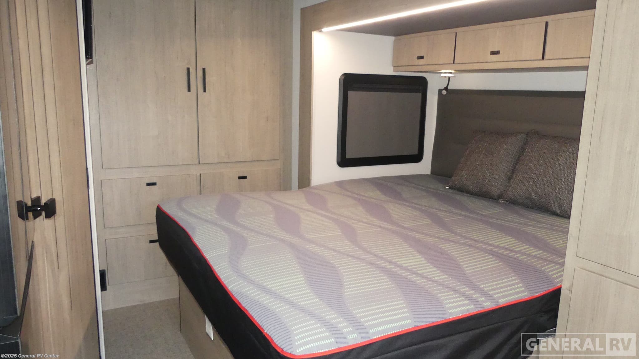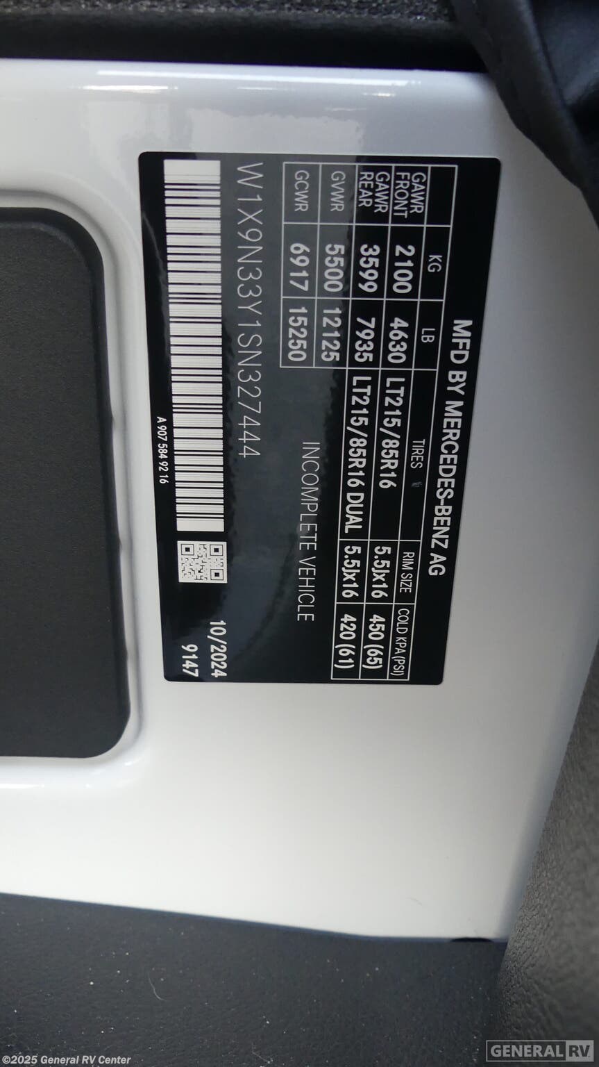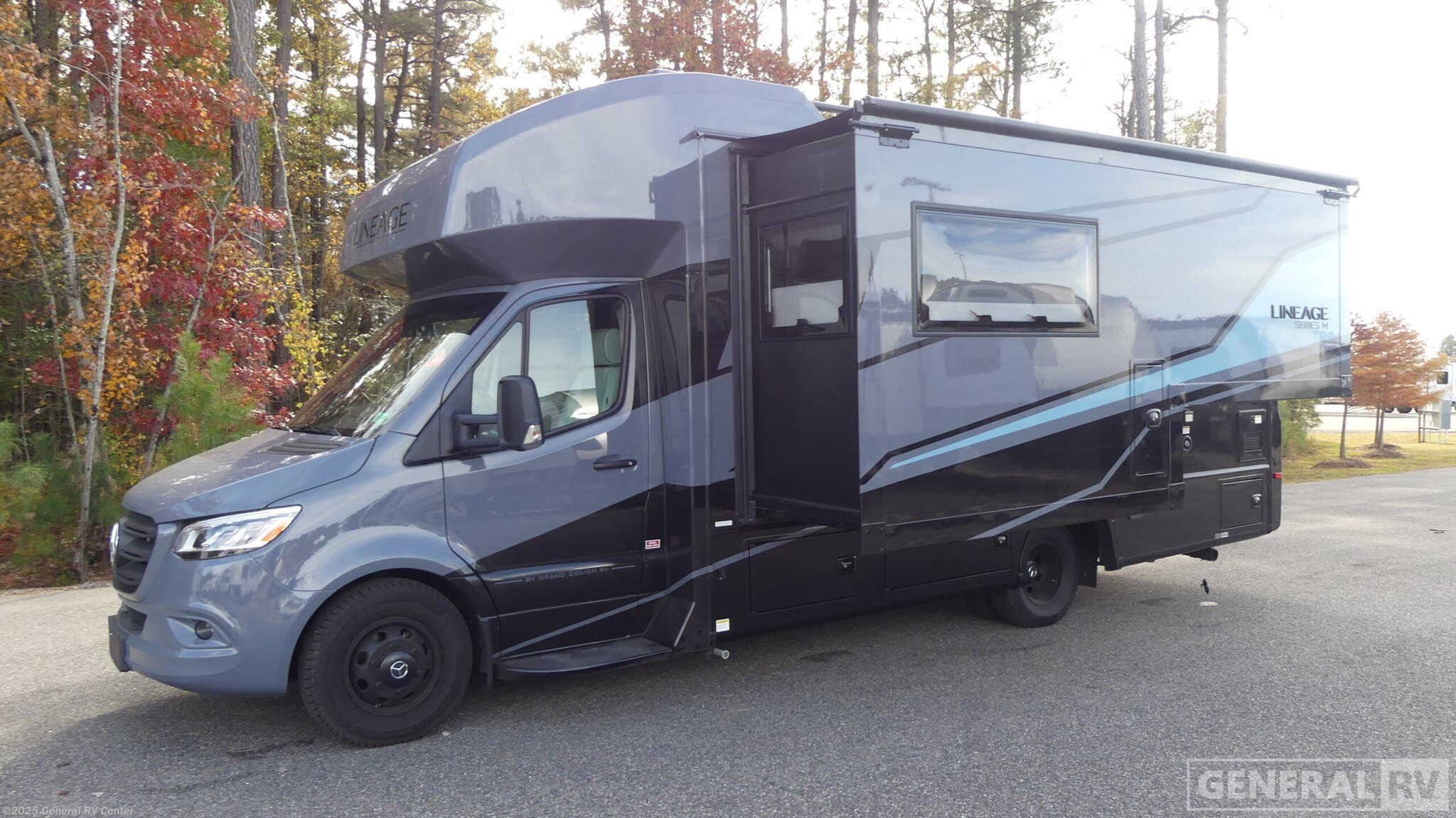 Experience the ultimate in comfort and style with the 2025 Grand Design Lineage 25FW. This exceptional RV is designed for those who crave adventure without sacrificing the comforts of home. The spacious interior features a luxurious king-sized bed, ensuring restful nights after a day of exploration. The front living area is perfect for relaxation, with power theater seating that invites you to unwind and enjoy your favorite shows on the conveniently placed TV. The center kitchen is a chef's delight, equipped with a full-size refrigerator and a convection cooktop, making meal preparation a breeze. The thoughtful design extends to the rear bath, offering privacy and convenience with a shower curtain and ample storage. With a 16 ft. powered retractable awning, outdoor enjoyment is just a step away, providing the perfect setting for alfresco dining or simply soaking in the scenery. Built on a robust Mercedes-Benz Sprinter 4500 chassis, this RV combines power and efficiency, making it a reliable companion for all your travels. For more details and to experience this RV firsthand, visit your nearest General RV dealership.