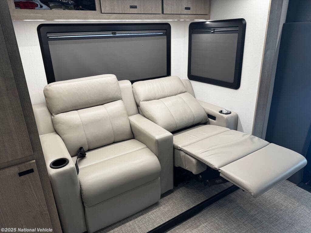 Living Area: Dual theater-style recliners in matching Ultra-Leather upholstery ? complete with cupholders and power recline.