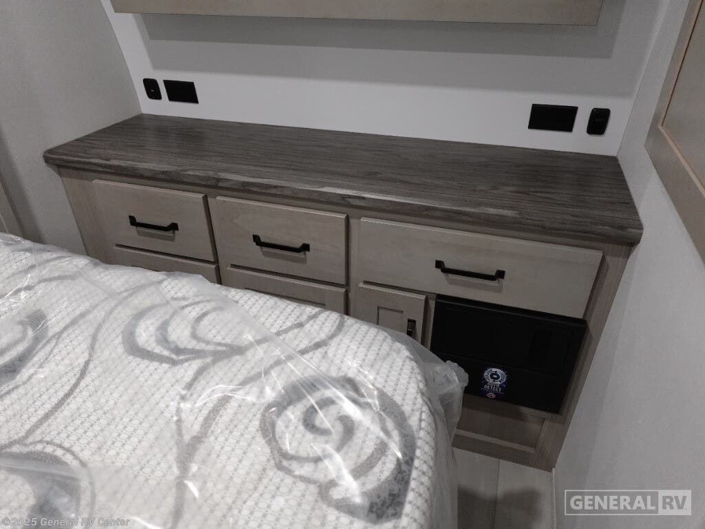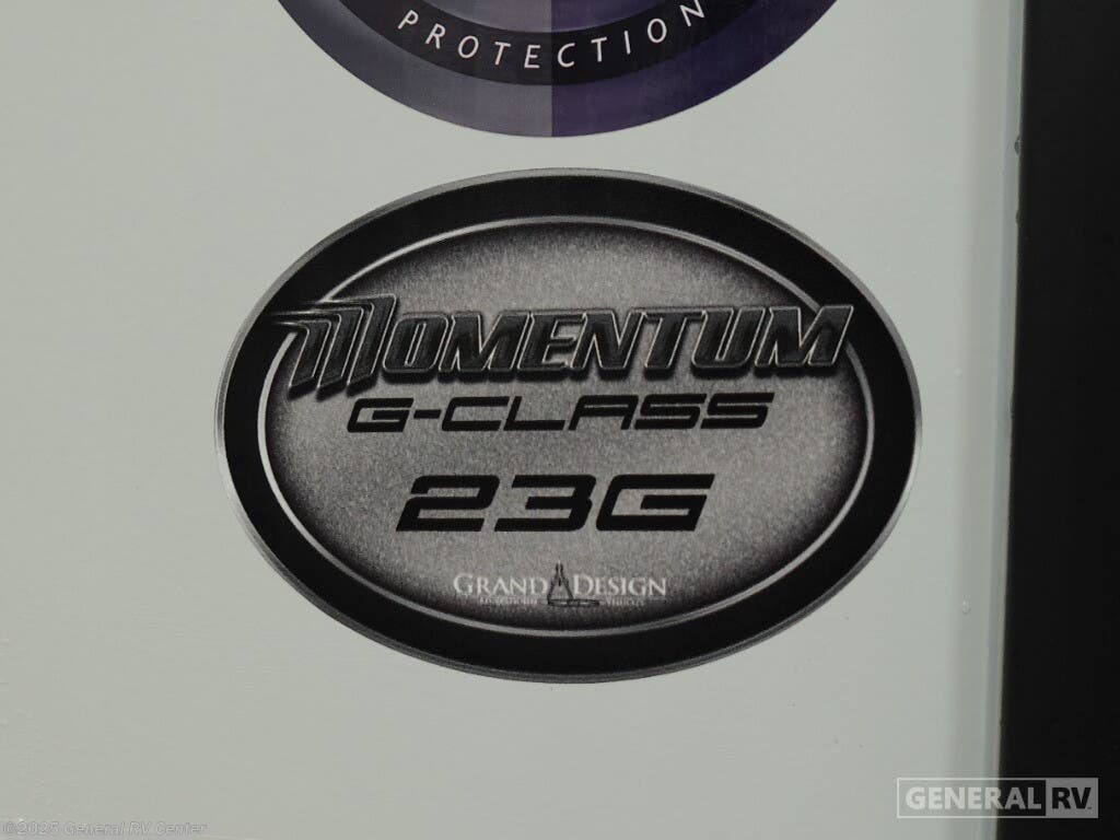 Introducing the 2025 Grand Design Momentum G-Class 23G, a marvel of modern RV engineering that beautifully combines luxury and functionality. With its sleek design and spacious interior, this model is perfect for families or groups looking to explore the open road in style. The 23G features a versatile center kitchen and living area, offering a mid-size refrigerator and a three-burner cooktop, making it easy to prepare meals on the go. The 15-foot garage is a standout feature, providing ample space for your adventure gear, while the convertible seating area ensures you can relax in comfort. The front bedroom boasts a king-sized bed, promising restful nights after a day of adventure. With a total sleeping capacity for six, including a full-size bed and convertible options, this RV accommodates everyone comfortably. Enjoy outdoor living under the expansive 18-foot powered retractable awning, perfect for those sunny afternoons. The unit's impressive water capacities, including a 90-gallon fresh water tank, ensure you're well-equipped for extended trips. With its robust construction and thoughtful design, the Momentum G-Class 23G is your ticket to unforgettable journeys. For more details, visit your nearest General RV dealership.