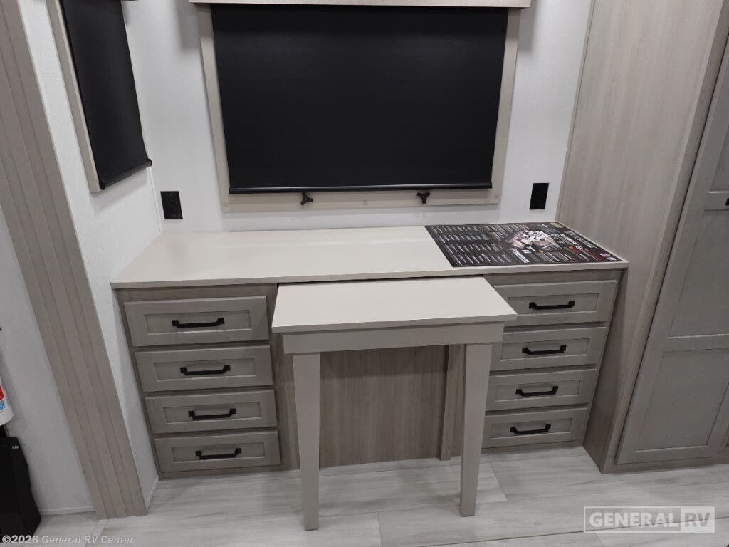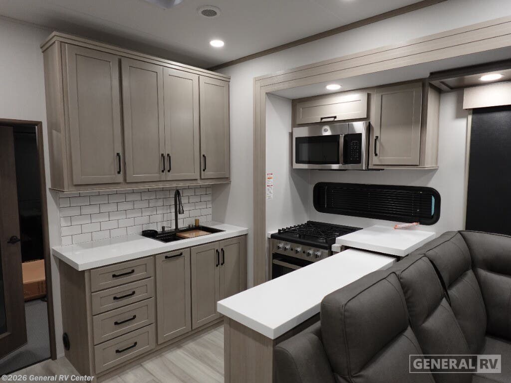 Step into the world of luxury and adventure with the 2025 Grand Design Momentum M-Class 344M. This stunning fifth wheel is designed for those who crave both comfort and functionality while exploring the open road. With a spacious layout that includes a center kitchen and living area, you’ll find everything you need to entertain or relax after a day of excitement. The hybrid desk and dinette provide a versatile space for dining or working remotely, while the full-size refrigerator and three-burner cooktop ensure you can whip up your favorite meals with ease. Sleeping up to seven, this RV features a plush queen bed, an optional king bed, and a convertible sleeping area, making it perfect for family adventures. The 11-foot garage with Happi-Jac rollover sofas offers additional sleeping space or storage for your toys. Enjoy the convenience of a washer and dryer, and unwind under one of the two powered retractable awnings. With a generous fresh water capacity of 140 gallons and ample gray and black water storage, the Momentum 344M is ready for extended trips. Visit your nearest General RV dealership to experience this masterpiece in person and start your next journey in style.