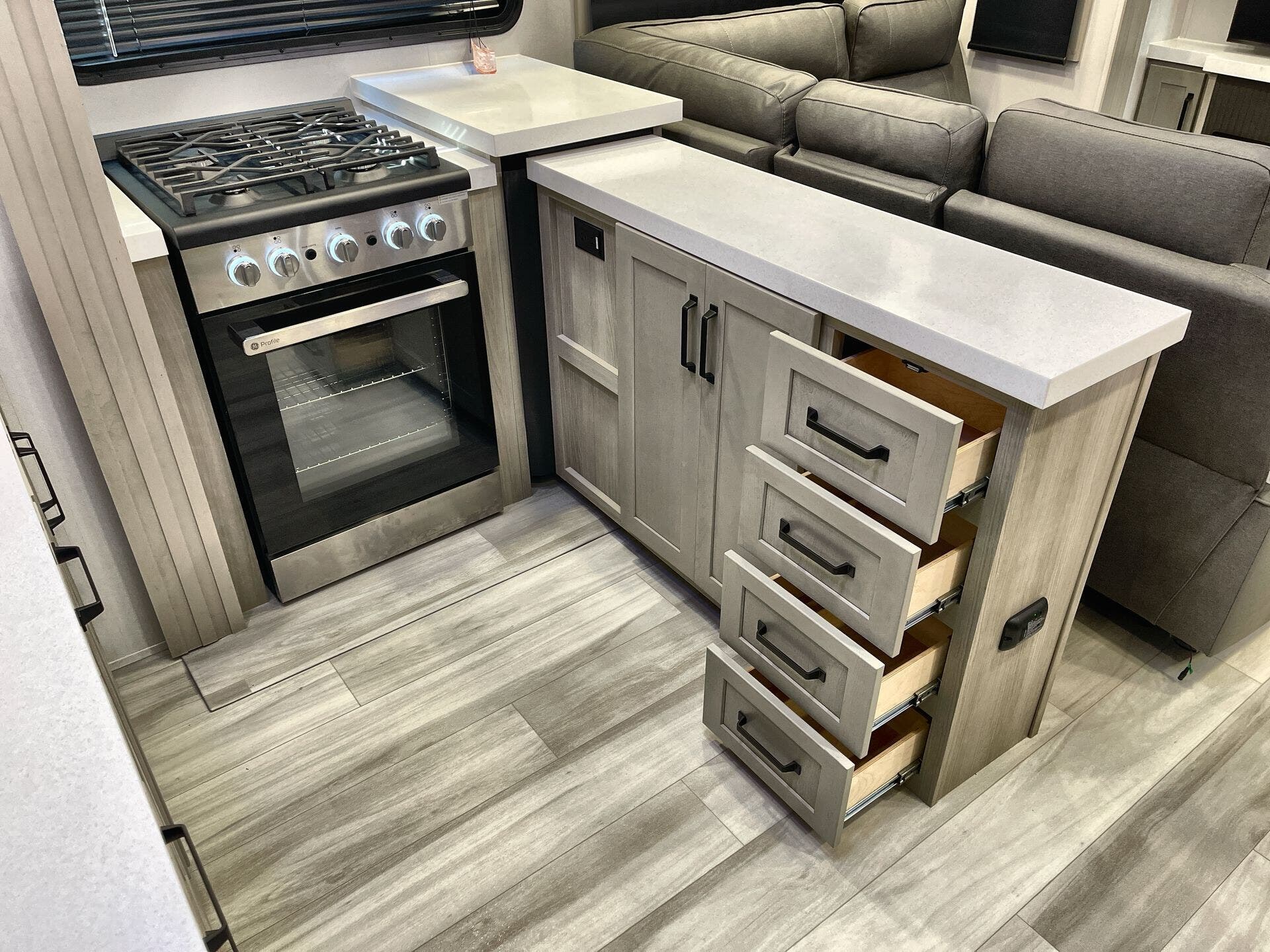 - Leveling Jacks, Power Awning, and Slideout for easy setup