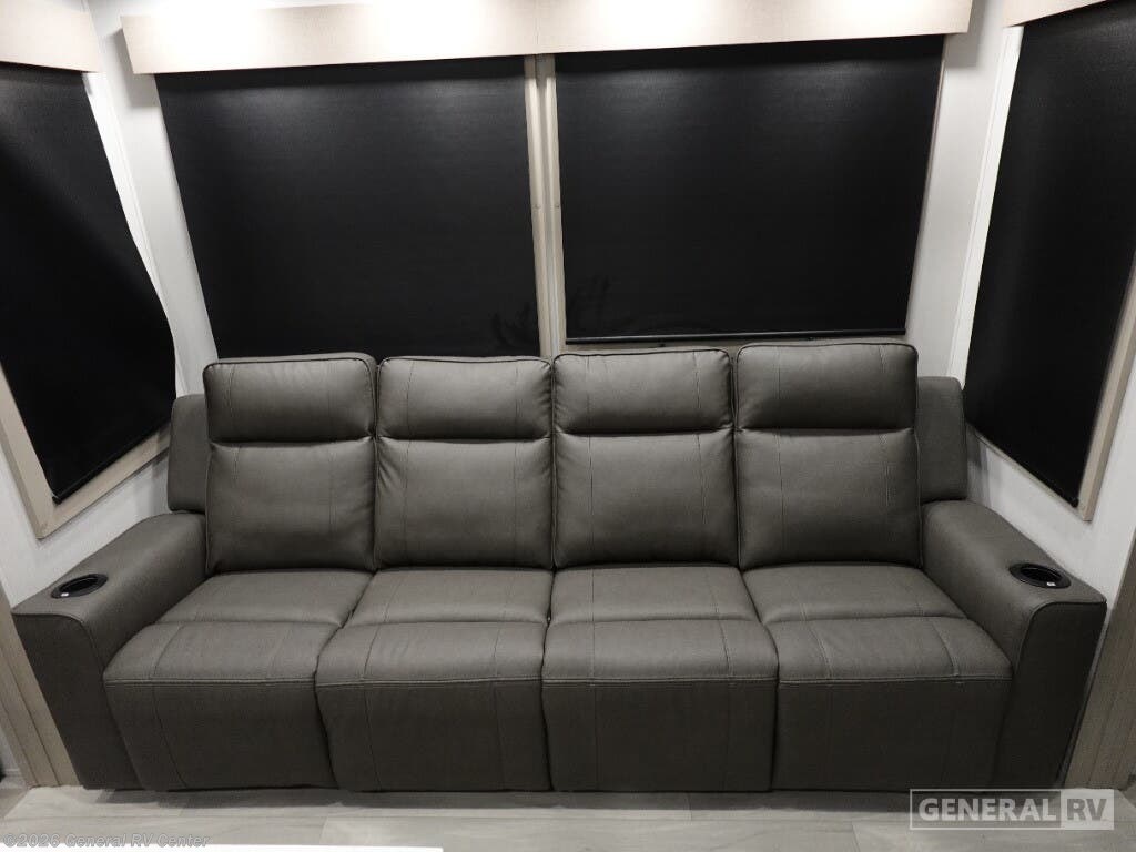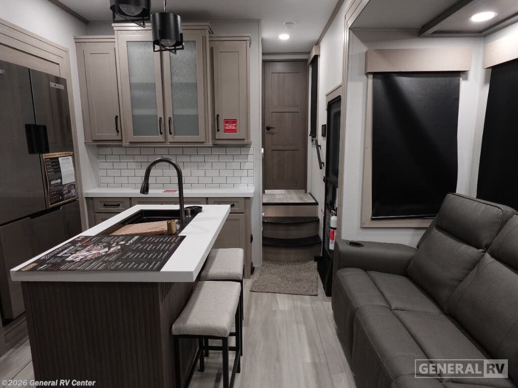 Step into the world of luxury and adventure with the 2025 Grand Design Momentum M-Class 351MS. This stunning fifth wheel redefines what it means to travel in style, offering a spacious and versatile interior that accommodates up to seven sleepers. With a king bed, two queen beds, and a convertible option, you can invite the whole family or a group of friends for a memorable journey. The center kitchen and living area provide a perfect setting for gatherings, featuring a full-size electric/propane refrigerator, a three-burner cooktop, and a cozy fireplace to keep everyone comfortable. The Momentum 351MS is designed with convenience in mind, boasting a washer/dryer to make extended trips a breeze. The 11-foot garage not only offers ample storage for your toys but also transforms into additional sleeping space with Happi-Jac rollover sofas. With a 28-foot powered retractable awning, you can enjoy the great outdoors while being shielded from the elements. The automatic heater ensures you stay warm on chilly nights, while the 75-amp electrical service keeps everything running smoothly. Ready to hit the road in style? Visit your nearest General RV dealership to explore the possibilities with the Grand Design Momentum M-Class 351MS.