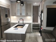 Step into the luxurious world of the 2025 Grand Design Momentum M-Class 381MS, where adventure meets comfort in perfect harmony. This stunning fifth wheel is designed for those who crave the thrill of the open road without sacrificing the comforts of home. With a spacious interior that sleeps up to seven, you'll find two cozy queen beds, a king bed, and a convertible option, making it ideal for family getaways or trips with friends. The center kitchen, equipped with a full-size refrigerator and a three-burner cooktop, is perfect for preparing delicious meals on the go. Imagine gathering around the fireplace in the center living area, sharing stories of the day's adventures. The Momentum 381MS also boasts a 15-foot garage, ready to accommodate all your toys, from bikes to ATVs. Its impressive 140-gallon fresh water capacity ensures you stay refreshed wherever your journey takes you. With two powered retractable awnings, you can easily extend your living space outdoors, creating the perfect spot for relaxing under the stars. This model includes a washer and dryer, ensuring you have all the conveniences of home while exploring new destinations. Experience the ultimate in RV living with the Grand Design Momentum, and embark on your next adventure in style. For more details, visit your nearest General RV dealership.