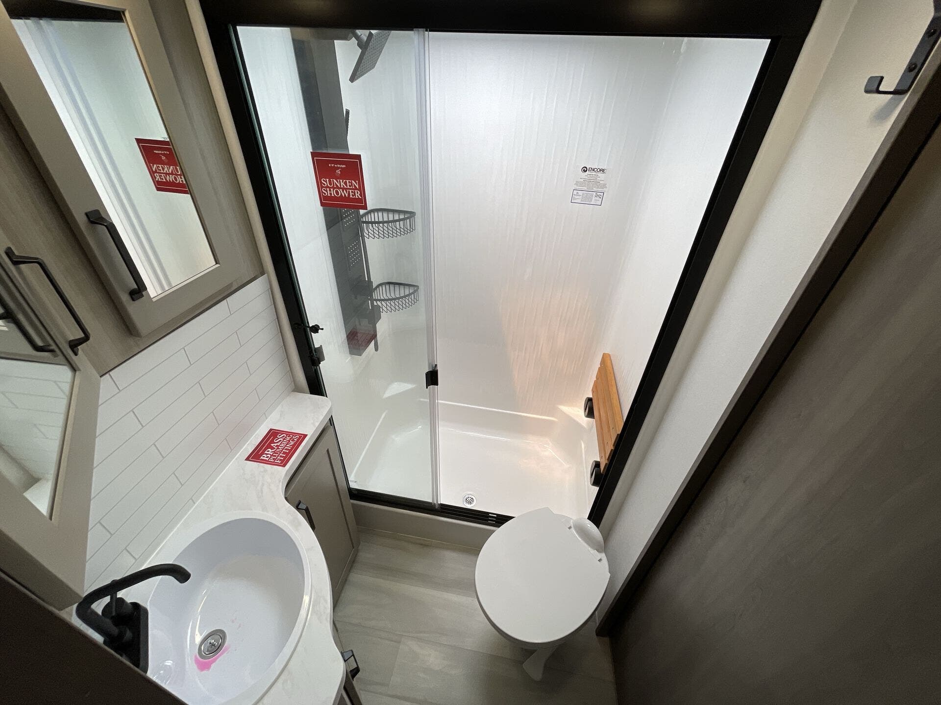 This premium travel trailer is packed with amenities designed for convenience and entertainment:
