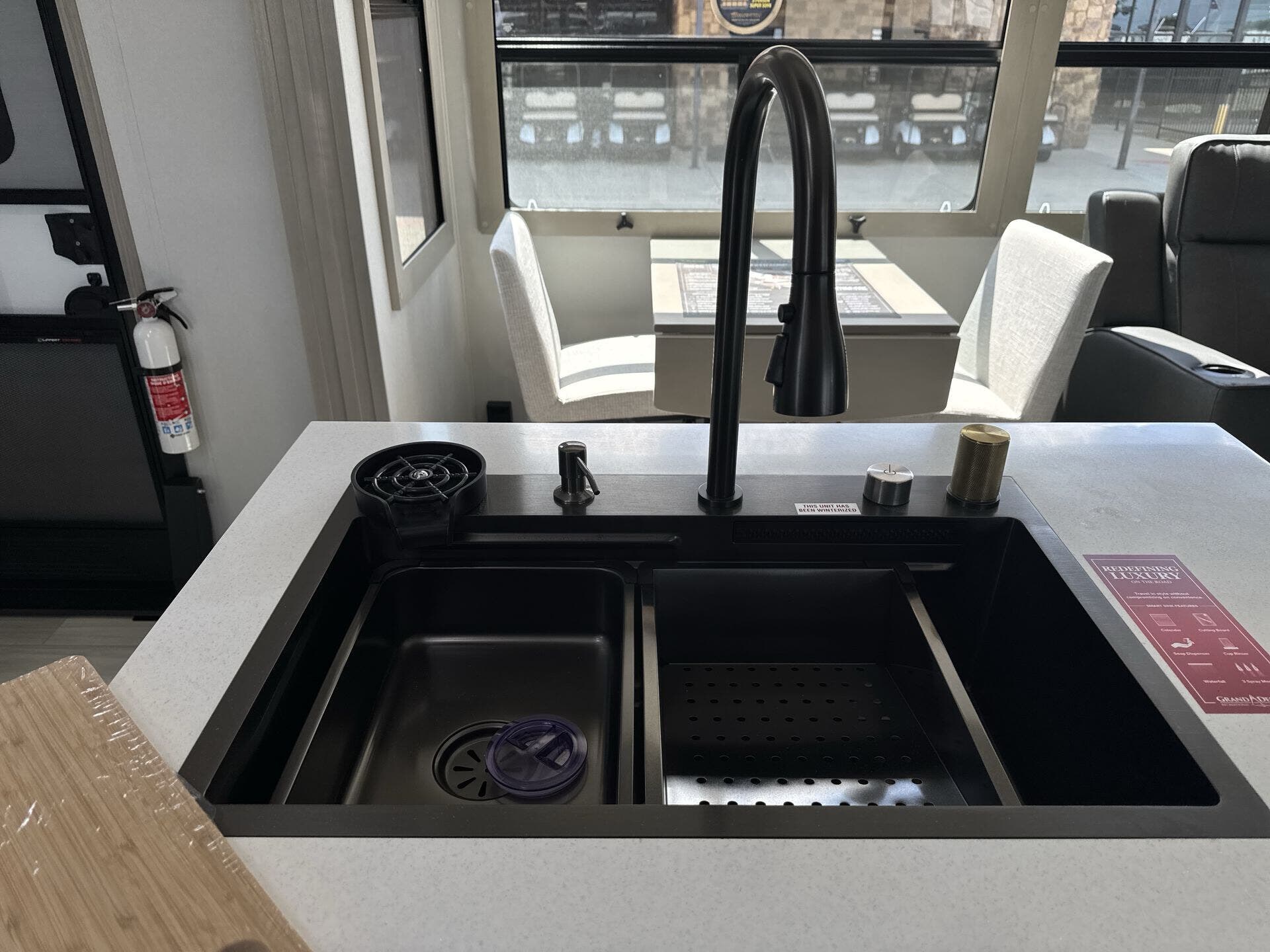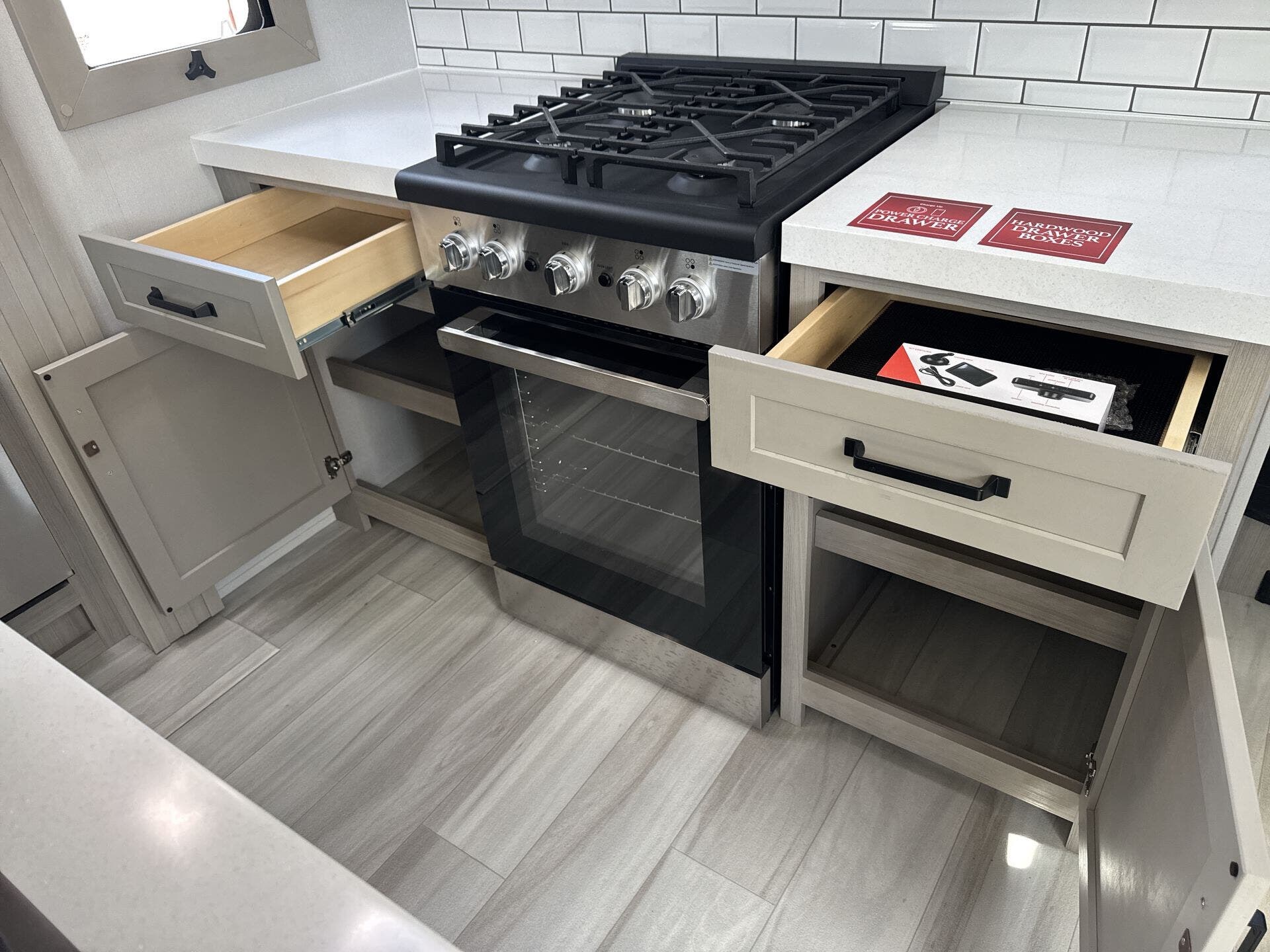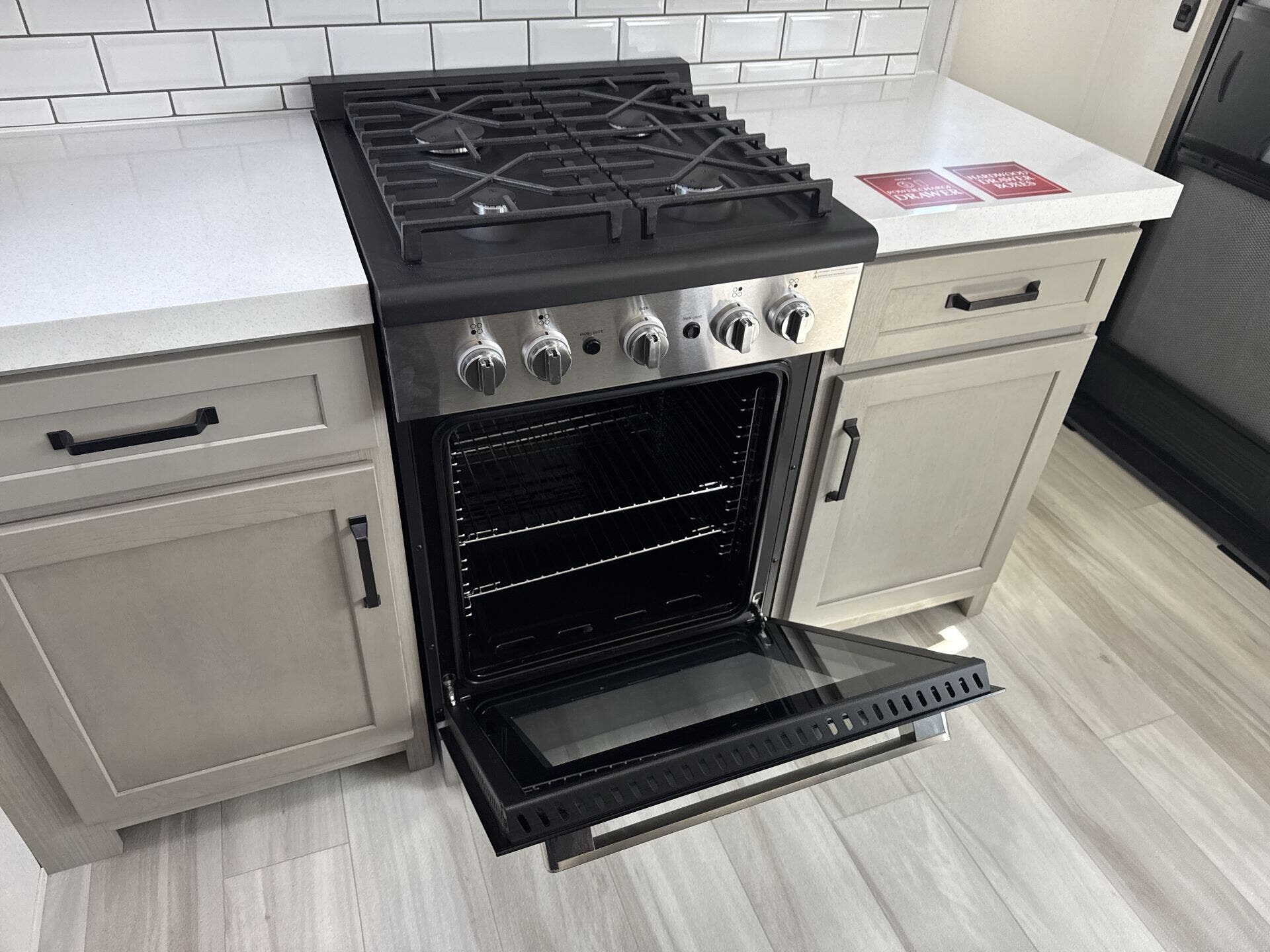 - Kitchen & Laundry: Modern kitchen amenities include a microwave, oven, stove top burner, refrigerator, and a large kitchen sink. The washer/dryer prep station offers added convenience for long trips.