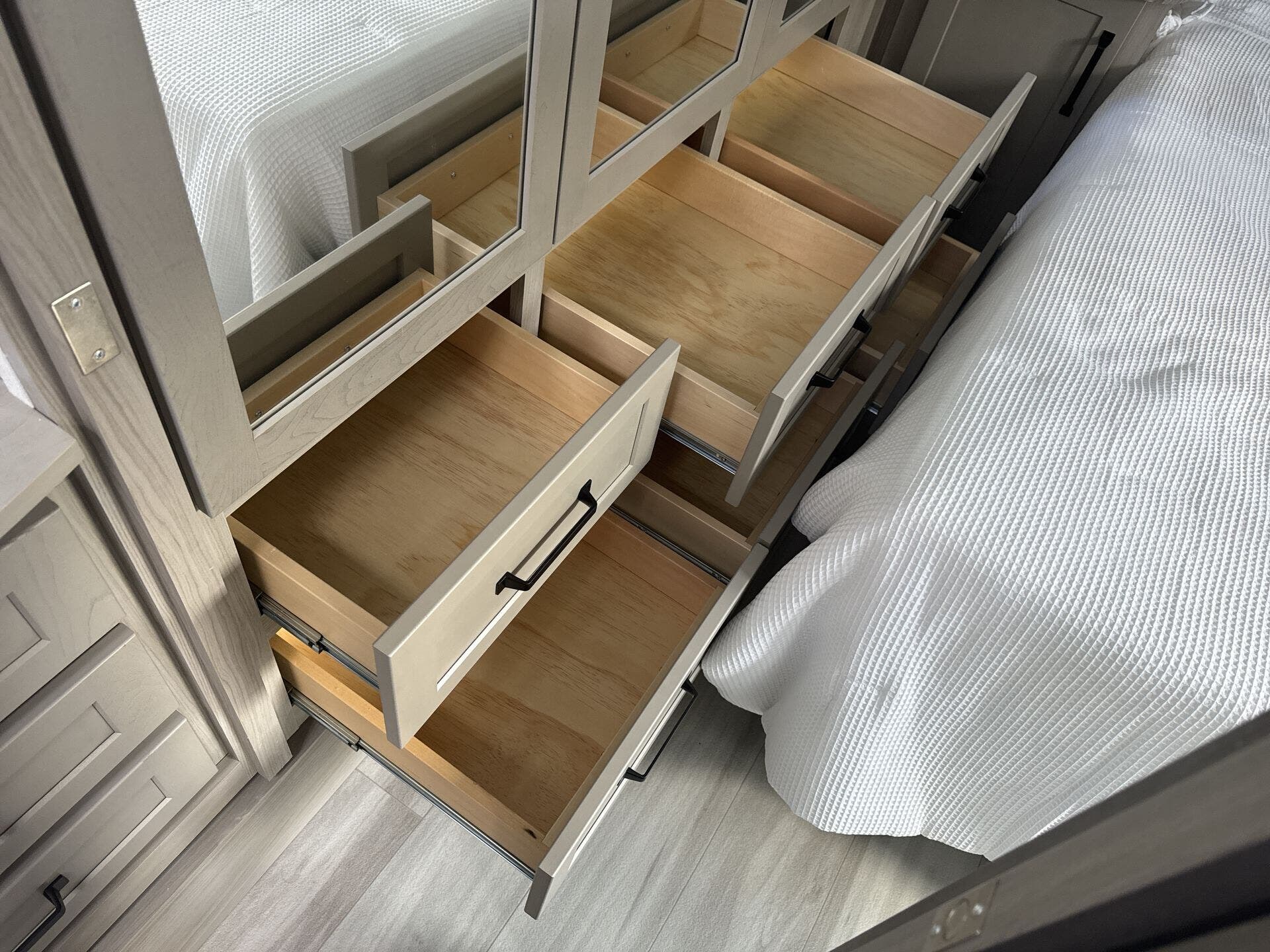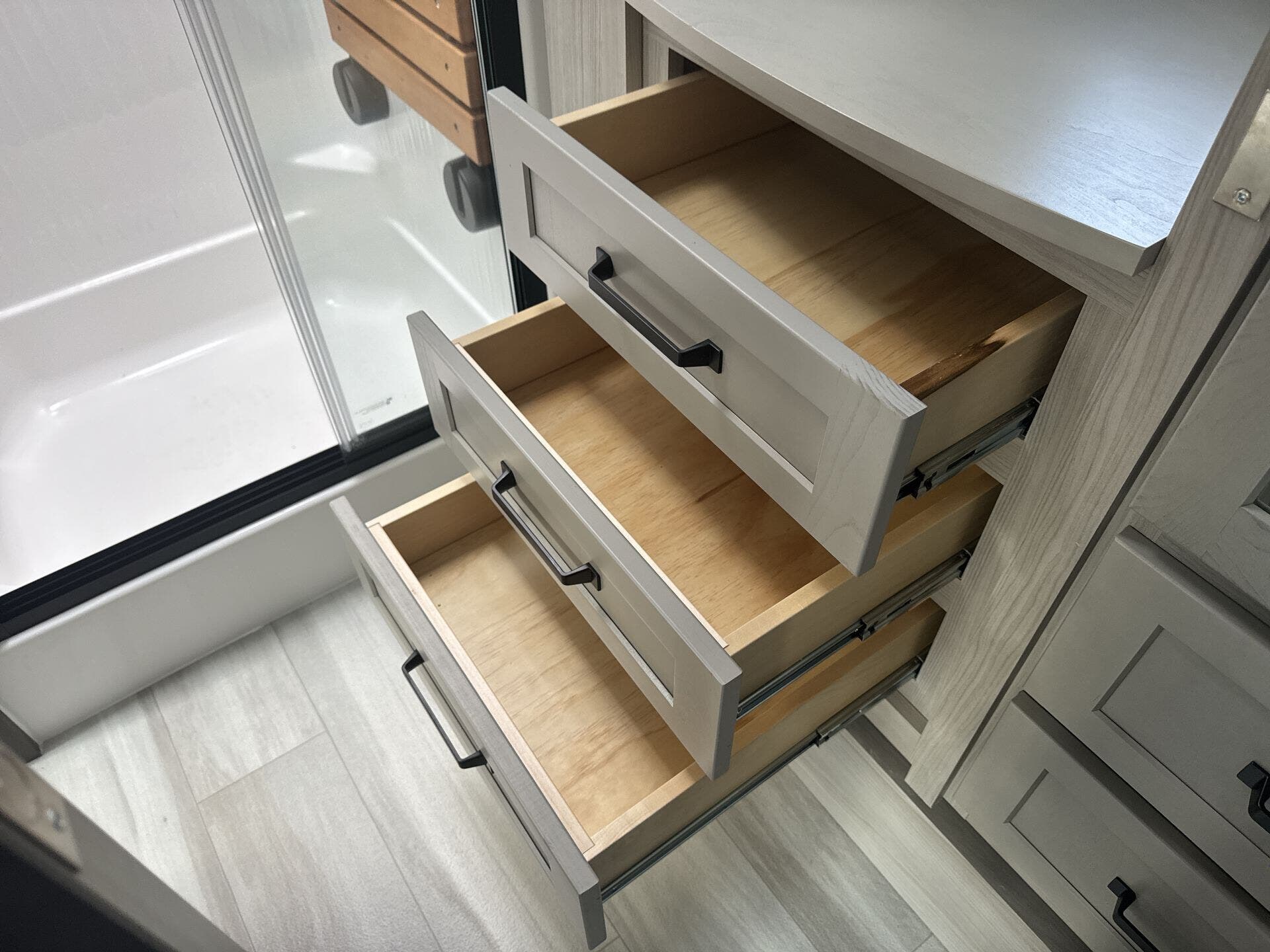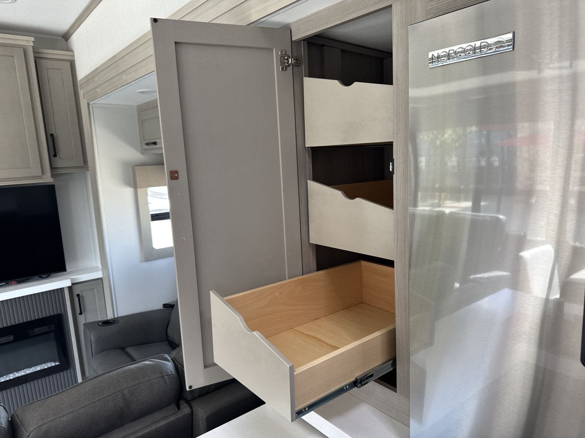 - Kitchen & Laundry: Modern kitchen amenities include a microwave, oven, stove top burner, refrigerator, and a large kitchen sink. The washer/dryer prep station offers added convenience for long trips.