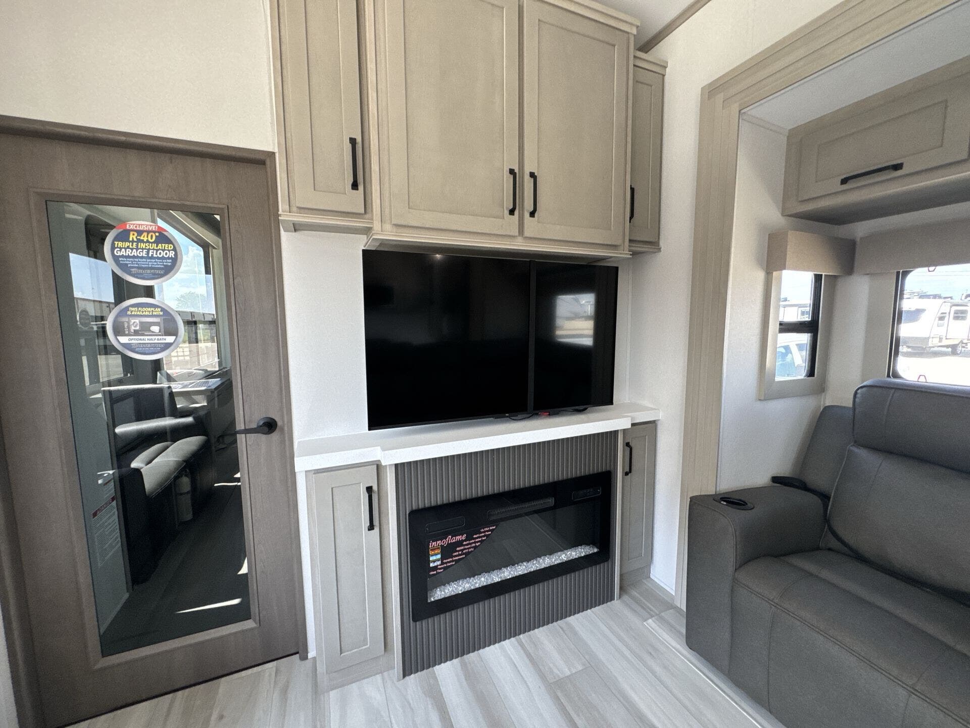 - Bathroom & Water Capabilities: Features a full bath and a 1/2 bathroom, with water capacities of 140 gallons fresh, 52 gallons black, and 104 gallons grey water tanks to support extended stays.