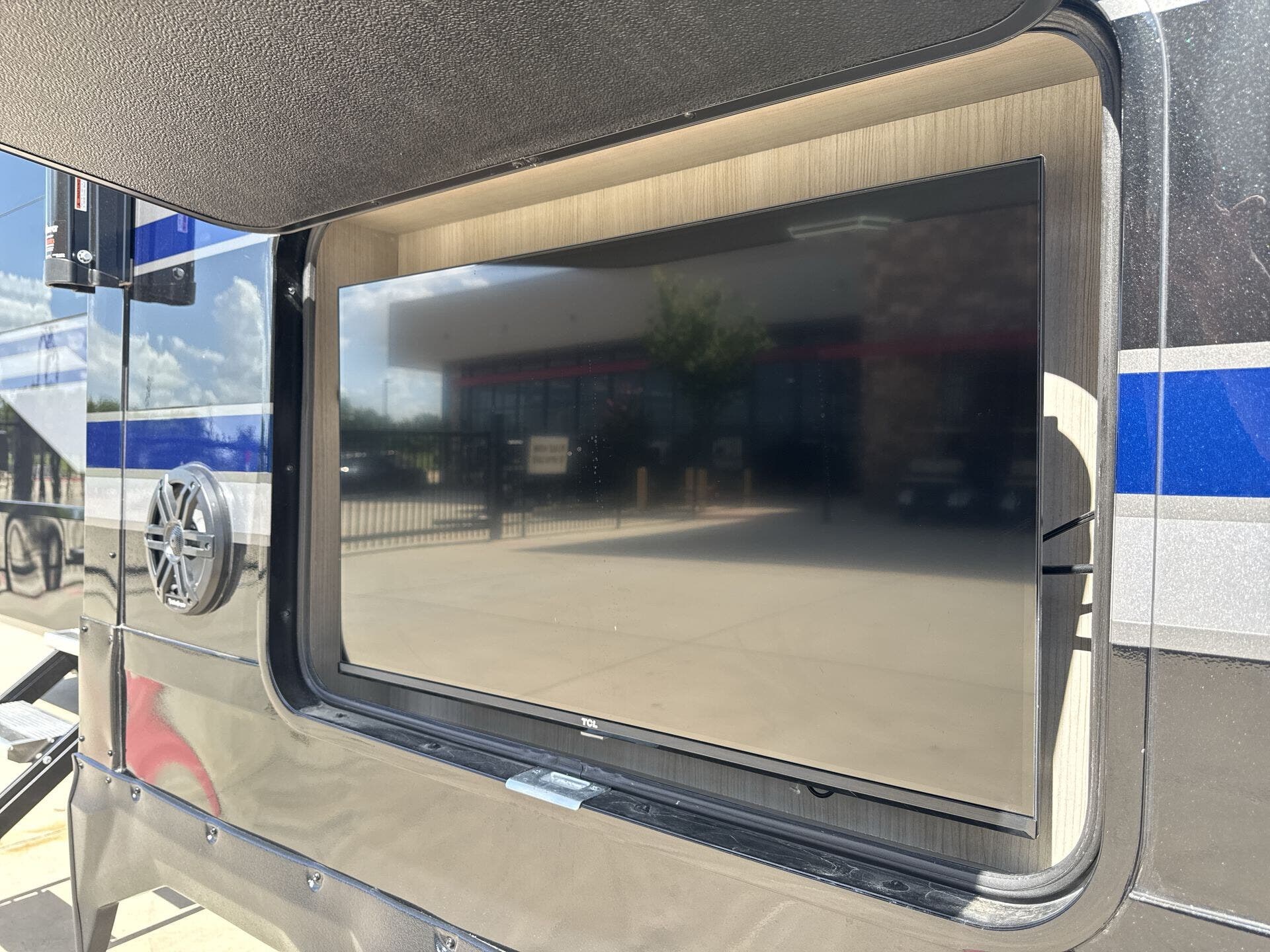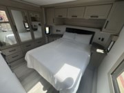 With a length of approximately 44 feet 2 inches, the Momentum 395MS boasts a smartly designed floor plan featuring a front bedroom and a U-shaped kitchen for a seamless living experience. The spacious interior features dusk-colored cabinetry, a cozy fireplace, theater seating, and extensive overhead storage, providing a warm and inviting environment. The exterior showcases a striking full-body paint in Onyx Blue, adding to its premium curb appeal.