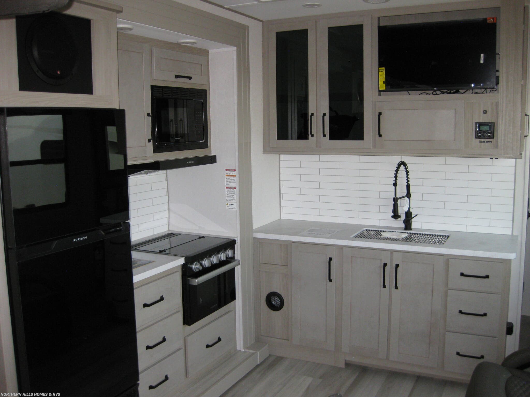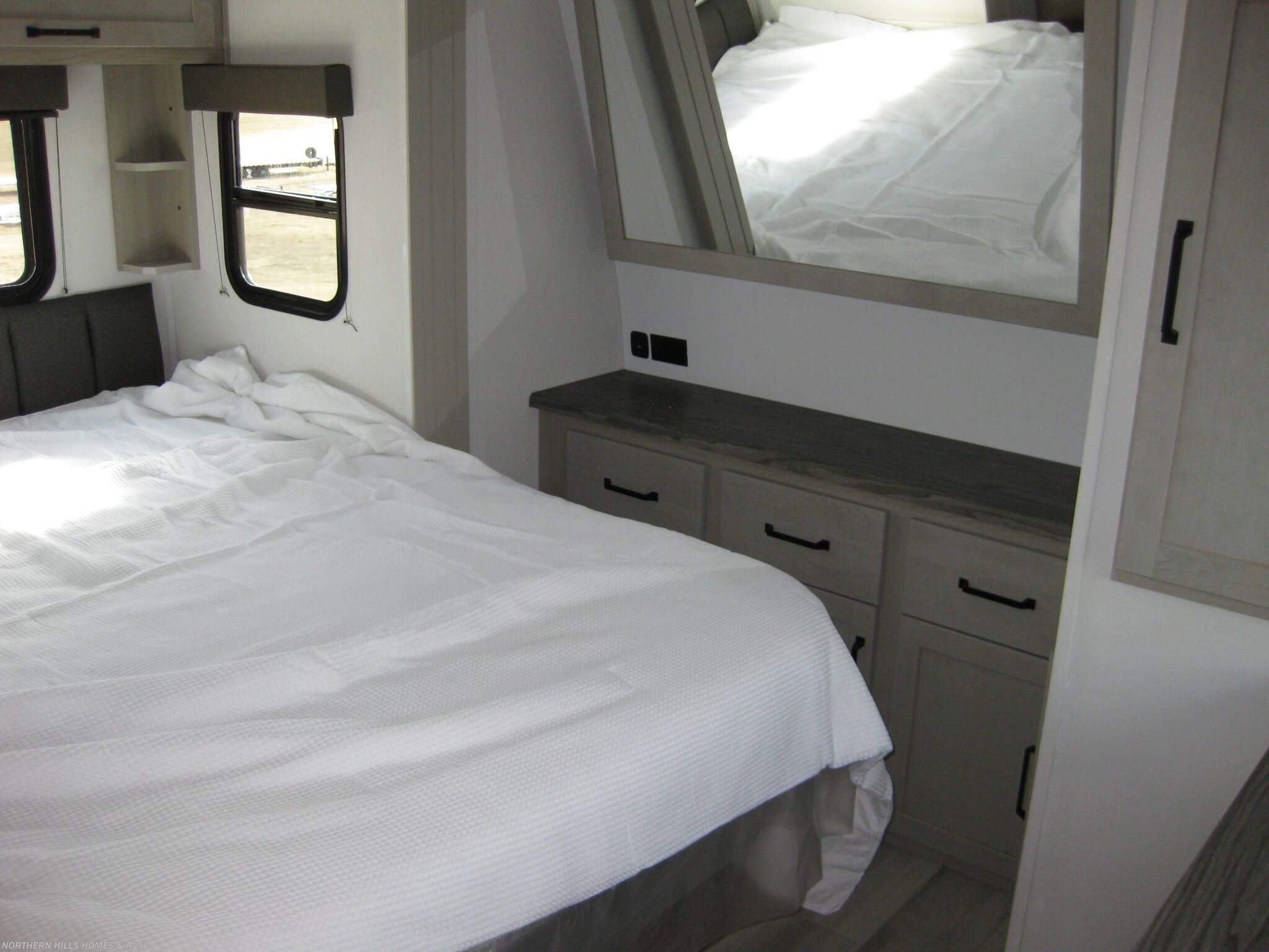 Measuring approximately 30 feet 11 inches in length and 8 feet 5 inches wide, this towable RV offers ample space for up to six sleepers. The design includes two slide-outs, expanding the interior for additional comfort and flexibility. With a height of just over 12 feet, it’s easy to navigate campgrounds while delivering a roomy interior filled with thoughtful amenities.