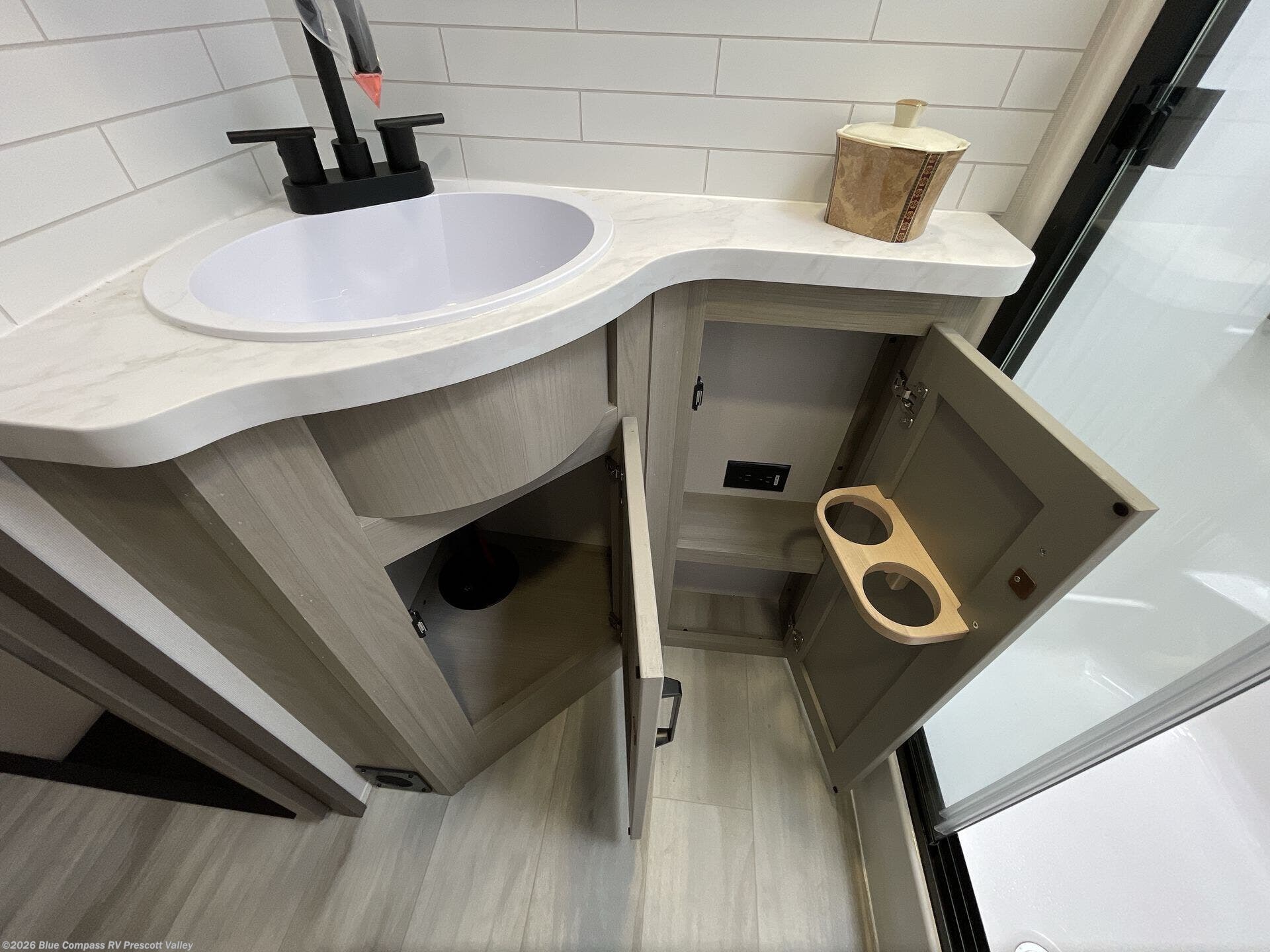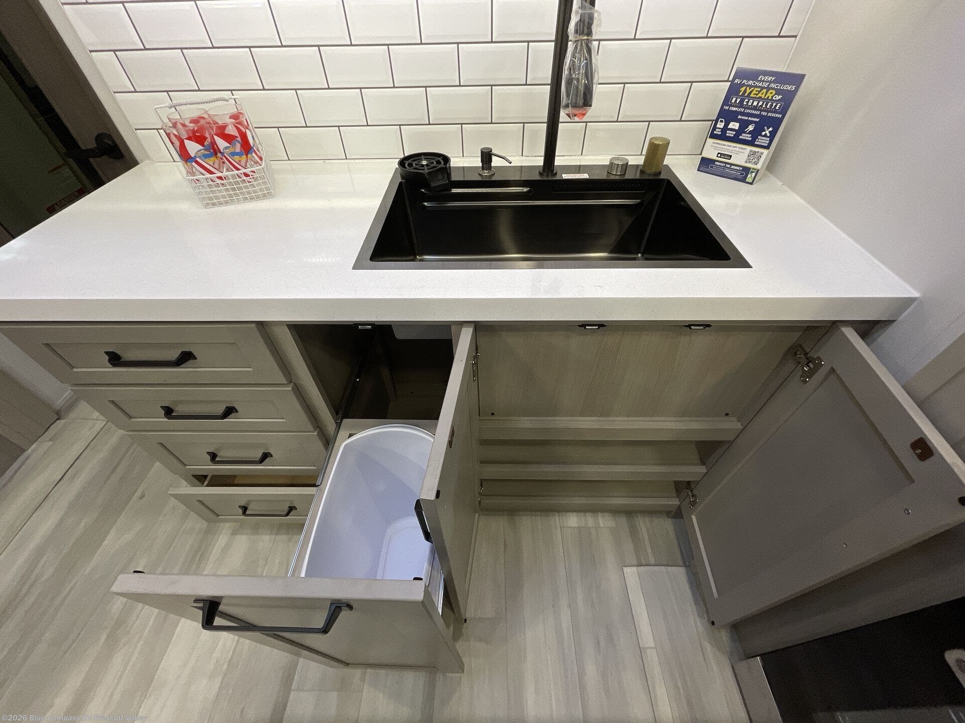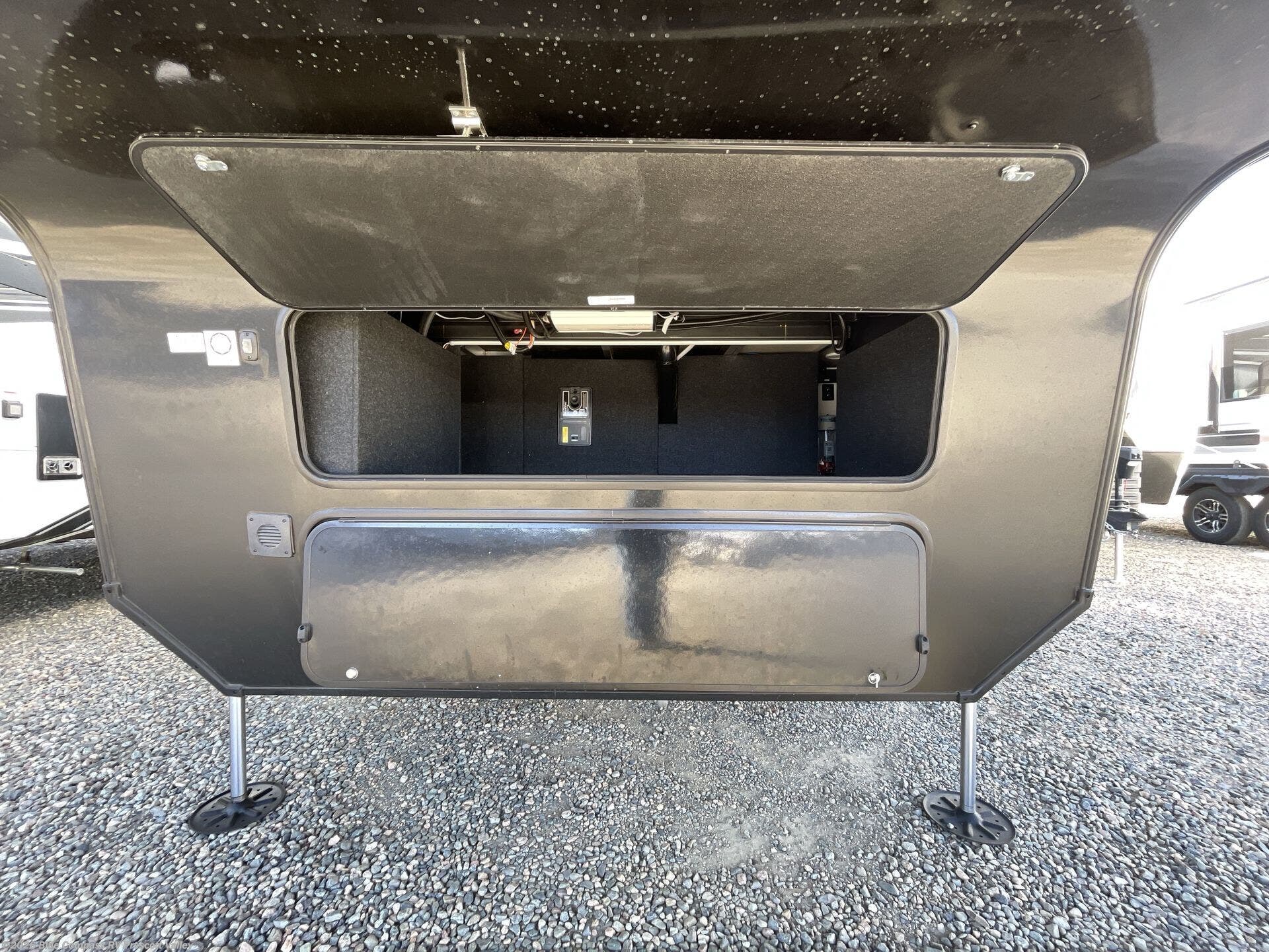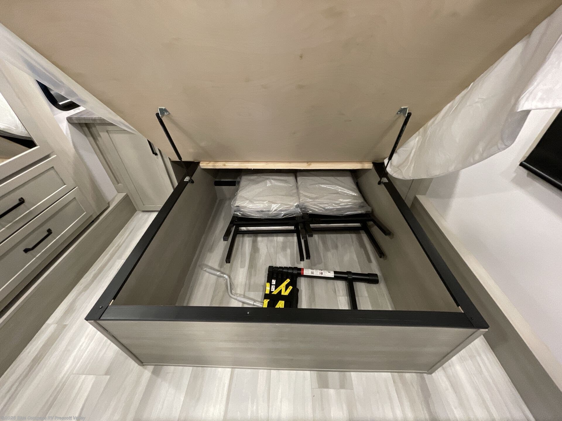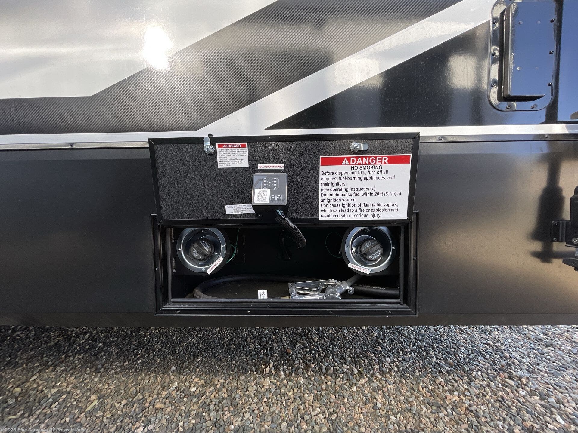 Spend your days at the campground kicking up mud with this toy hauler in tow! once you've unloaded your toys from the ramp door, you can use the 60 gallon fuel station to fill up and head out on a trail! The overhead bed provides a place for guests to sleep, and there is an optional Liftsuite System for more sleeping space if needed. There is even an optional half bath here if you choose to make this space more accommodating. Head to the middle kitchen and living area where you'll enjoy generous counter space to prep meals, a spacious 20 cu. ft. refrigerator, an L-shaped sofa with recline, plus a hybrid desk/dinette that will serve as a dining or working space. The dual entry bath creates a front master bedroom you are sure to love. There is a queen bed with an optional king bed, plenty of overhead storage, and a wardrobe slide to keep your things organized.