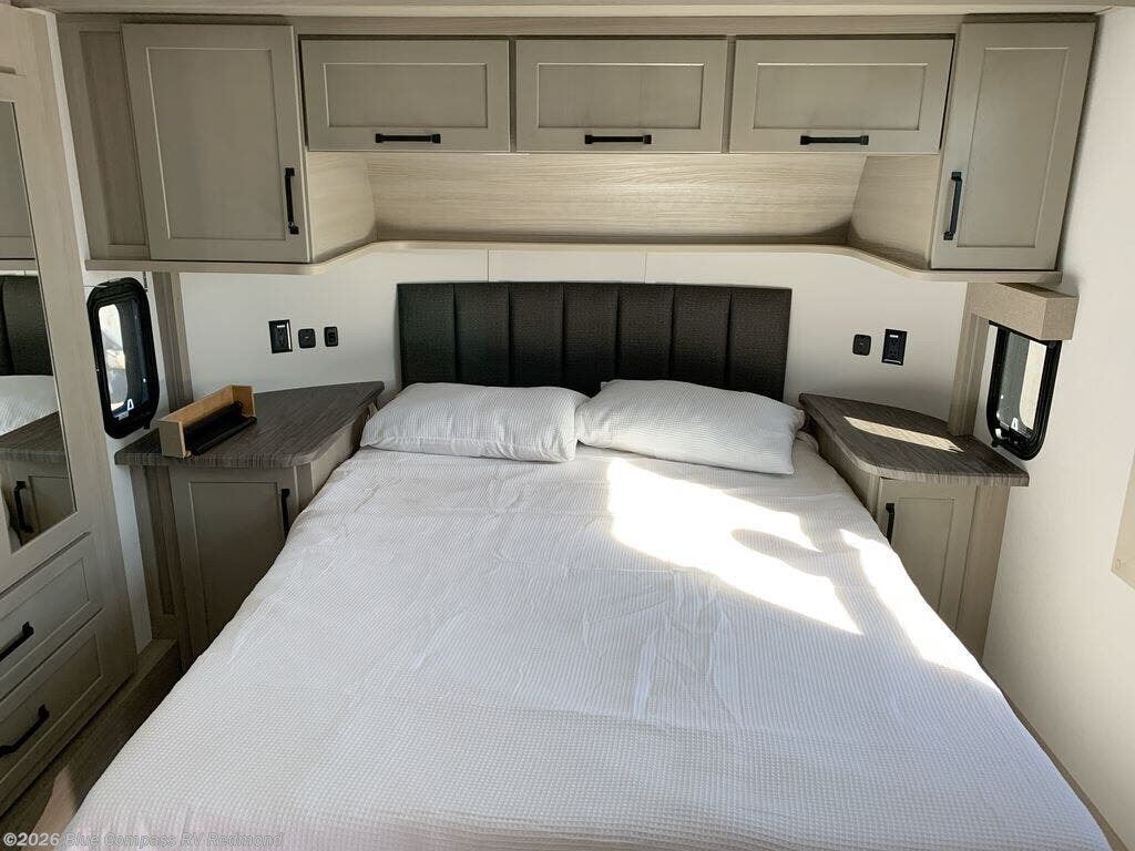 Spend your days at the campground kicking up mud with this toy hauler in tow! once you've unloaded your toys from the ramp door, you can use the 60 gallon fuel station to fill up and head out on a trail! The overhead bed provides a place for guests to sleep, and there is an optional Liftsuite System for more sleeping space if needed. There is even an optional half bath here if you choose to make this space more accommodating. Head to the middle kitchen and living area where you'll enjoy generous counter space to prep meals, a spacious 20 cu. ft. refrigerator, an L-shaped sofa with recline, plus a hybrid desk/dinette that will serve as a dining or working space. The dual entry bath creates a front master bedroom you are sure to love. There is a queen bed with an optional king bed, plenty of overhead storage, and a wardrobe slide to keep your things organized.