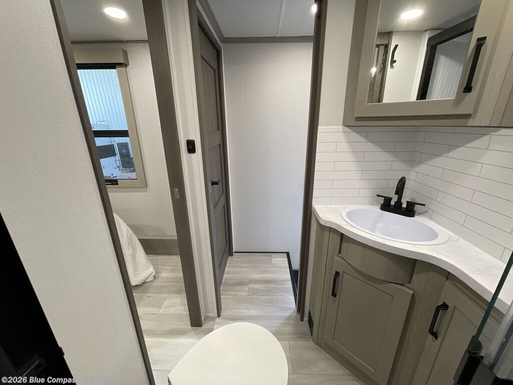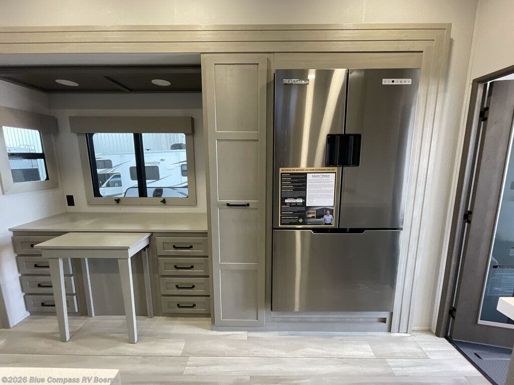 Spend your days at the campground kicking up mud with this toy hauler in tow! once you've unloaded your toys from the ramp door, you can use the 60 gallon fuel station to fill up and head out on a trail! The overhead bed provides a place for guests to sleep, and there is an optional Liftsuite System for more sleeping space if needed. There is even an optional half bath here if you choose to make this space more accommodating. Head to the middle kitchen and living area where you'll enjoy generous counter space to prep meals, a spacious 20 cu. ft. refrigerator, an L-shaped sofa with recline, plus a hybrid desk/dinette that will serve as a dining or working space. The dual entry bath creates a front master bedroom you are sure to love. There is a queen bed with an optional king bed, plenty of overhead storage, and a wardrobe slide to keep your things organized.