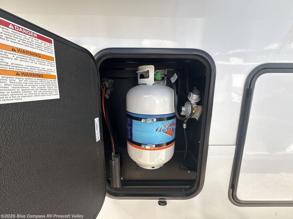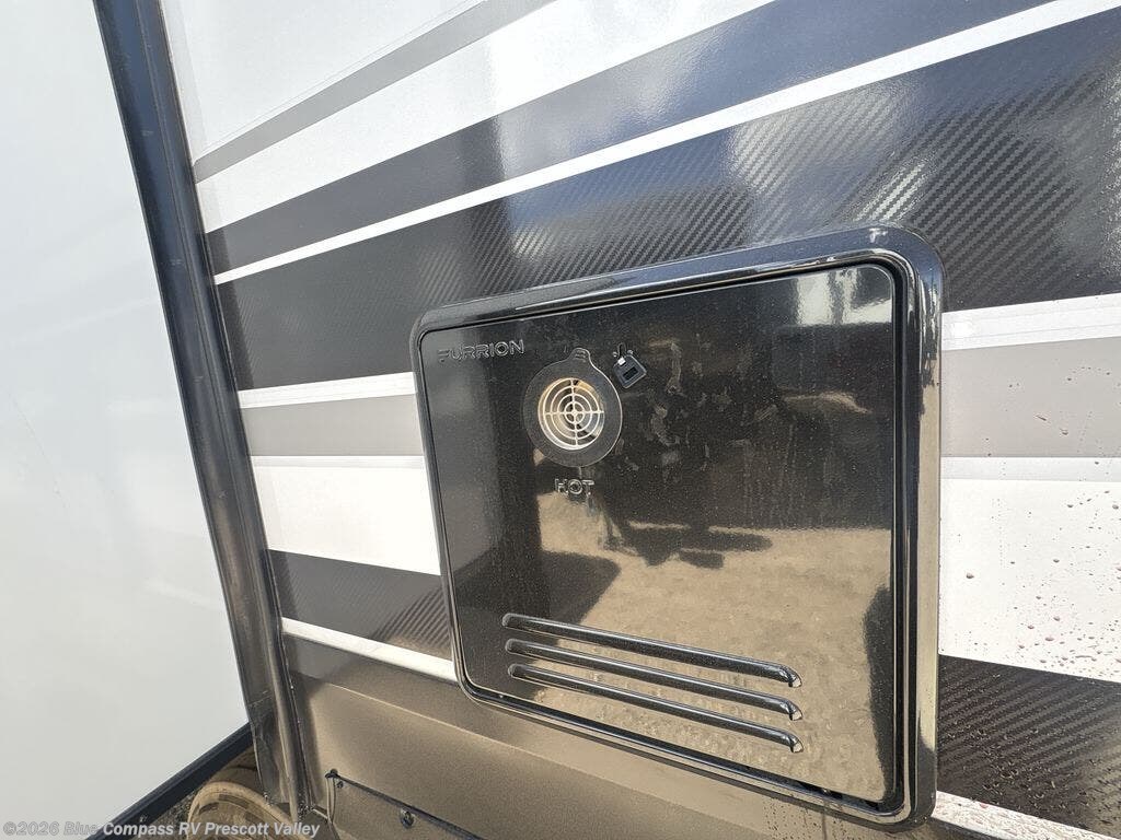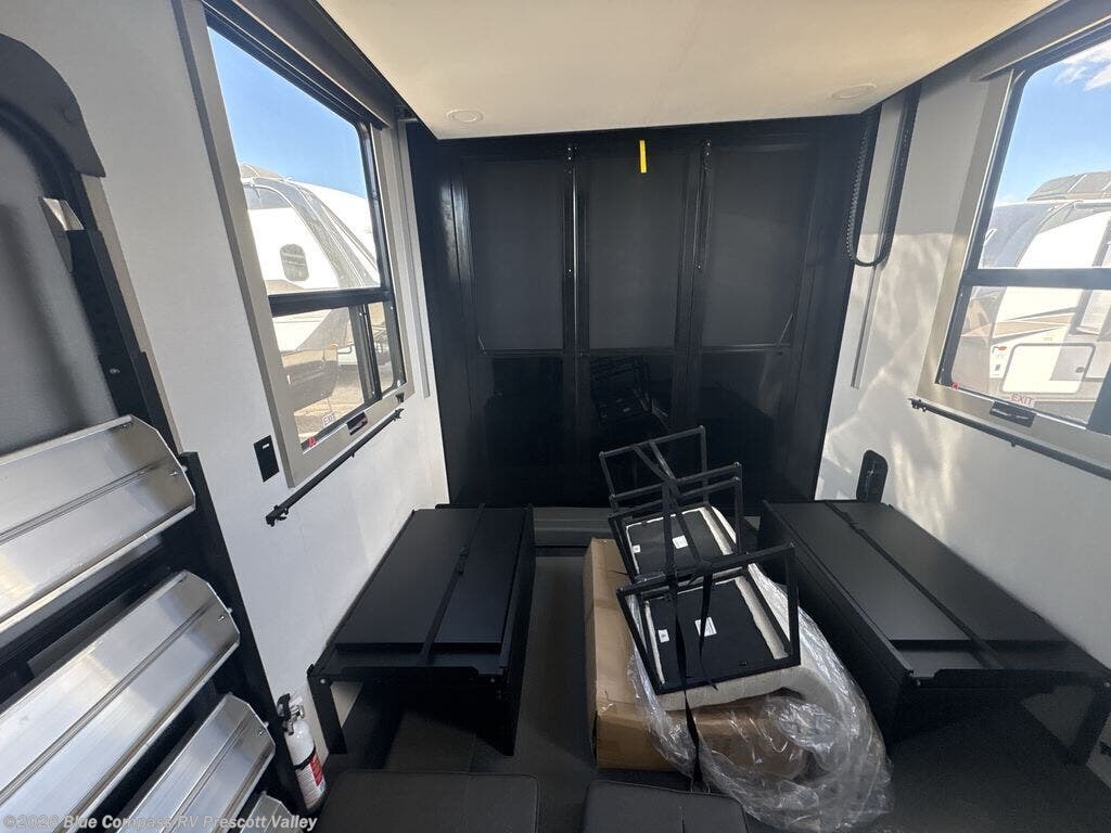 Spend your days at the campground kicking up mud with this toy hauler in tow! once you've unloaded your toys from the ramp door, you can use the 60 gallon fuel station to fill up and head out on a trail! The overhead bed provides a place for guests to sleep, and there is an optional Liftsuite System for more sleeping space if needed. There is even an optional half bath here if you choose to make this space more accommodating. Head to the middle kitchen and living area where you'll enjoy generous counter space to prep meals, a spacious 20 cu. ft. refrigerator, an L-shaped sofa with recline, plus a hybrid desk/dinette that will serve as a dining or working space. The dual entry bath creates a front master bedroom you are sure to love. There is a queen bed with an optional king bed, plenty of overhead storage, and a wardrobe slide to keep your things organized.