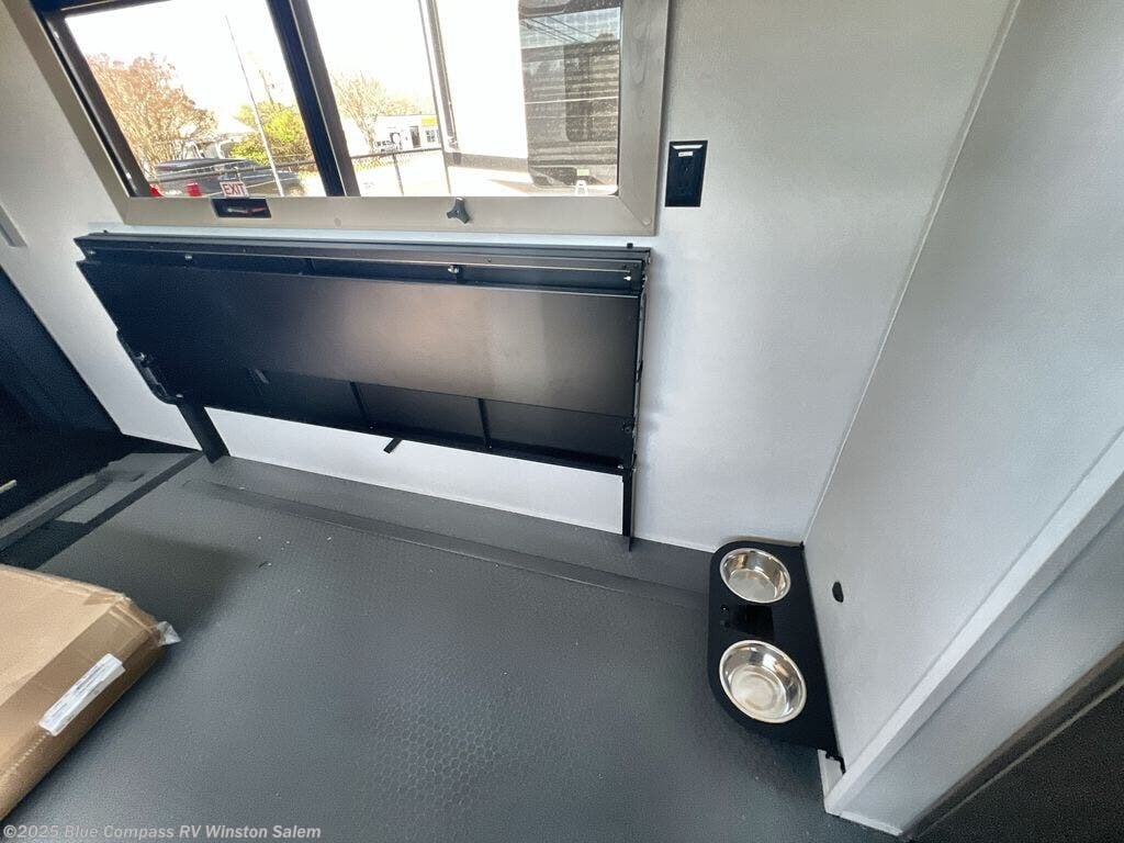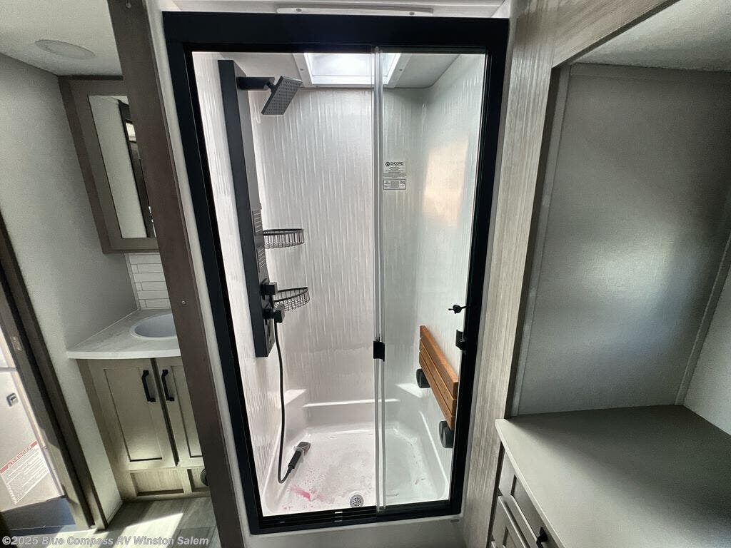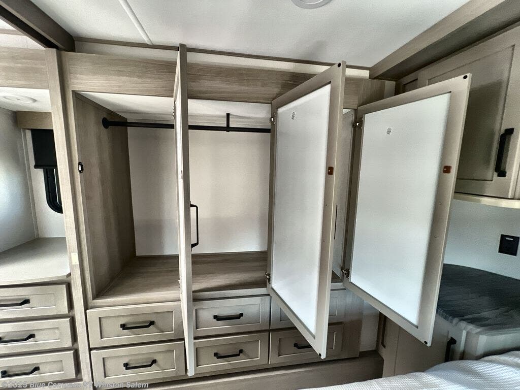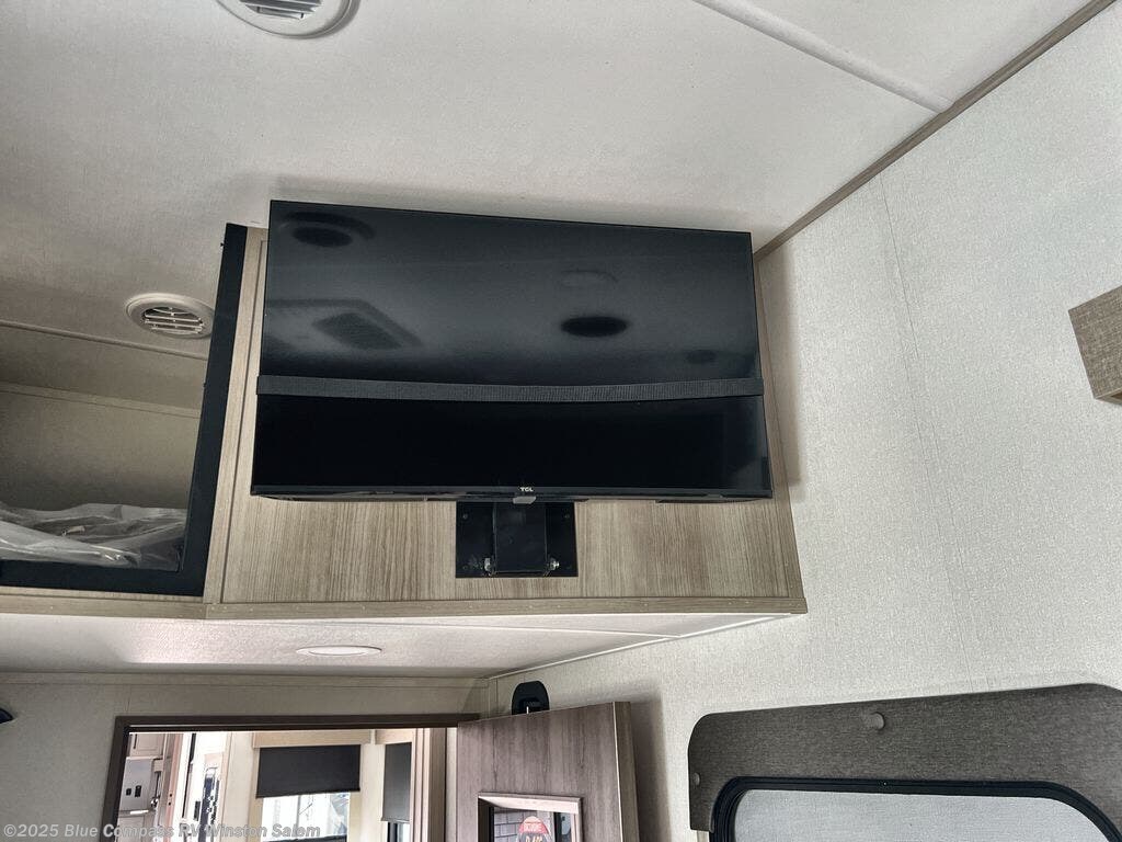 You want a toy hauler to carry your toys to the trails, and include many at-home comforts, and that's just what this unit delivers. A 14' separate garage includes an adjustable tie-down system, an optional Lifesuite System for more sleeping space, an optional half bath, plus washer and dryer prep. There is an overhead loft bed and an L-shaped sofa with recline in the main living area that offers sleeping space as well. Everyone can watch a movie on the LED TV with a fireplace below while sitting on the sofa, in the theatre seats, or while at the free standing dinette with four chairs. The chef will have upgraded appliances to make meals for everyone, an L-shaped countertop with a kitchen sink, and a USB charging outlet. You will love the shower with seat in the full bathroom with two space savings sliding doors that lead into the hallway, and into the front bedroom where you will have a walk-around queen bed, a slide out wardrobe and more USB charging outlets.