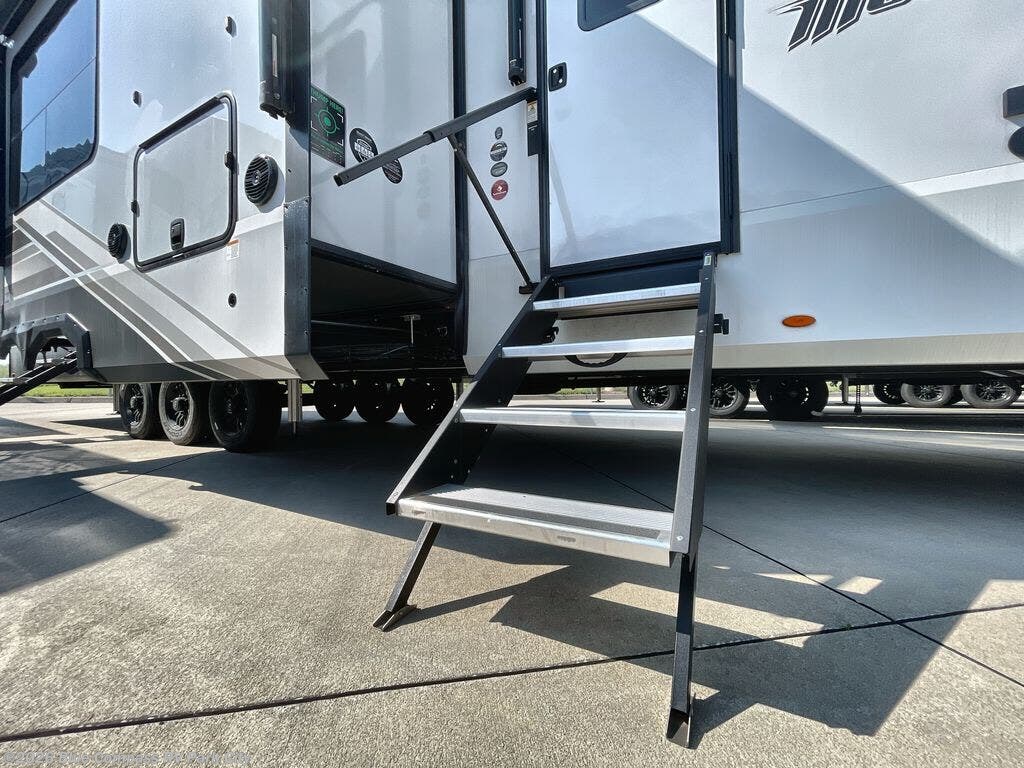 With any Momentum M-Class toy hauler by Grand Design, you will enjoy luxury at every turn! They have been constructed to a superior standard with a thermal roof design, triple insulated main floor and garage floor, and a Rail-Tite underbelly seal that will allow you to camp in all elements. Each model also features a, 8' 5" wide body chassis with a wide rail design, no wheel wheels, and a dovetail entry for easier loading. The Stealth A/C system provides maximum cooling power, and the CRE3000 suspension system means you can enjoy a smooth tow each time. You will love the luxurious interior with a professional grade stainless steel cooktop, interior color changing LED accent lighting, a fiberglass shower with a glass door, and solid surface countertops.