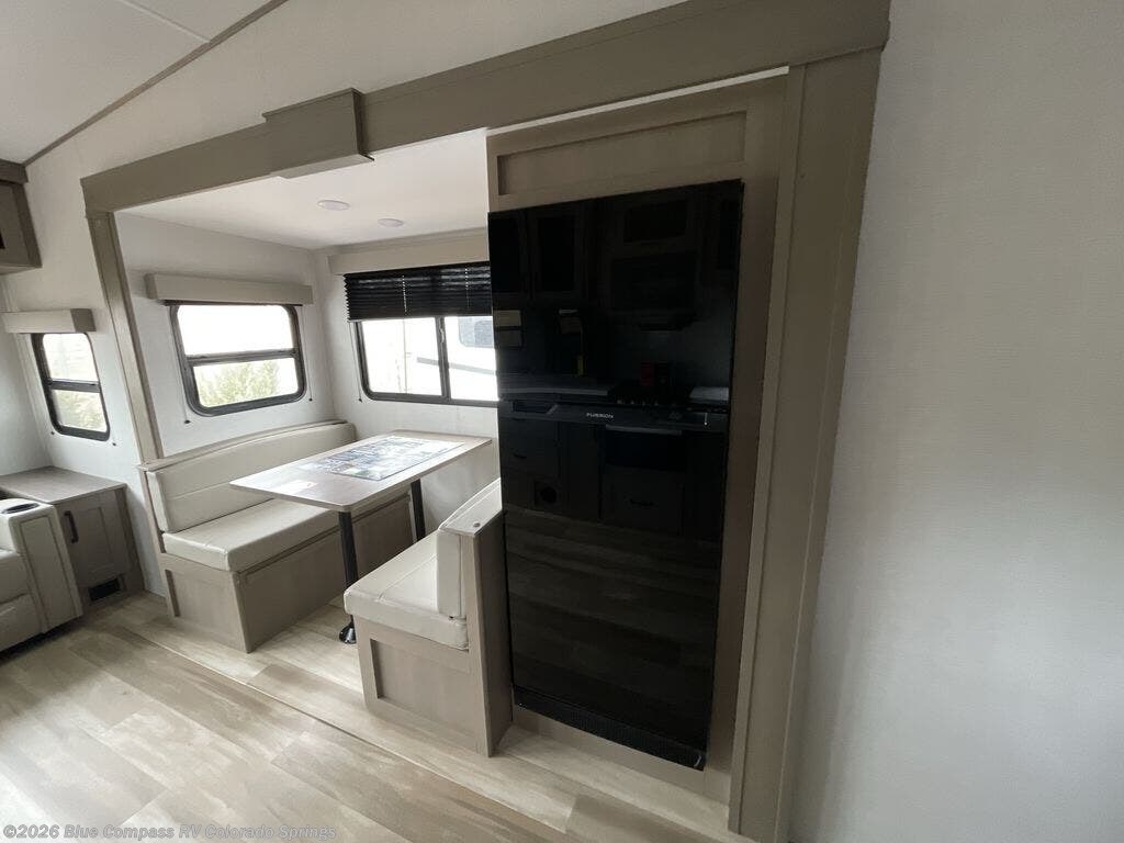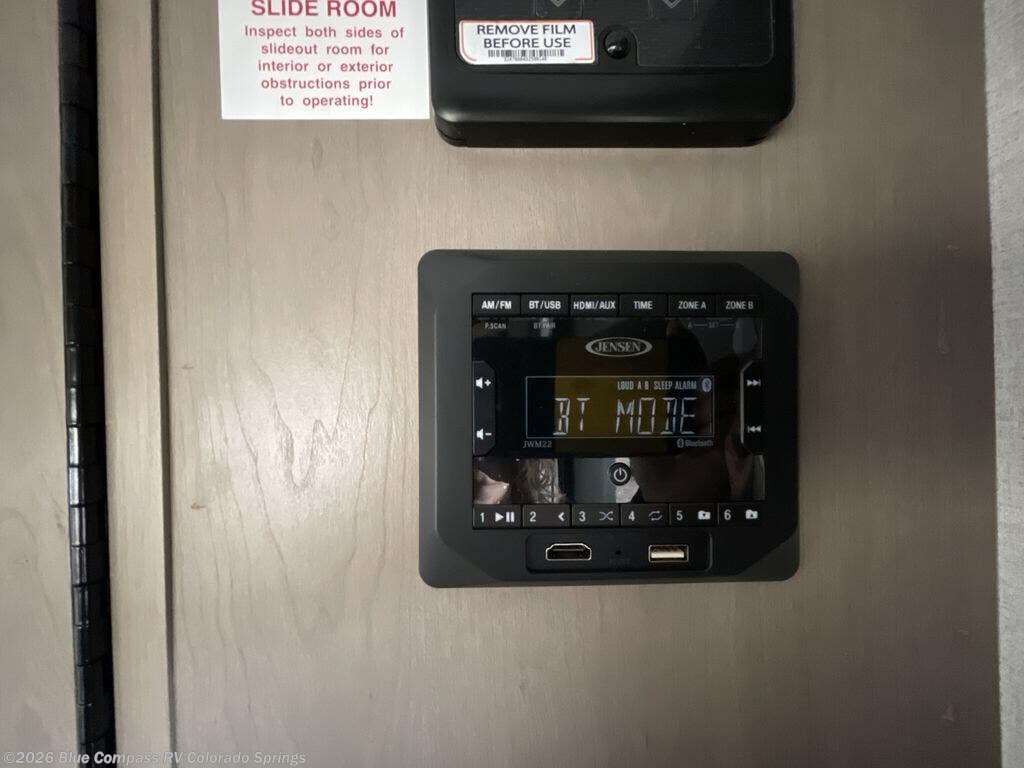 This is the perfect couple's trailer with a space for an overnight guest or two little ones on the booth dinette. You can switch out this dinette for an optional swivel dinette as well, and the standard theater seating can be replaced by an optional trundle bed if you need more sleeping space. A 40" HDTV will keep you entertained when the weather isn't cooperating, and you can whip up your best meals in the full kitchen. And a 19' power awning will provide shade if you choose to take your plate outdoors! The spacious full bath will let you clean up each day, and you'll feel right at home in the front private bedroom with a queen bed!