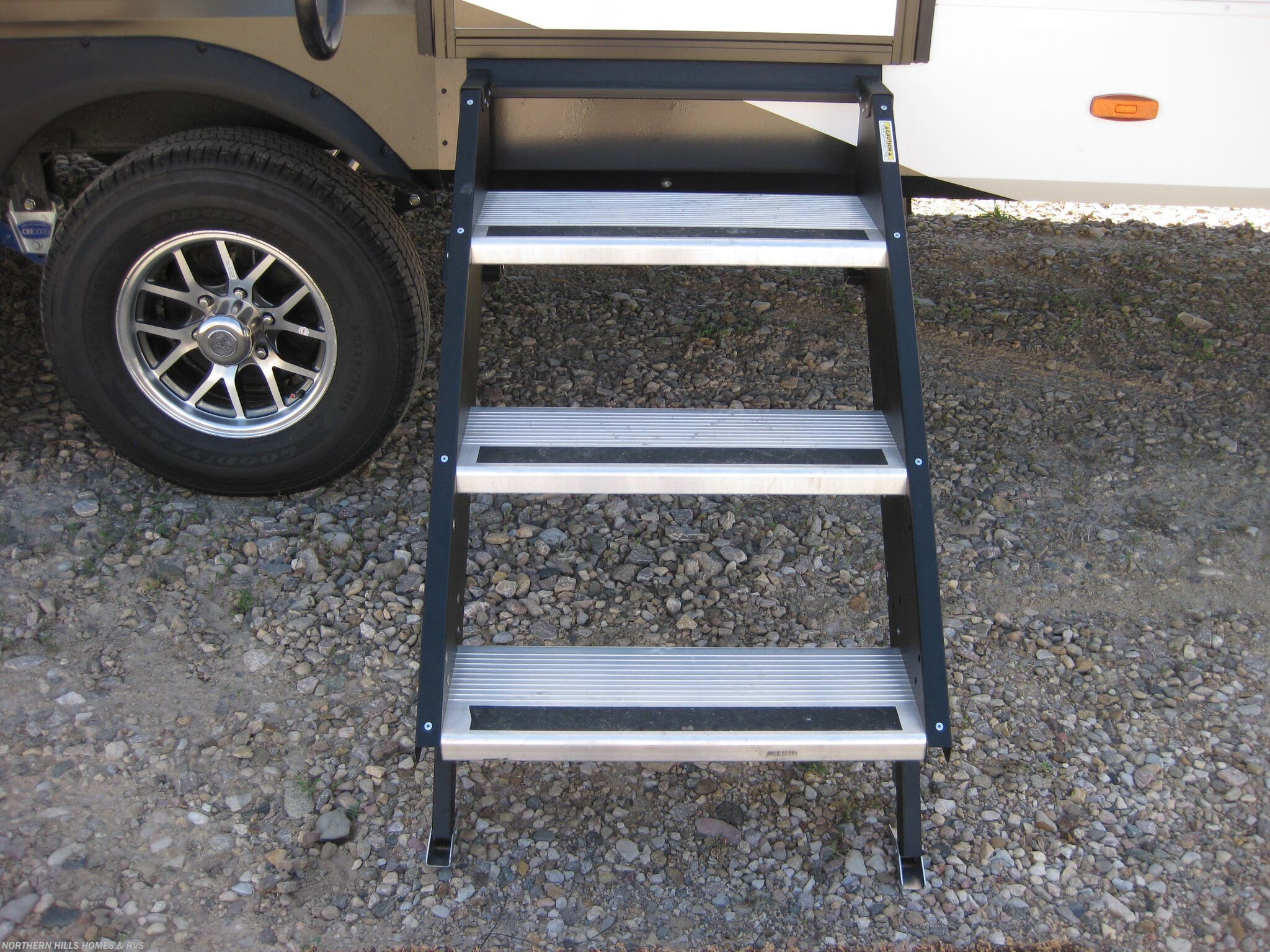 Awning, Exterior Speakers, External Shower, Hitch, Ladder, Leveling Jacks, Power Roof Vent, Skylight, Slideout, Spare Tire Kit -