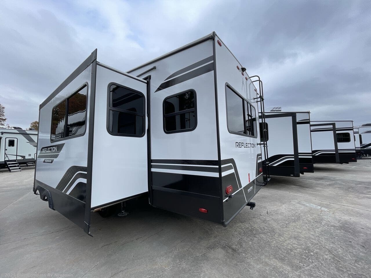 Feel right at home in this Reflection 150 Series with a private bedroom that includes a walk-around queen bed with storage on each side, windows, and a space savings sliding door. The full bathroom offers a walk-in shower, storage for your linens and a sliding door for easy access. When you get hungry, the cook will have an L-shaped kitchen area to make meals, plus full amenities including a 30" microwave, a flip-up counter extension, a pantry for your dry goods and a 16 cu. ft. refrigerator to store lots of food and cold beverages. You can dine at the rear U-shaped dinette lounge and enjoy the view out of all the windows or outside under the 18' electric awning. And the 78" theatre seating will be a nice place to relax and watch the 40" LED HDTV.