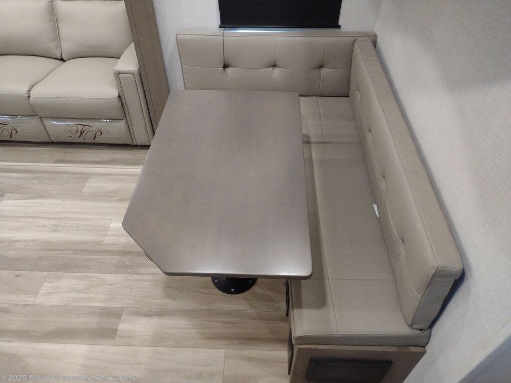 With any Reflection 150 Series fifth wheel by Grand Design, there is more available payload capacity and a broader range of half-ton trucks capable of towing this fifth wheel, and no slider hitch is needed thanks to the 90-degree turning radius which makes them short bed friendly and easier to tow. The mandatory Ultimate Power package provides a "One-Touch" automatic leveling system and a detachable power cord with LED light for easy setup, plus motion sensor pass-through lighting and entry lighting, and the Tire Linc TPMS will help you stay safe on the road. The interior offers residential luxury from the cabinetry and premium Congoleum flooring, to the booth dinette and residential-style window treatment. Make your refined decision today!