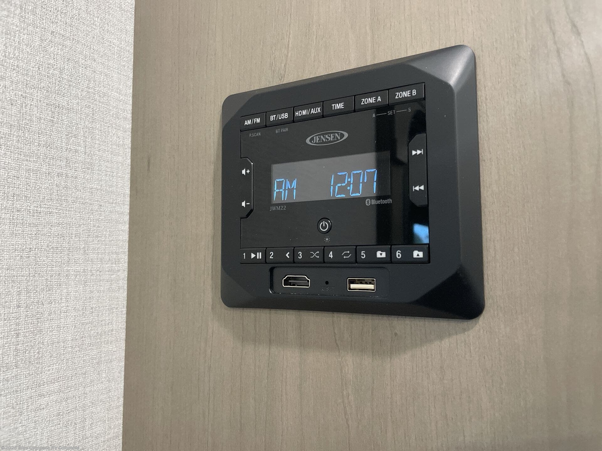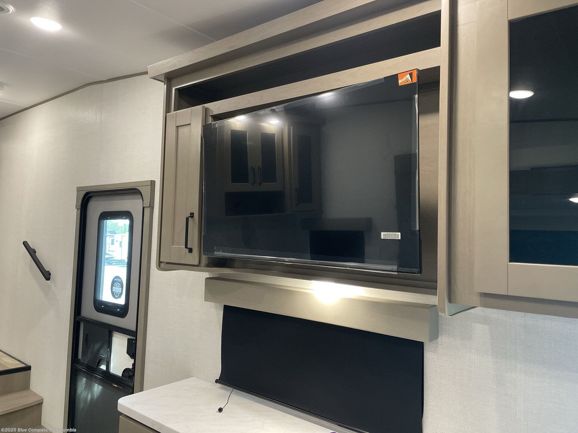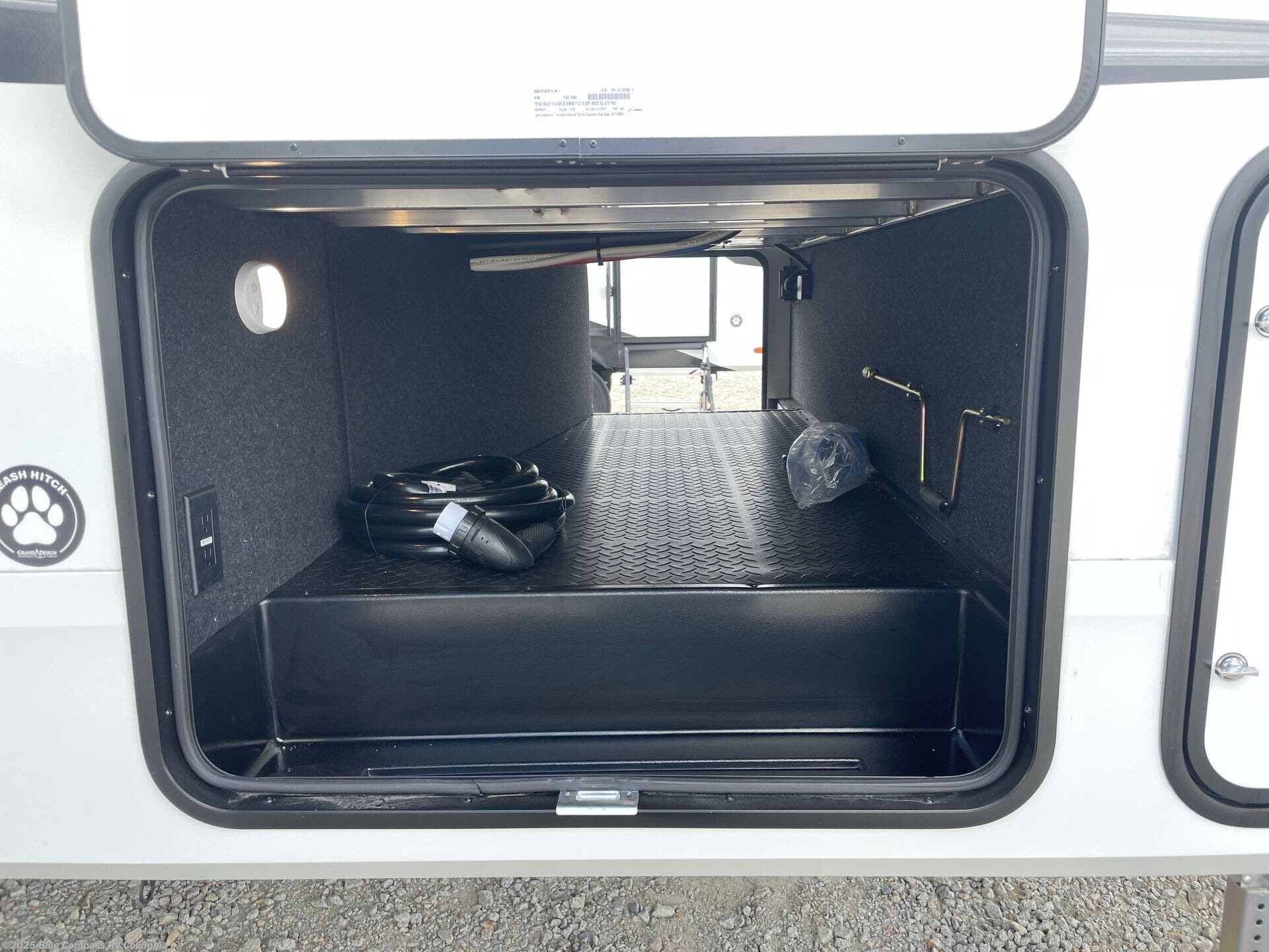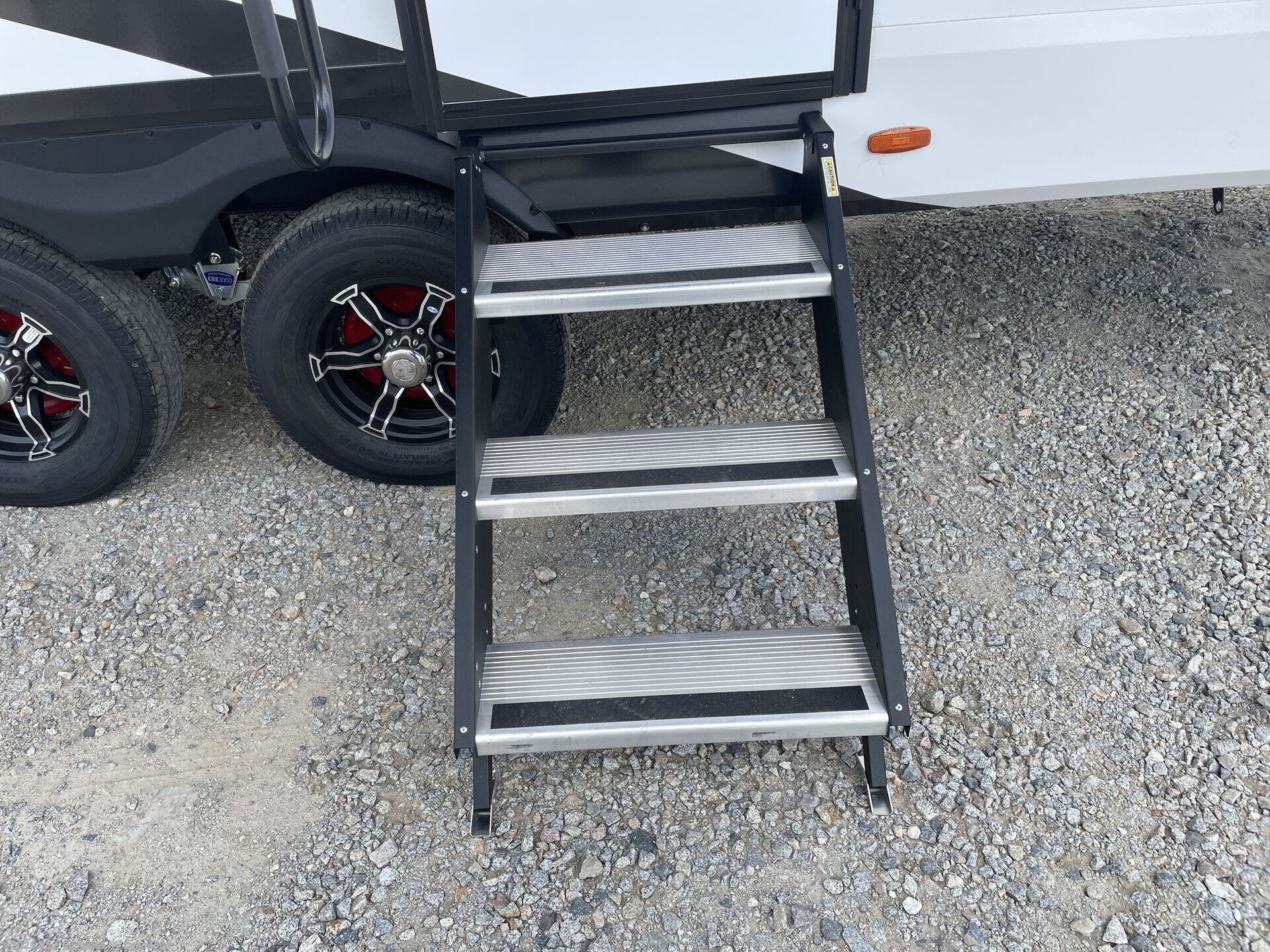 You will love this fifth wheel featuring a single slide for added interior living space and all the comforts and conveniences it provides you while you travel. The slide features a 78" theater seat plus there is a breakfast nook for more seating. Both can easily view the entertainment center with 40" TV. A rear kitchen indoors provides everything you need to create meals like home while on the road, and if you want to spend as much time outside as possible, then the outdoor griddle will certainly accommodate you for meals. Up front, a cozy private bedroom with queen bed, wardrobe, and overhead cabinets. Right next door, you will find a large walk-in shower, as well as a toilet, and a vanity with sink and linen cabinet for your towels and toiletries. You will also love the full unobstructed pass-through compartment for all of your gear, plus so much more!