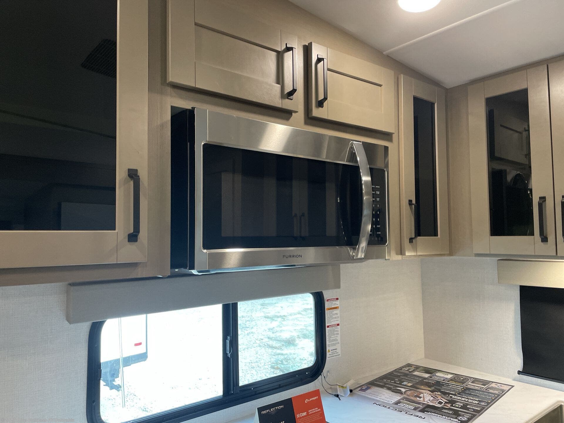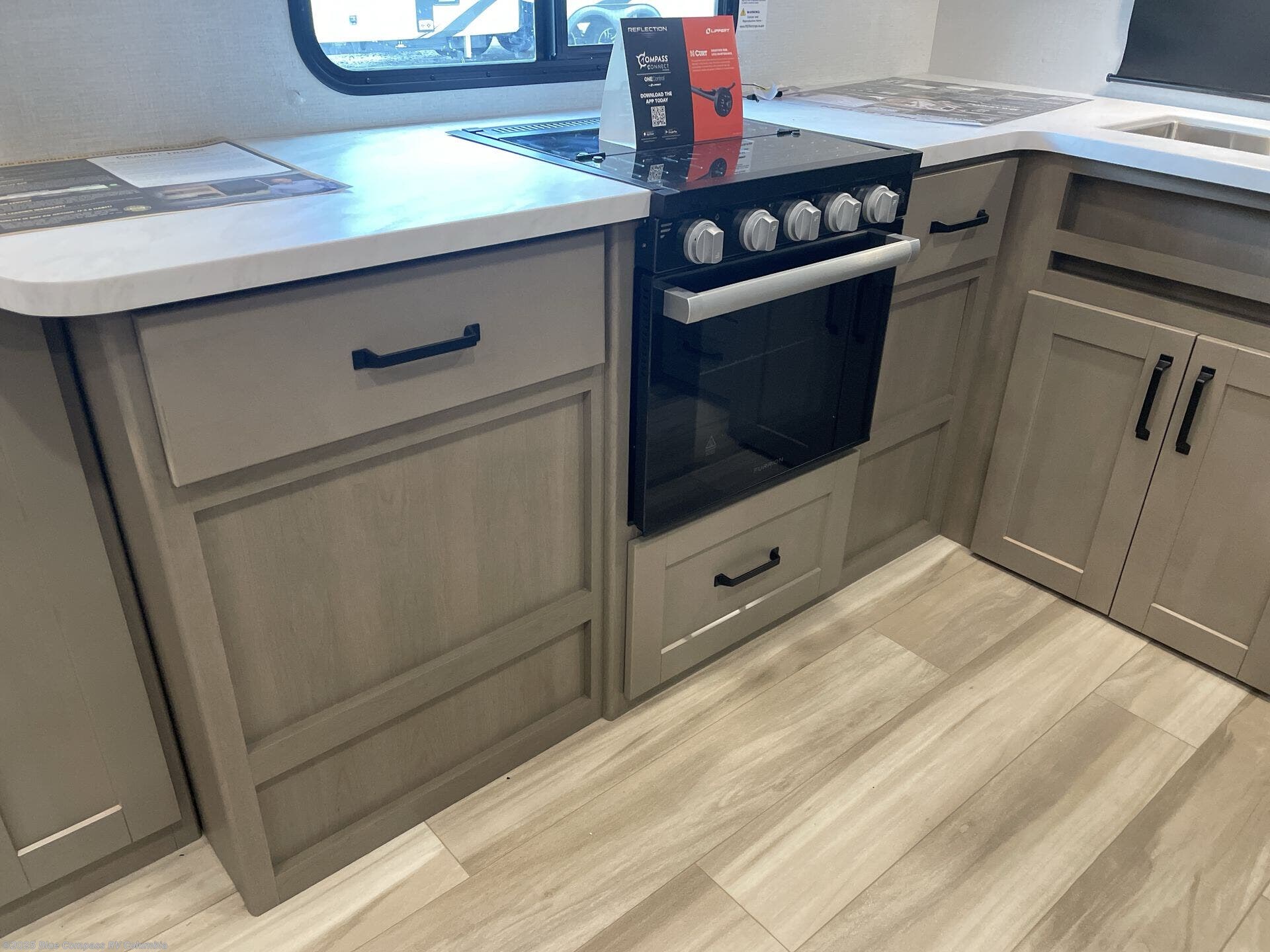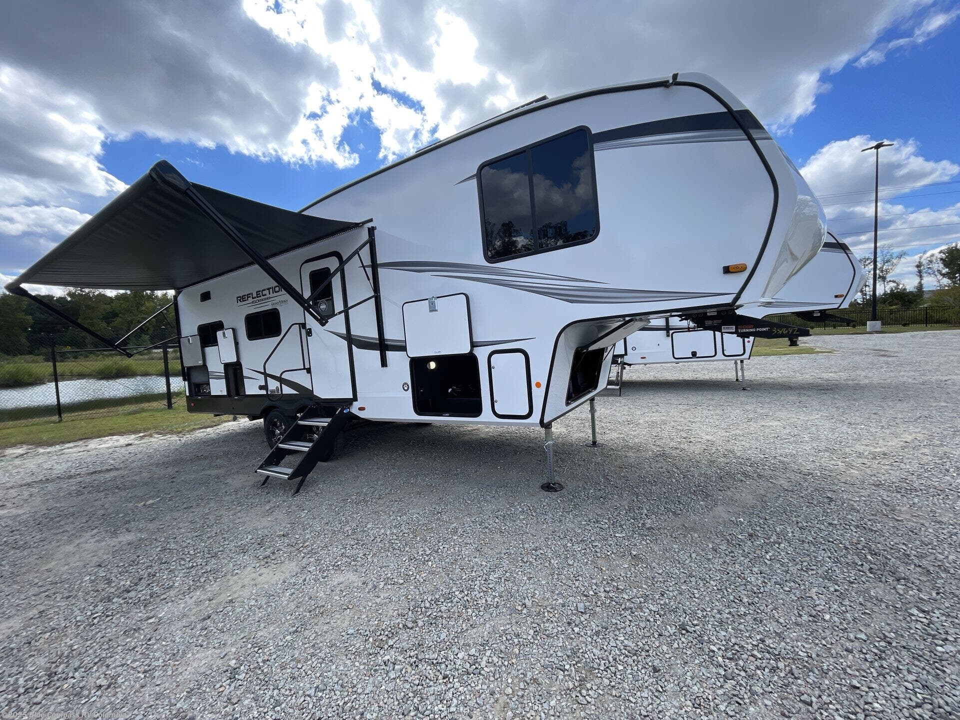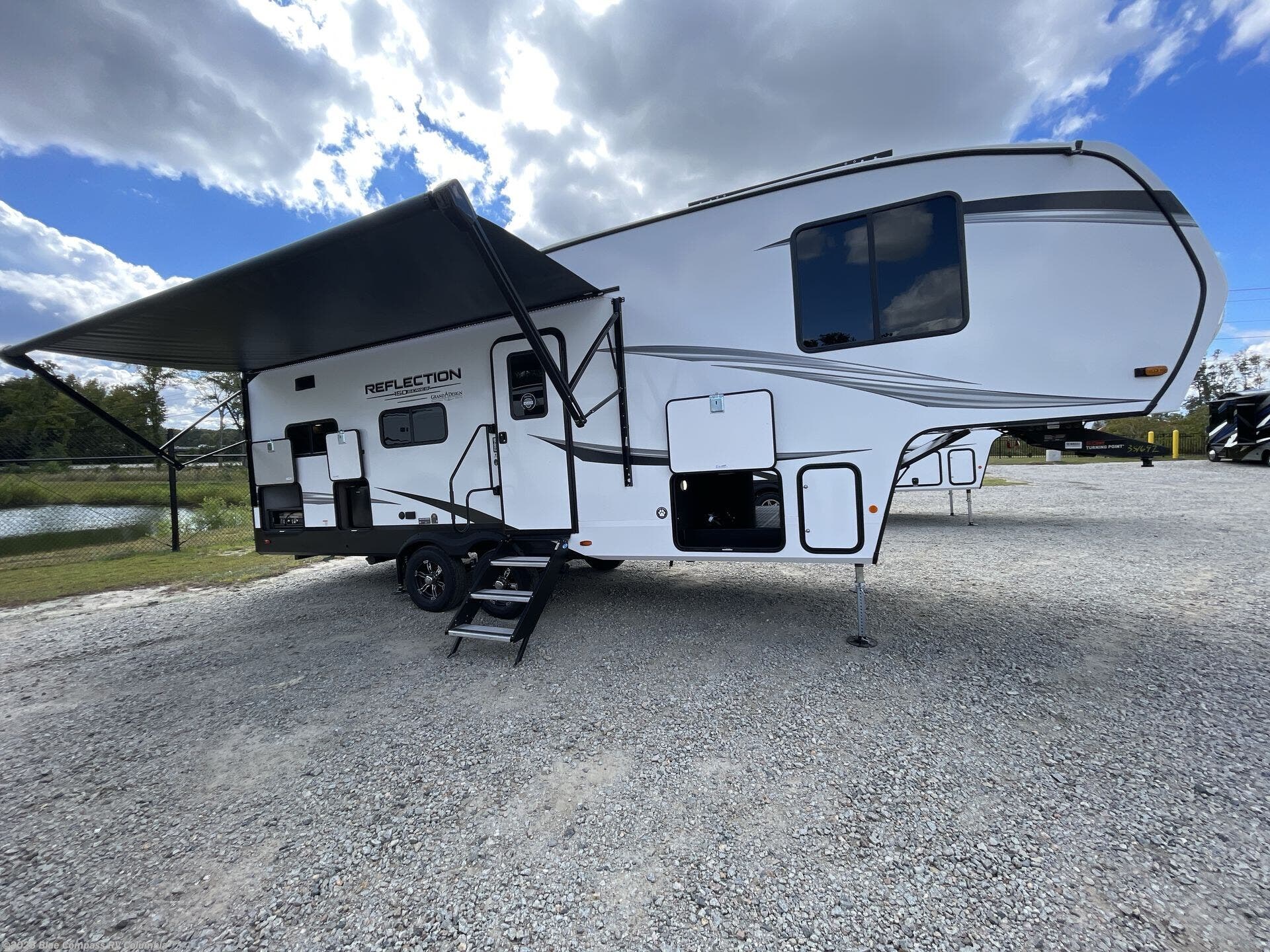 With any Reflection 150 Series fifth wheel by Grand Design, there is more available payload capacity and a broader range of half-ton trucks capable of towing this fifth wheel, and no slider hitch is needed thanks to the 90-degree turning radius which makes them short bed friendly and easier to tow. The mandatory Ultimate Power package provides a "One-Touch" automatic leveling system and a detachable power cord with LED light for easy setup, plus motion sensor pass-through lighting and entry lighting, and the Tire Linc TPMS will help you stay safe on the road. The interior offers residential luxury from the cabinetry and premium Congoleum flooring, to the booth dinette and residential-style window treatment. Make your refined decision today!