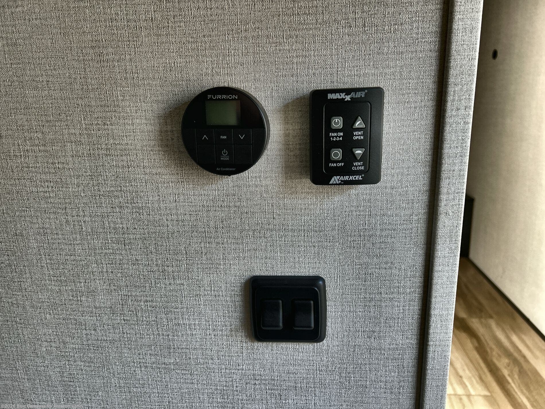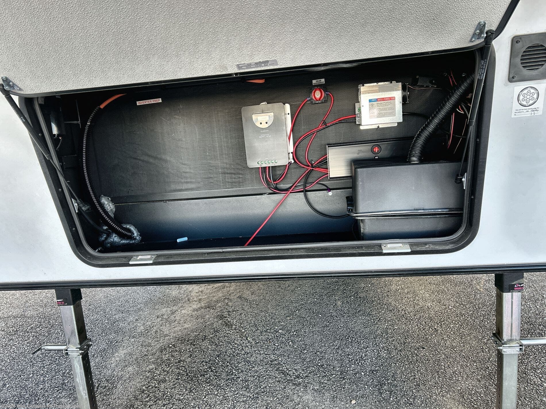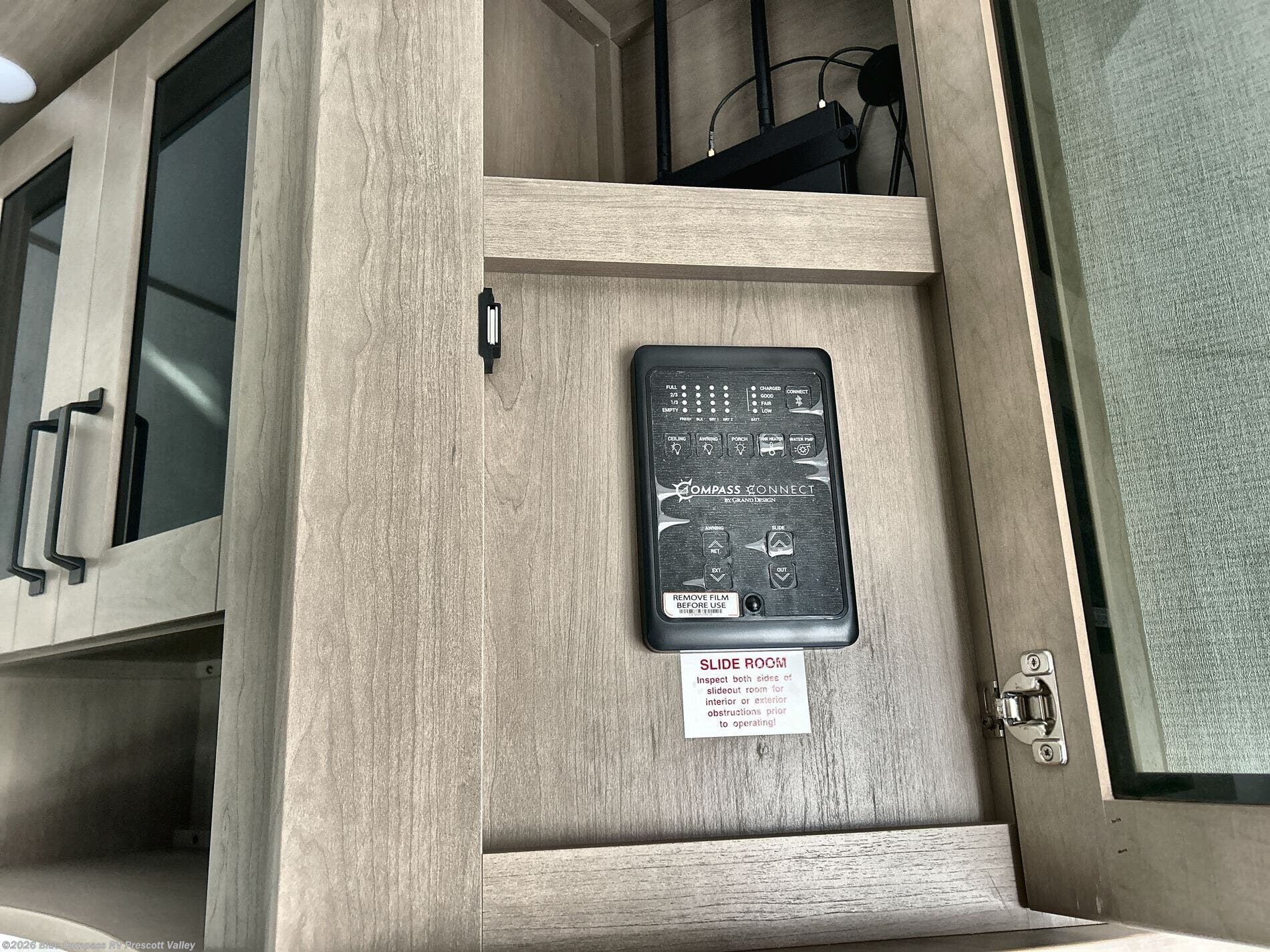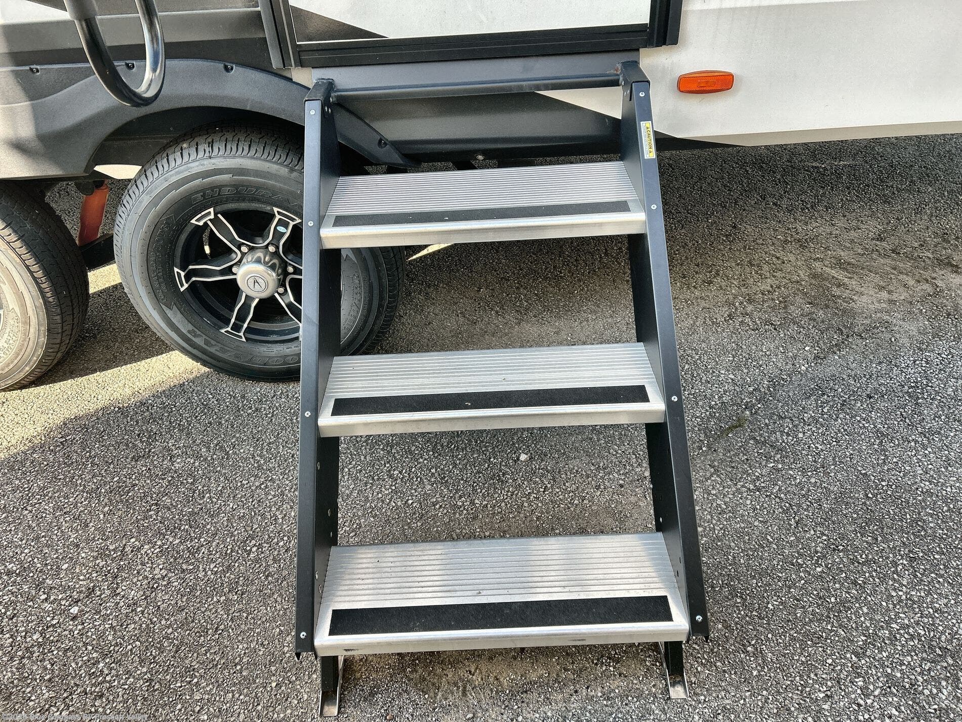 You will love this fifth wheel featuring a single slide for added interior living space and all the comforts and conveniences it provides you while you travel. The slide features a 78" theater seat plus there is a breakfast nook for more seating. Both can easily view the entertainment center with 40" TV. A rear kitchen indoors provides everything you need to create meals like home while on the road, and if you want to spend as much time outside as possible, then the outdoor griddle will certainly accommodate you for meals. Up front, a cozy private bedroom with queen bed, wardrobe, and overhead cabinets. Right next door, you will find a large walk-in shower, as well as a toilet, and a vanity with sink and linen cabinet for your towels and toiletries. You will also love the full unobstructed pass-through compartment for all of your gear, plus so much more!