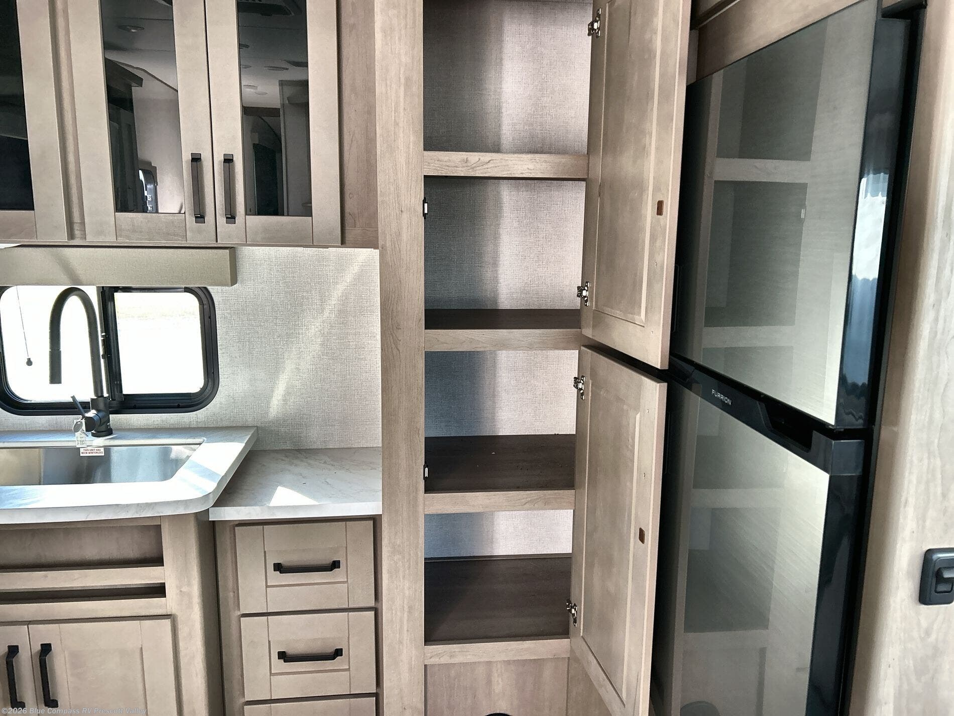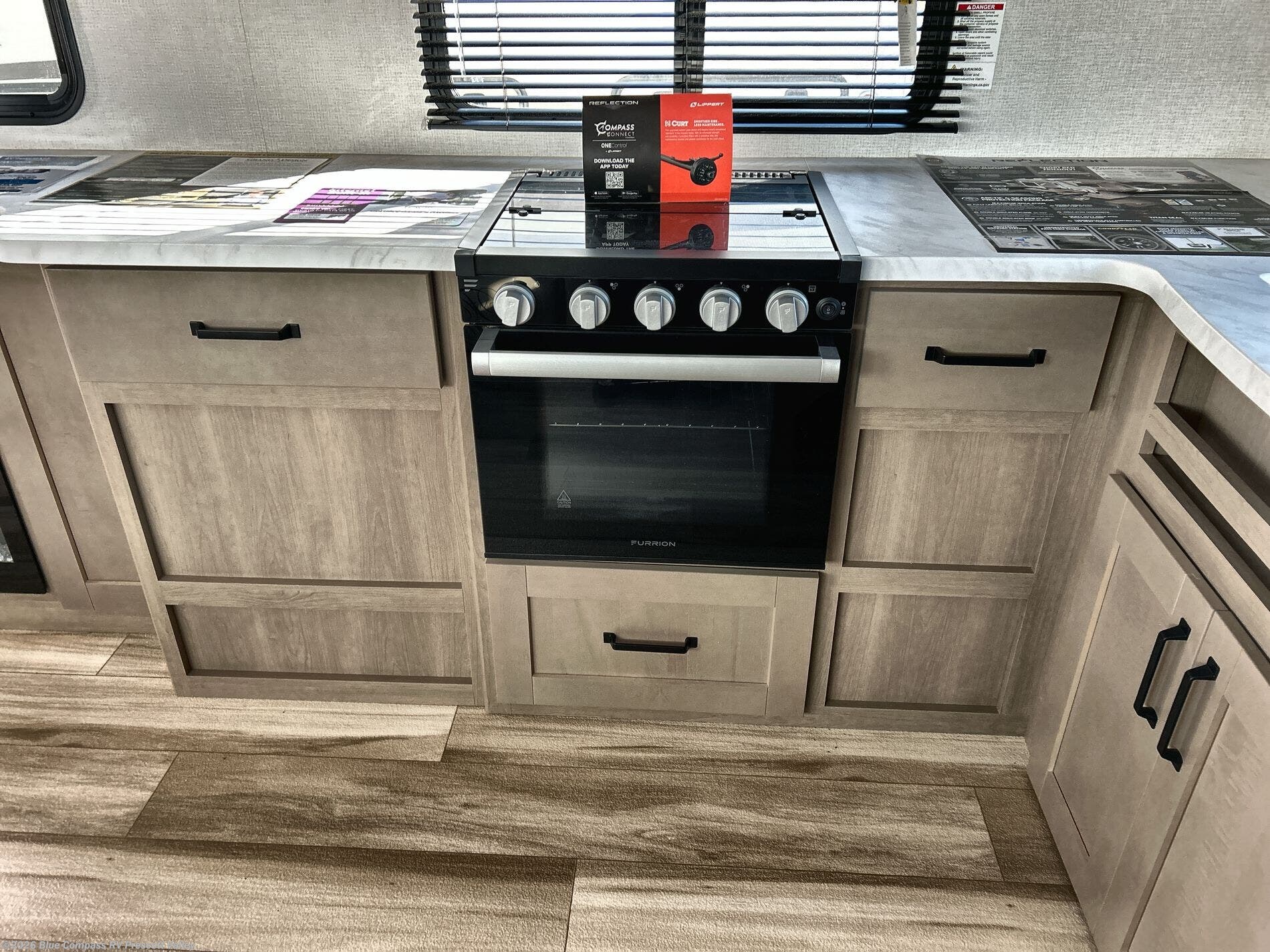 With any Reflection 150 Series fifth wheel by Grand Design, there is more available payload capacity and a broader range of half-ton trucks capable of towing this fifth wheel, and no slider hitch is needed thanks to the 90-degree turning radius which makes them short bed friendly and easier to tow. The mandatory Ultimate Power package provides a "One-Touch" automatic leveling system and a detachable power cord with LED light for easy setup, plus motion sensor pass-through lighting and entry lighting, and the Tire Linc TPMS will help you stay safe on the road. The interior offers residential luxury from the cabinetry and premium Congoleum flooring, to the booth dinette and residential-style window treatment. Make your refined decision today!