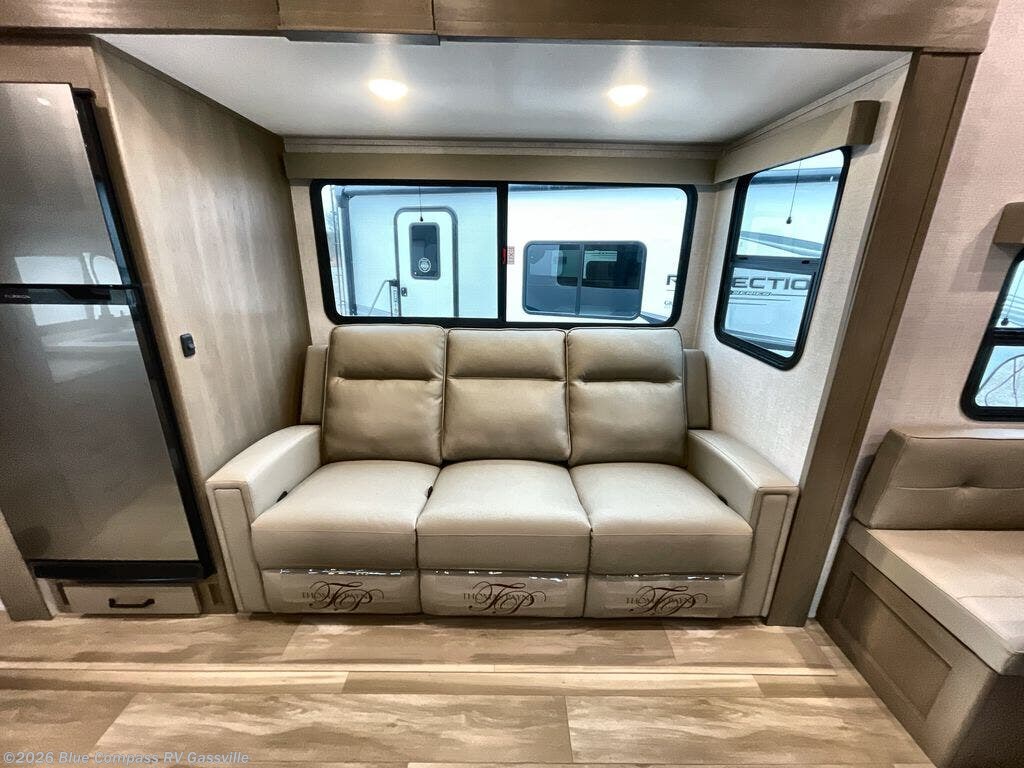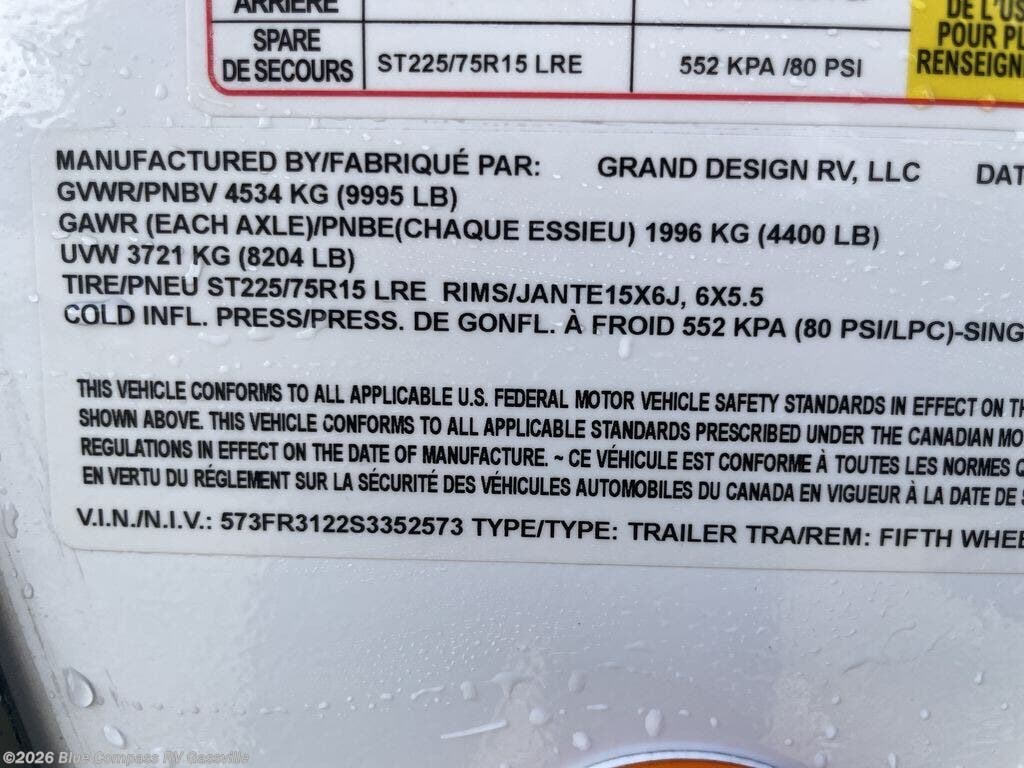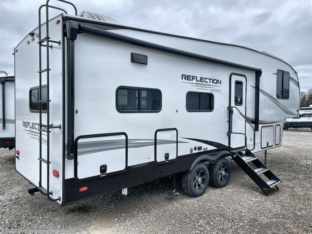 With any Reflection 150 Series fifth wheel by Grand Design, there is more available payload capacity and a broader range of half-ton trucks capable of towing this fifth wheel, and no slider hitch is needed thanks to the 90-degree turning radius which makes them short bed friendly and easier to tow. The mandatory Ultimate Power package provides a "One-Touch" automatic leveling system and a detachable power cord with LED light for easy setup, plus motion sensor pass-through lighting and entry lighting, and the Tire Linc TPMS will help you stay safe on the road. The interior offers residential luxury from the cabinetry and premium Congoleum flooring, to the booth dinette and residential-style window treatment. Make your refined decision today!