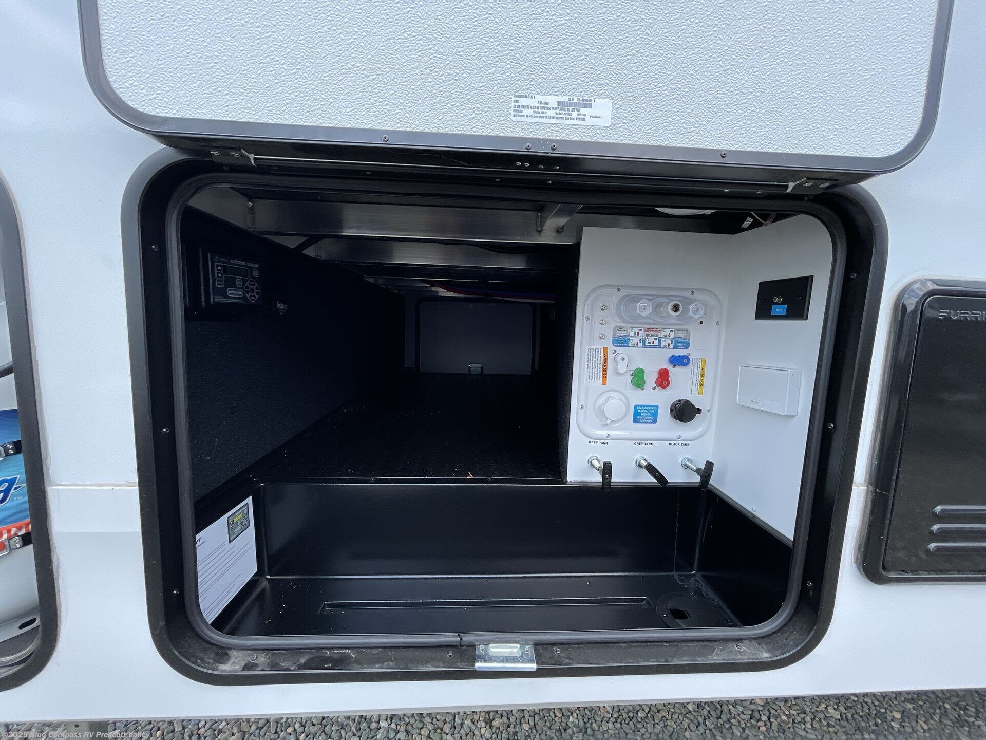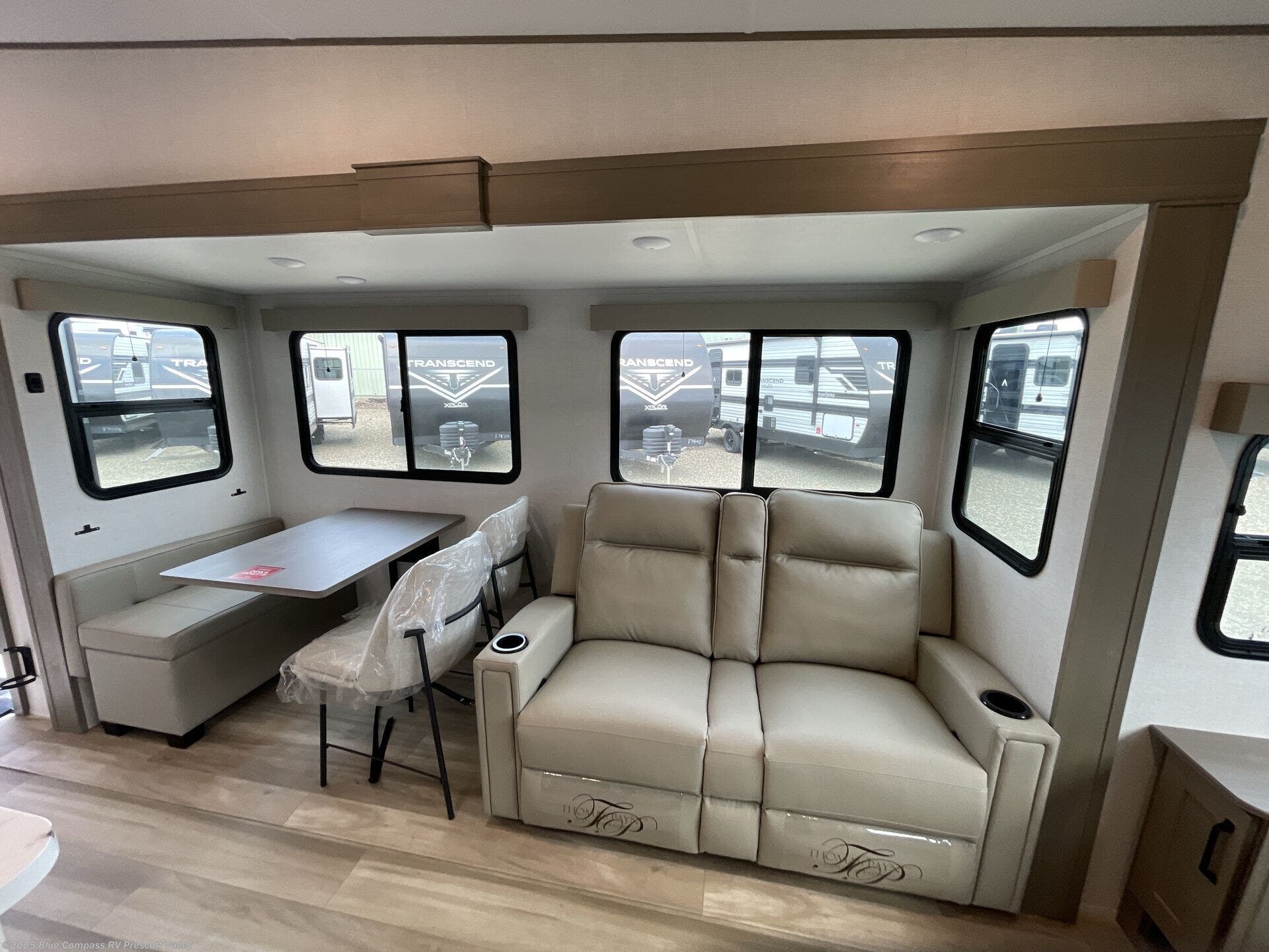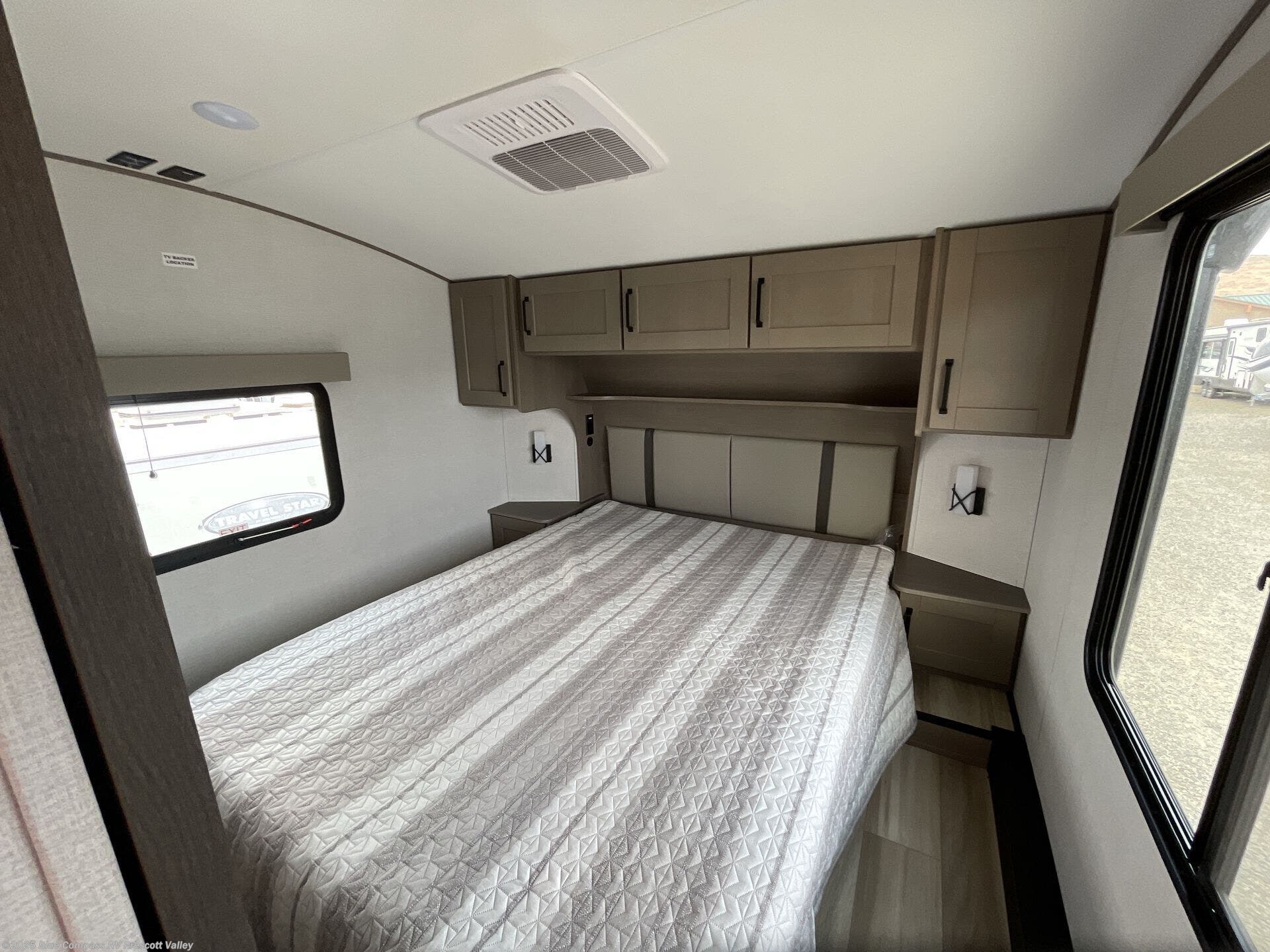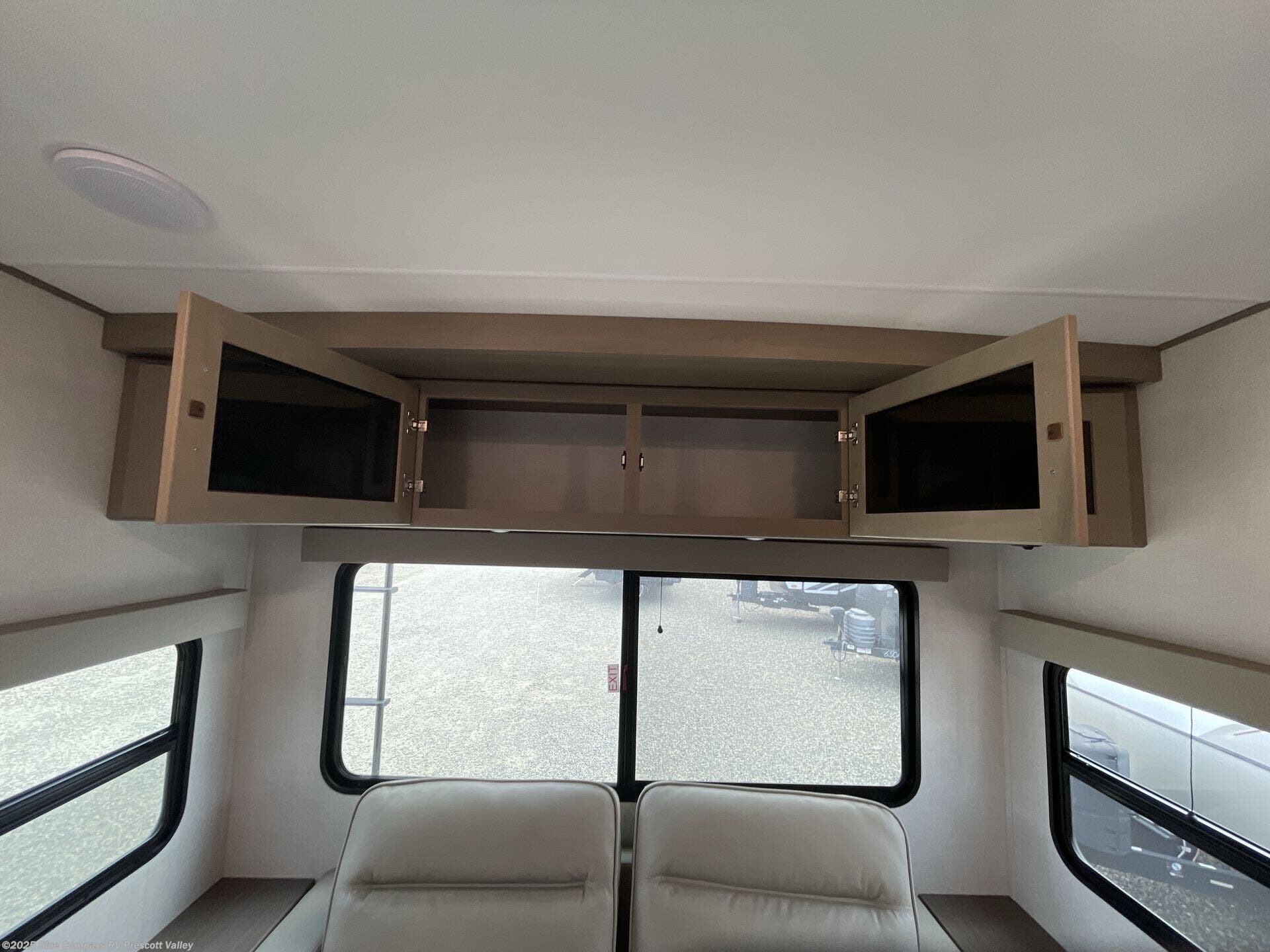 Get ready to enjoy everything the campgrounds and surrounding area has to offer when you are setup to camp in this fifth wheel! The two electric awnings offer protected areas creating outdoor living spaces; just grab your camping chairs from the unobstructed pass-through storage. And the interior offers a spacious living area and kitchen combination with dual opposing slides for maximum space. You can sit on the tri-fold sofa or the booth dinette with an option for a swivel dinette. The hutch and kitchen island offer counter space to prepare and serve meals, and there is a large pantry for goodies. The 40" LED HDTV with a fireplace below provides entertainment before bedtime or on a rainy day. And the front bedroom offers privacy, a walk-around queen bed, and plenty of storage!