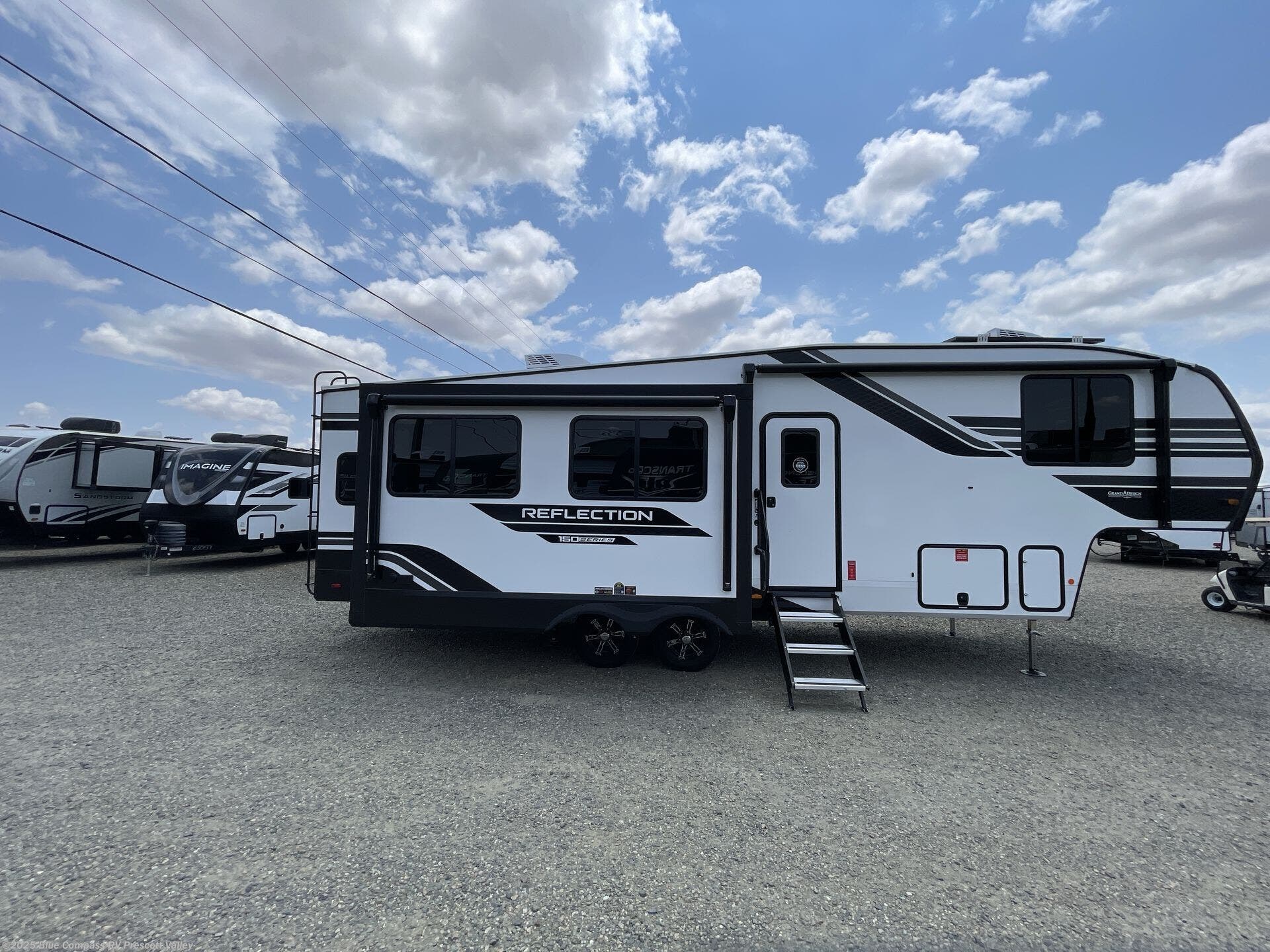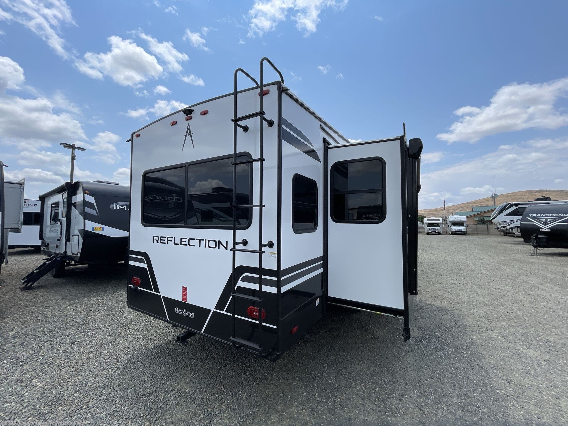 With any Reflection 150 Series fifth wheel by Grand Design, there is more available payload capacity and a broader range of half-ton trucks capable of towing this fifth wheel, and no slider hitch is needed thanks to the 90-degree turning radius which makes them short bed friendly and easier to tow. The mandatory Ultimate Power package provides a "One-Touch" automatic leveling system and a detachable power cord with LED light for easy setup, plus motion sensor pass-through lighting and entry lighting, and the Tire Linc TPMS will help you stay safe on the road. The interior offers residential luxury from the cabinetry and premium Congoleum flooring, to the booth dinette and residential-style window treatment. Make your refined decision today!