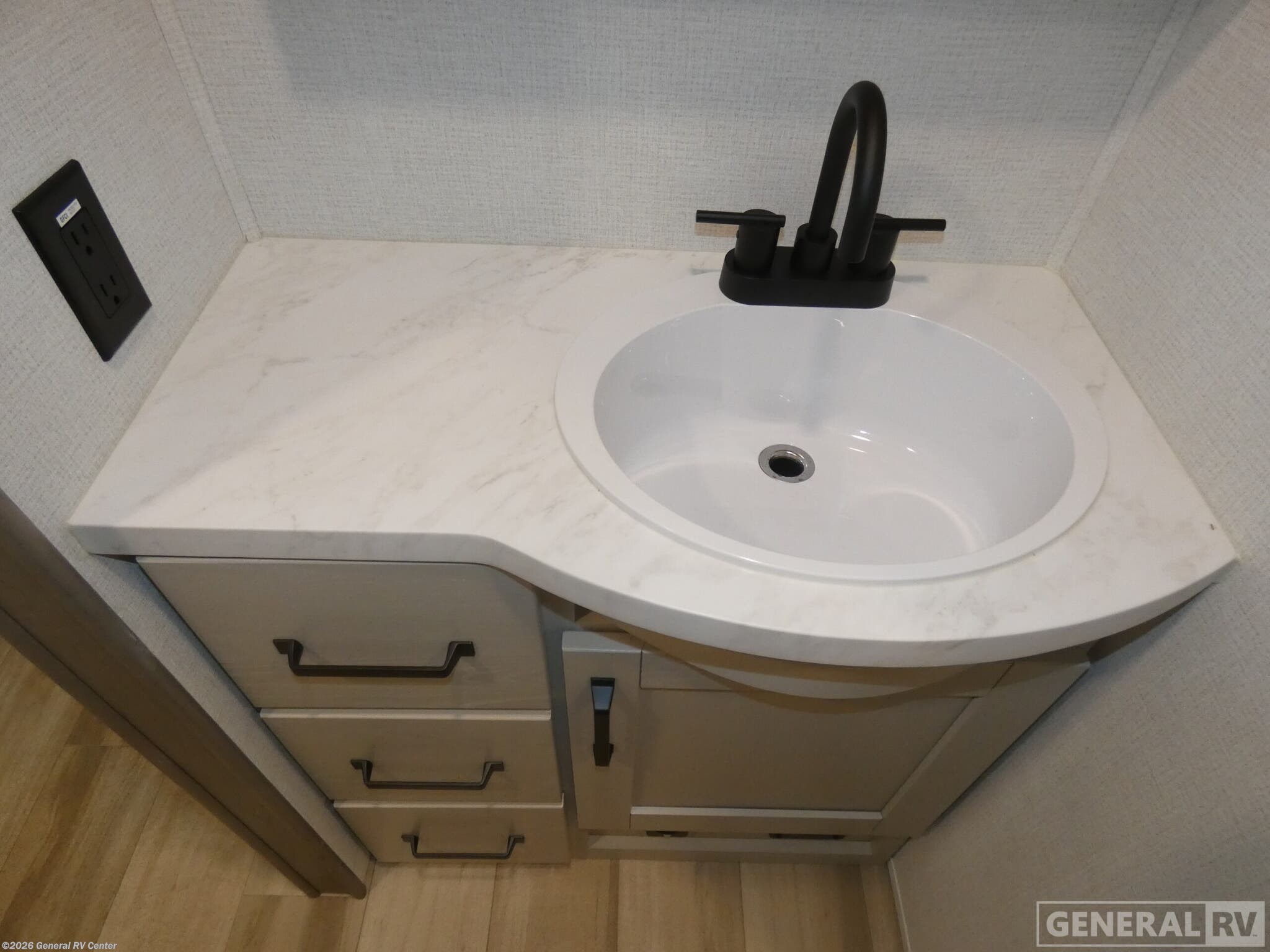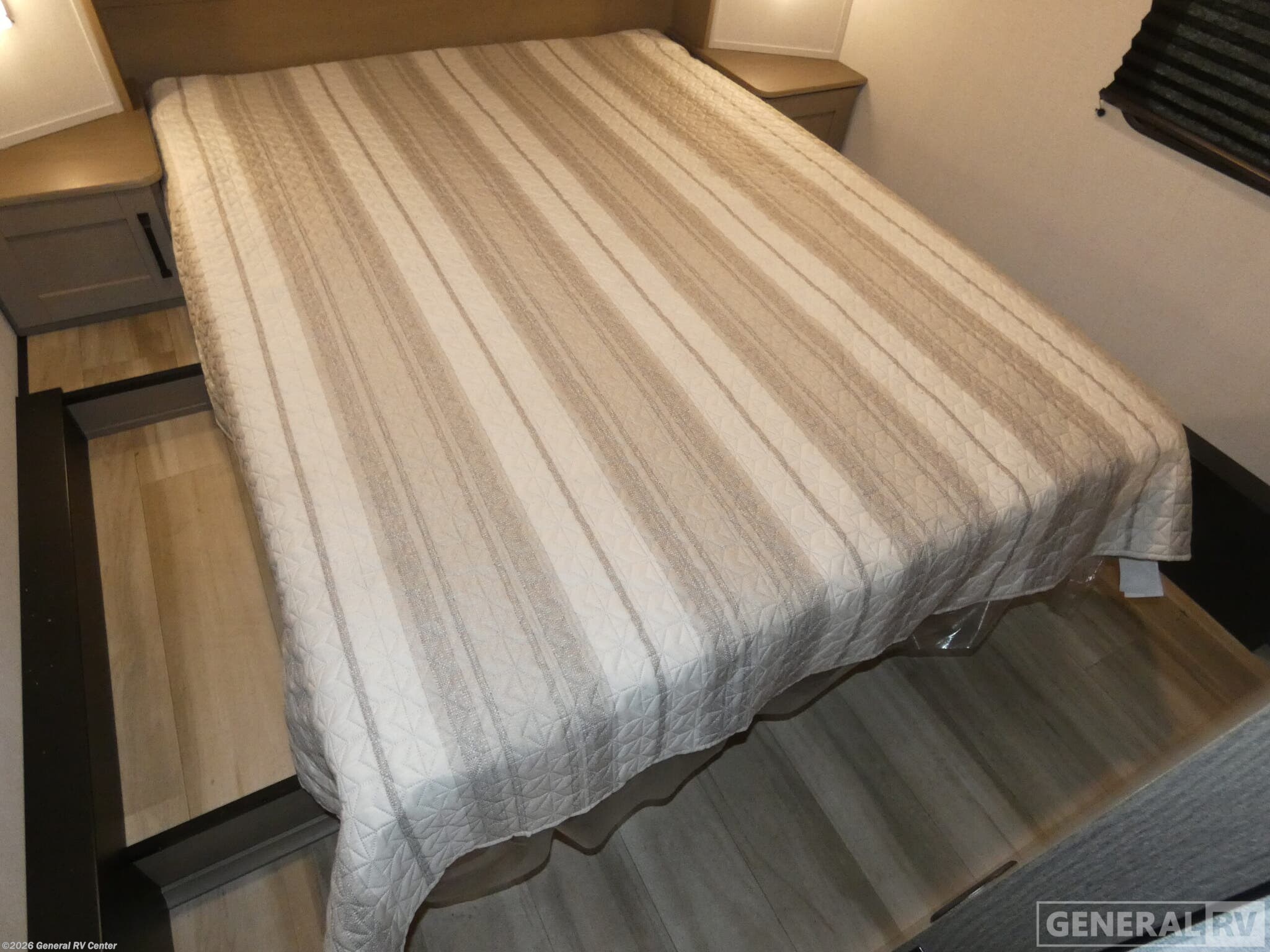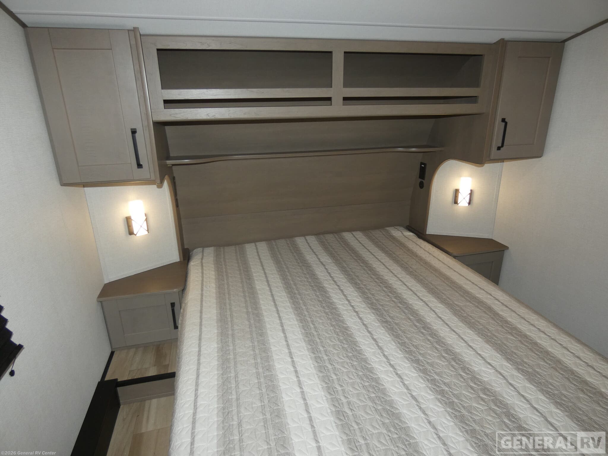 This rear kitchen fifth wheel is sure to meet all of your camping needs! Since the exterior length is only 26' 11", you can easily maneuver in and out of campgrounds. The rear kitchen includes ample counter space to prep meals, a three burner cooktop, and overhead storage for all your necessities. There is a 10 cu. ft. 12V refrigerator within the slide out that also includes the theater seating, and the U-shaped dinette provides a place to dine or play a card game. You will appreciate having convenient storage by the entry door, along with pull-out pet bowls, a functional wardrobe closet in the bedroom and an exterior pass-thru for belongings and camping gear. When you're ready to turn in for the night, the queen bed is sure to bring a great night's rest, while your guests sleep on the booth dinette! Each Reflection 100 Series fifth wheel by Grand Design is affordable and packed with luxury for unforgettable camping memories! The MorRyde CRE3000 suspension system and Goodyear Endurance tires will provide smooth towing from home to campground. And the solar package with a 180W solar panel, 60 Amp charge controller and 12V refrigerator will allow you to camp for longer periods of time and in more locations! A heated and enclosed underbelly with circulating heat is included in the Arctic 4-Seasons Protection Package, along with a double insulated roof and front cap, and thermofoil insulation under the holding tanks so you can camp all year long if you choose. You will appreciate having an on-demand water heater for hot showers after exploring, and the universal all-in-one docking station will let you monitor your RVs tanks levels and functions with ease. These models also include many luxurious interior features, such as premium Congoleum flooring, pleated shades, residential cabinetry, and matte black fixtures and hardware. Don't let the Reflection 100 Series fifth wheels pass you by!