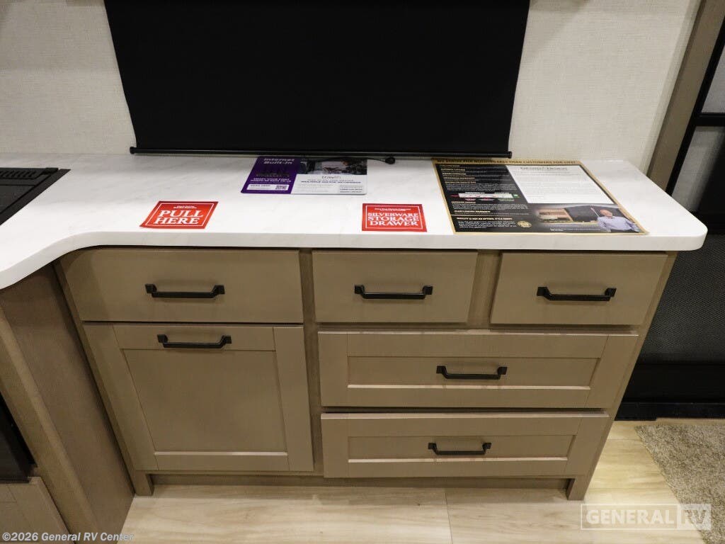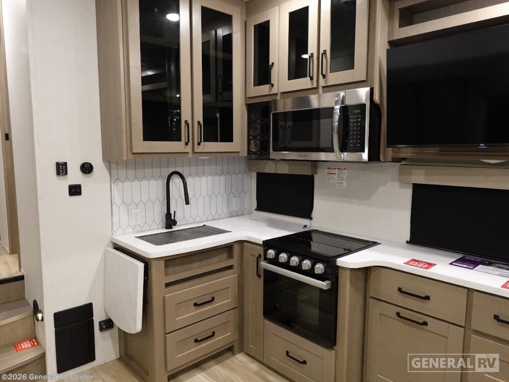 Step into the 2025 Grand Design Reflection 150 Series 260RD, where luxury meets practicality in a spacious yet cozy environment. This fifth wheel is designed for both adventure and relaxation, offering a perfect blend of comfort and convenience. With its rear living area, you'll enjoy the plush 78" theater seating and a U-shaped lounge, perfect for entertaining or unwinding after a day of exploration. The entertainment center, complete with a 40" TV, ensures that you can enjoy your favorite shows or movies in style. The center kitchen boasts a full-size refrigerator and a three-burner cooktop, making meal preparation a breeze, whether you're cooking up a quick breakfast or a gourmet dinner. The Reflection 150 Series 260RD also features a thoughtfully laid out front bedroom with a 60" x 80" queen bed, ensuring restful nights under the stars. The center bath offers convenience and privacy, with a stylish design that complements the overall aesthetic of the RV. With an 18 ft. powered retractable awning, you can easily extend your living space outdoors, perfect for enjoying a morning coffee or an evening under the stars. The ample storage, including unobstructed pass-thru storage, ensures you can bring all your essentials along for the journey. Embrace the open road with the Reflection 150 Series 260RD and make unforgettable memories. Visit your nearest General RV dealership to explore this remarkable RV in person!