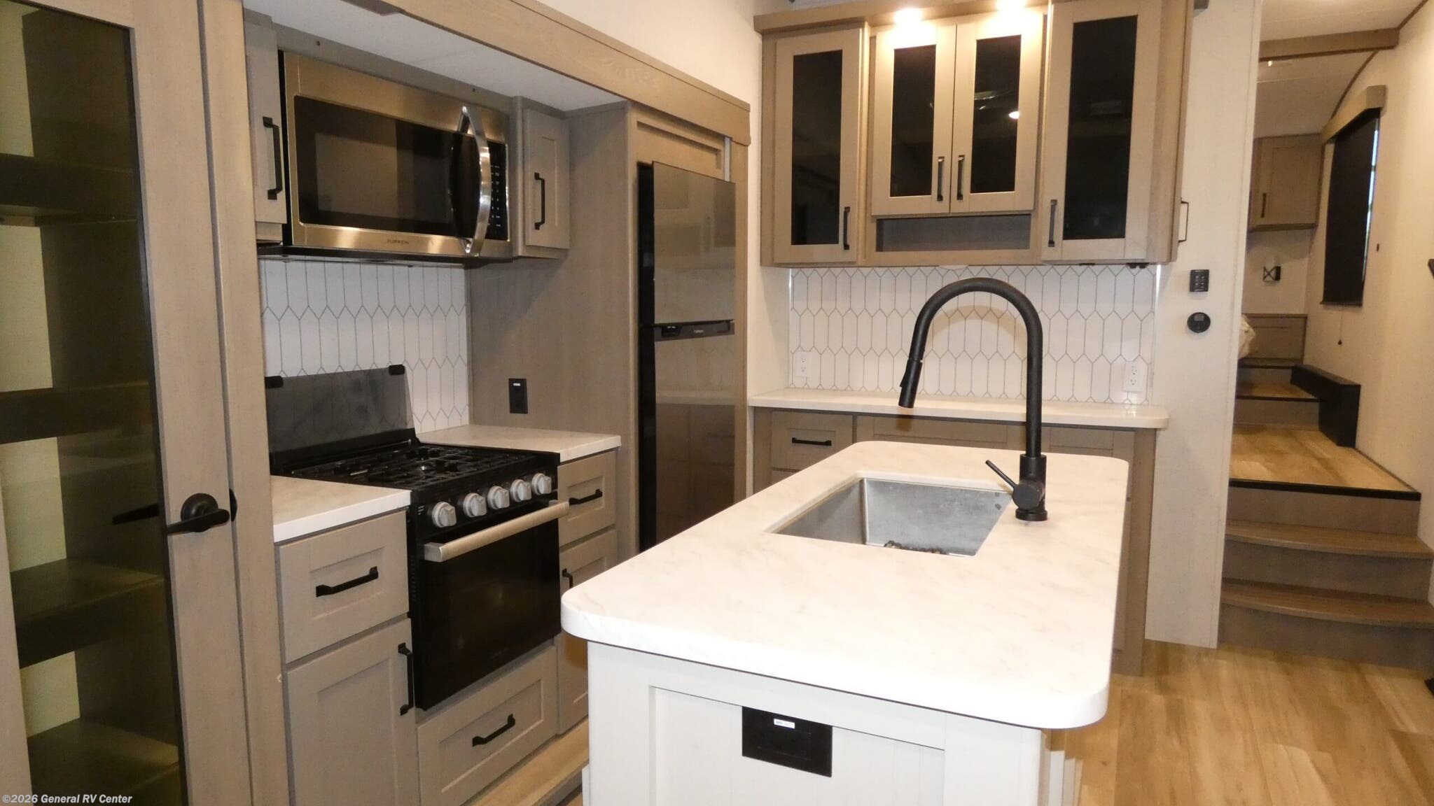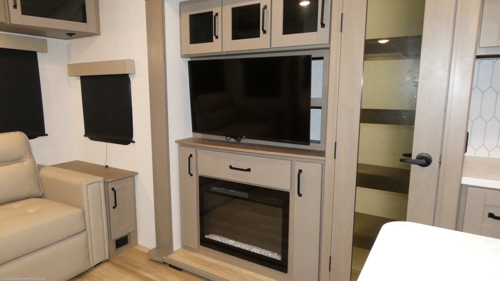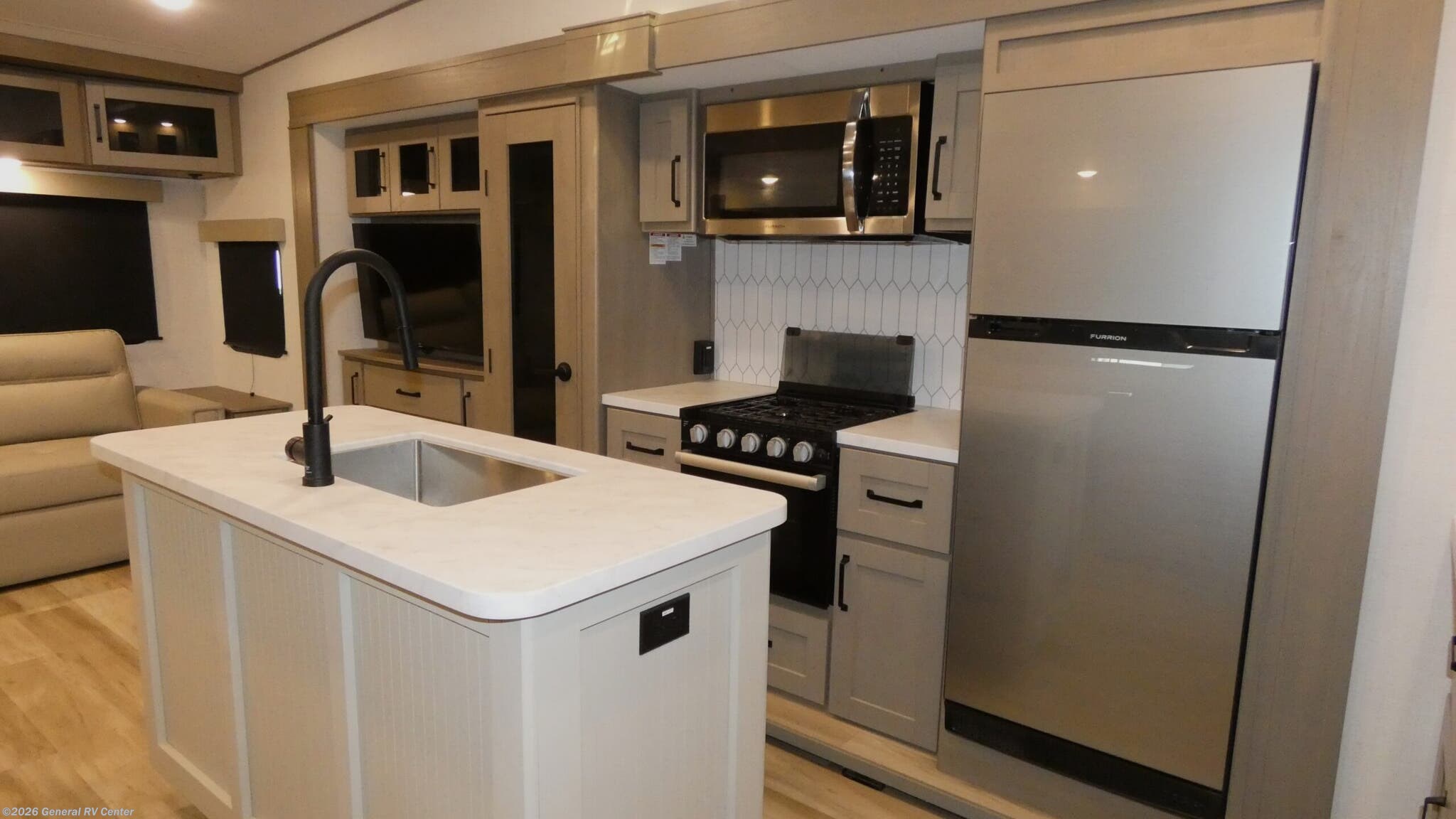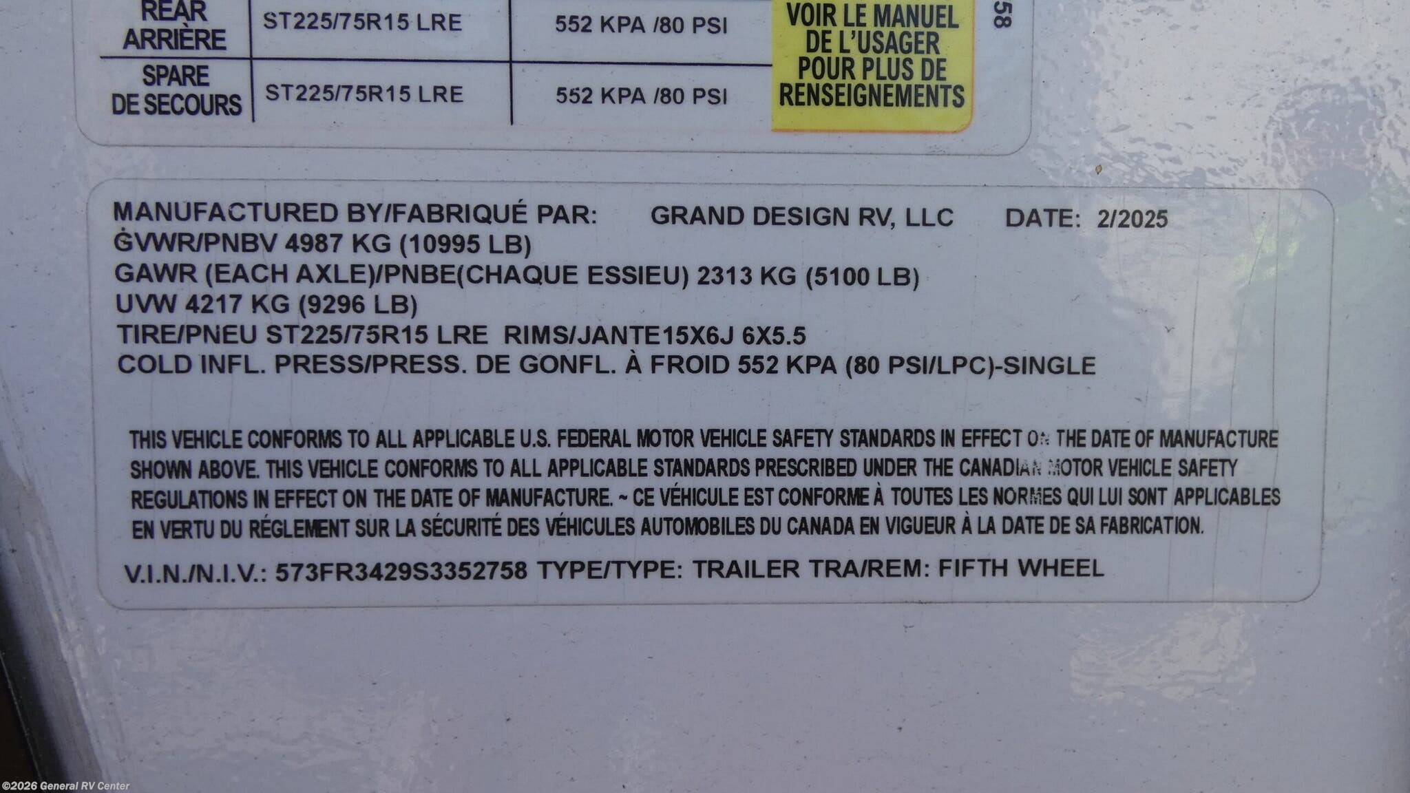 Step into the 2025 Grand Design Reflection 150 Series 295RL, where luxury and practicality blend seamlessly to create the ultimate travel experience. This fifth wheel is designed with a keen eye for detail, offering a spacious and inviting rear living area complete with theater seating and a tri-fold sofa. Perfect for entertaining or relaxing after a day of adventure, the living space is complemented by an entertainment center that promises endless enjoyment. The center kitchen, equipped with a full-size electric refrigerator and a three-burner cooktop, ensures you can prepare gourmet meals on the go, while the optional swivel dinette provides a cozy spot for dining. The Reflection 150 Series 295RL doesn't just stop at comfort; it excels in convenience too. The front bedroom features a queen bed, offering a restful retreat, while the centrally located bath ensures easy access from all areas of the RV. With a generous fresh water capacity of 55 gallons and ample gray and black water storage, your off-grid adventures are well-supported. Two powered retractable awnings extend your living space outdoors, providing shade and comfort as you enjoy the scenery. Whether you're embarking on a weekend getaway or a cross-country journey, this RV is your perfect companion. For more details, visit your nearest General RV dealership.
