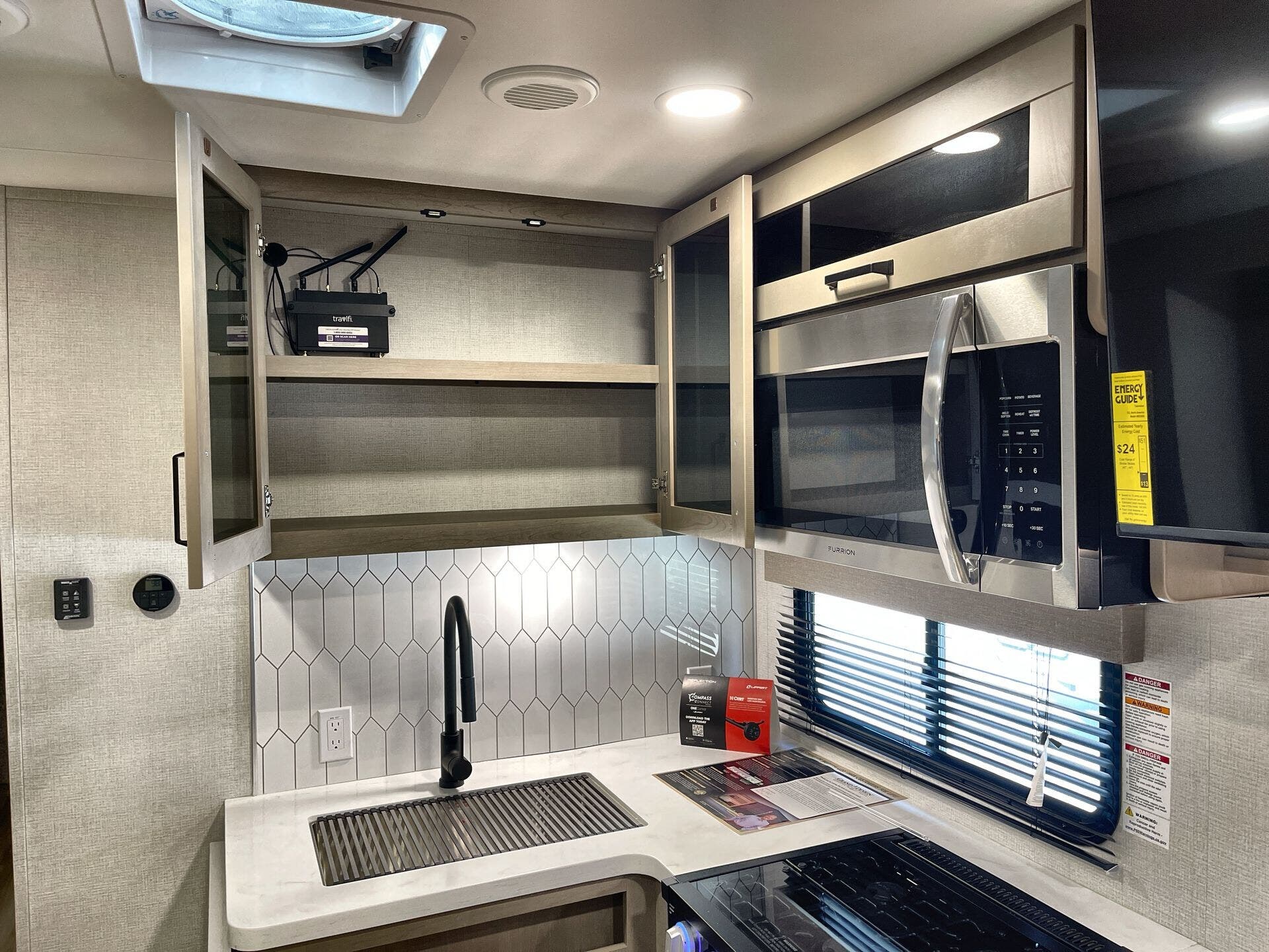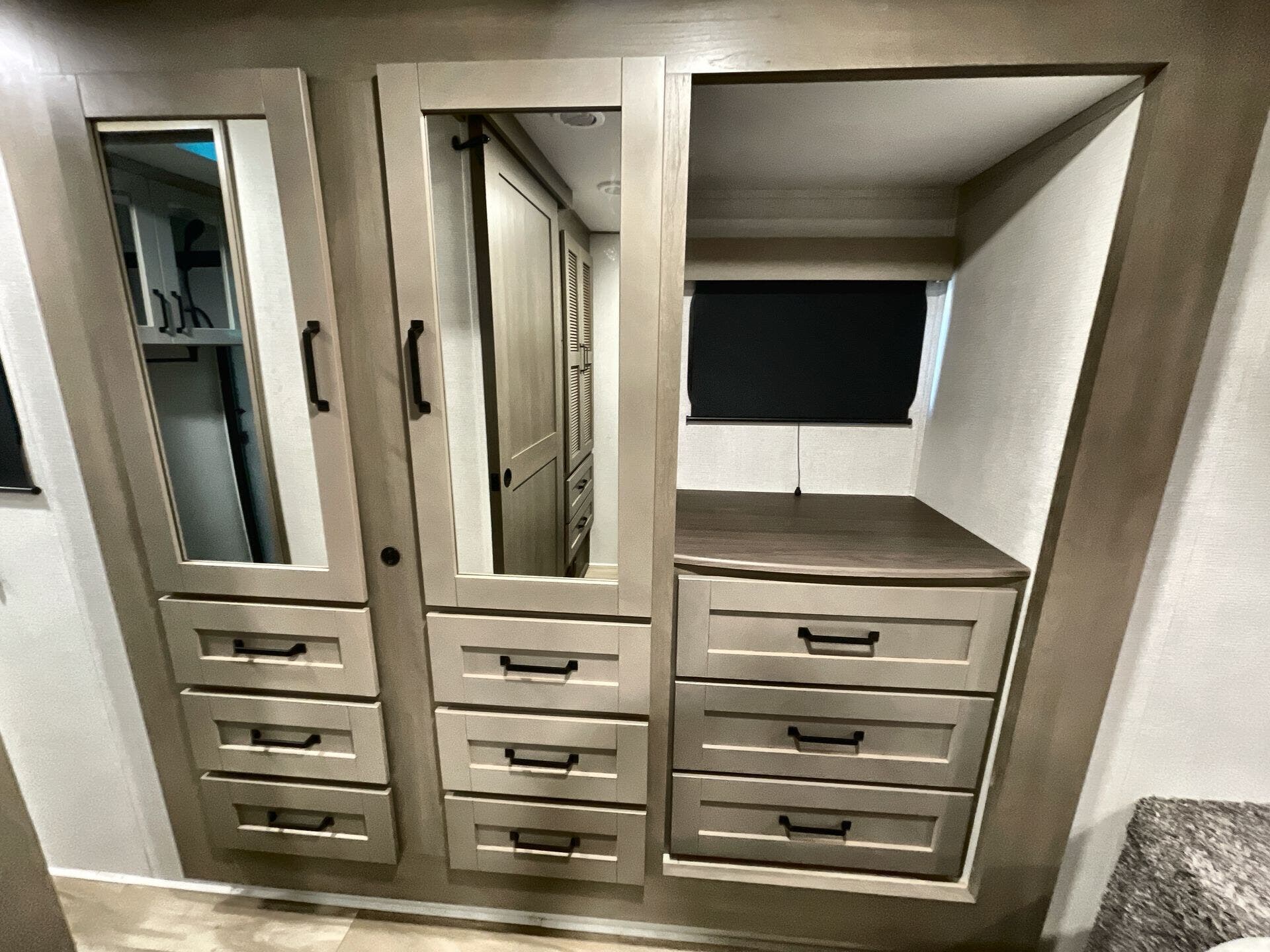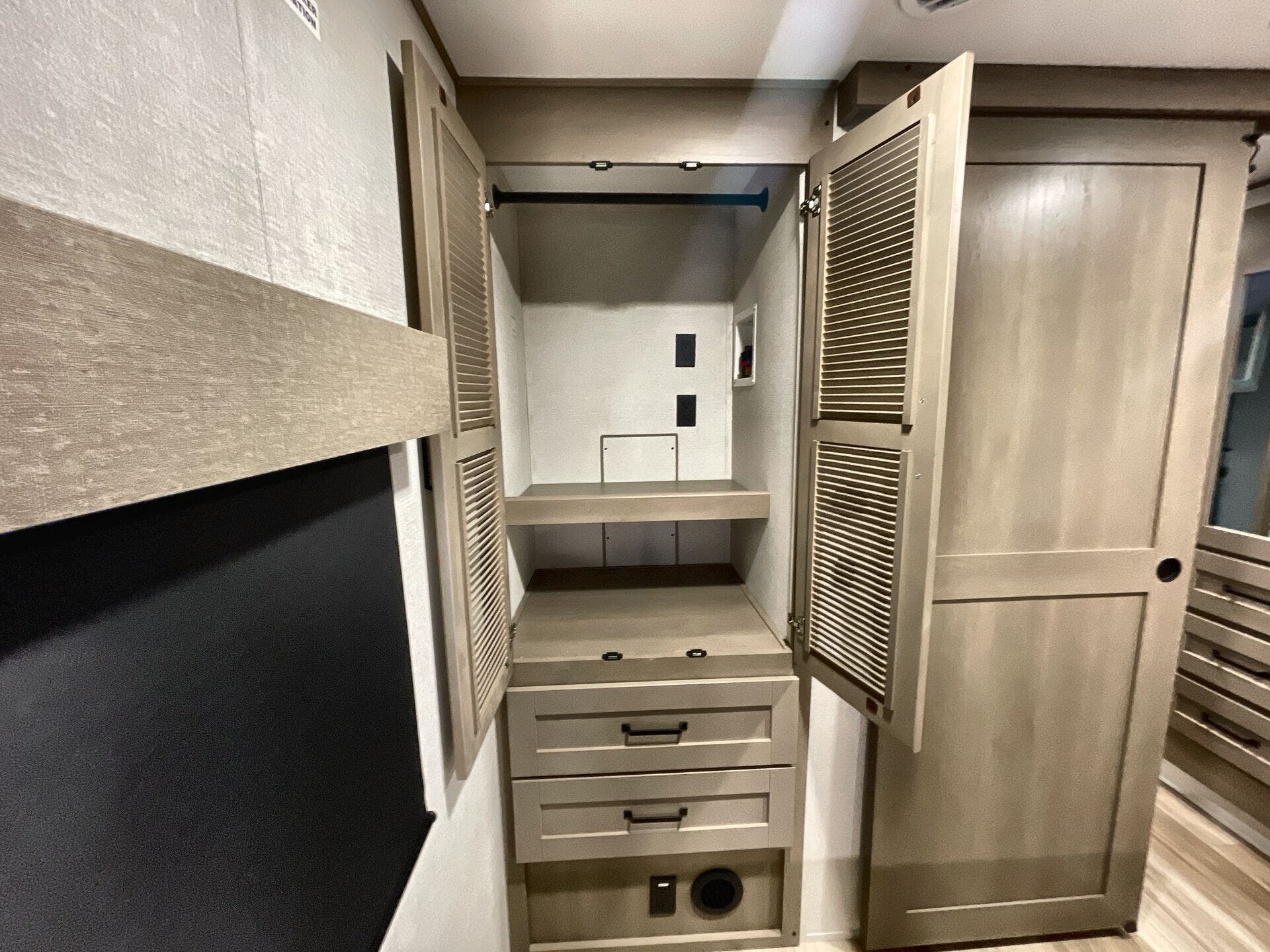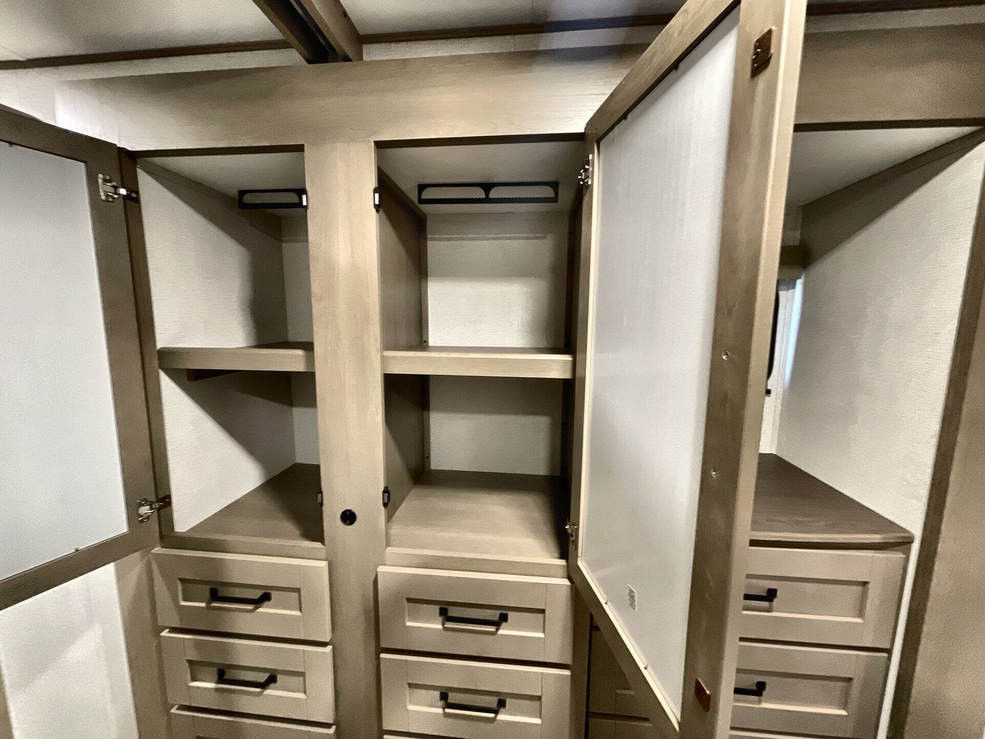 Dinette Bed, Kitchen Sink, Medicine Cabinet, Overhead Cabinetry, Pantry, Shower, Theater Seating, Toilet, Wardrobe(s), Washer/Dryer Prep