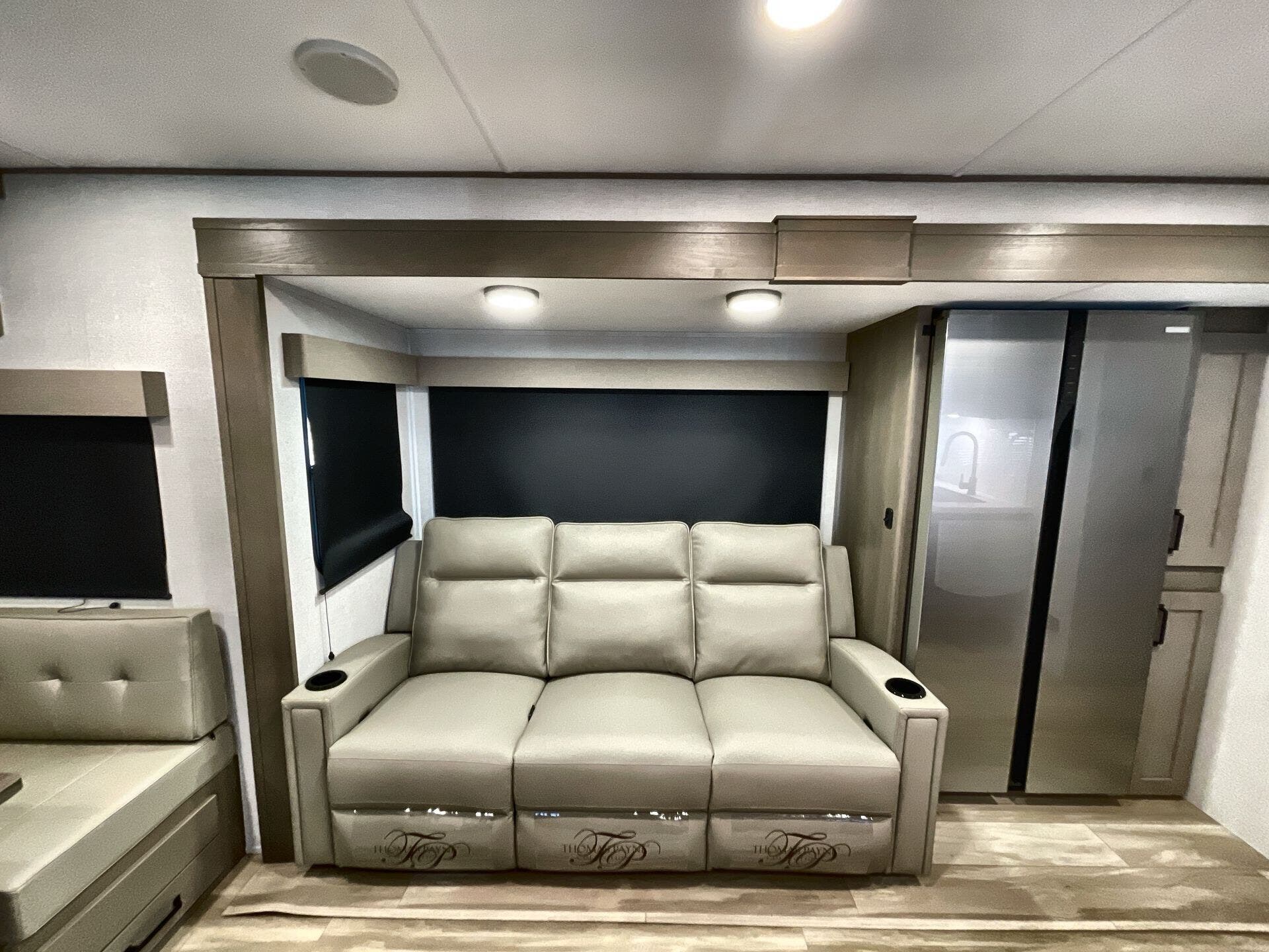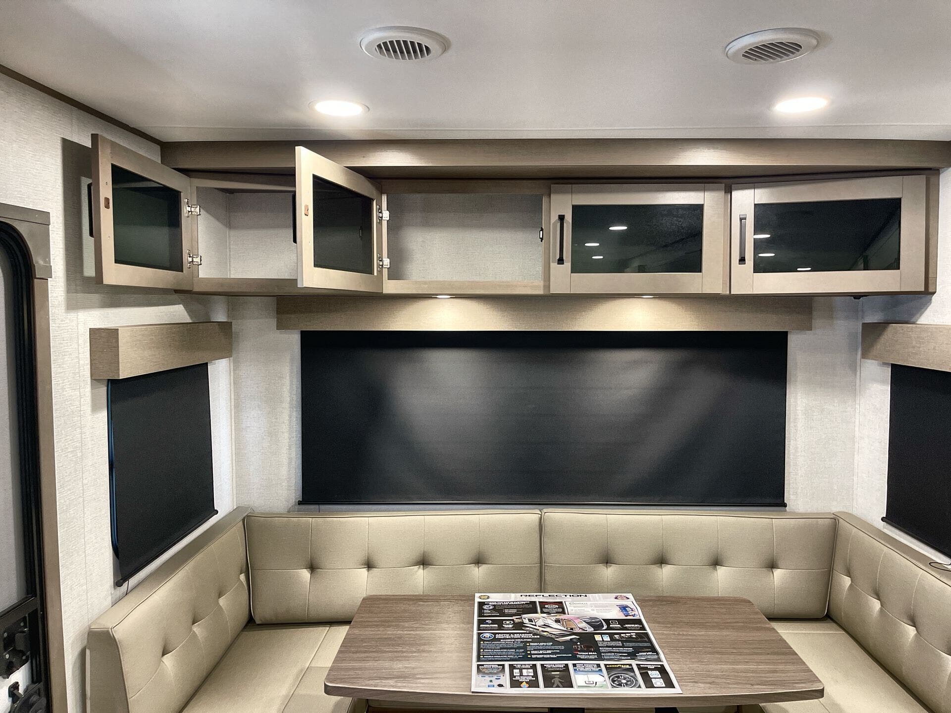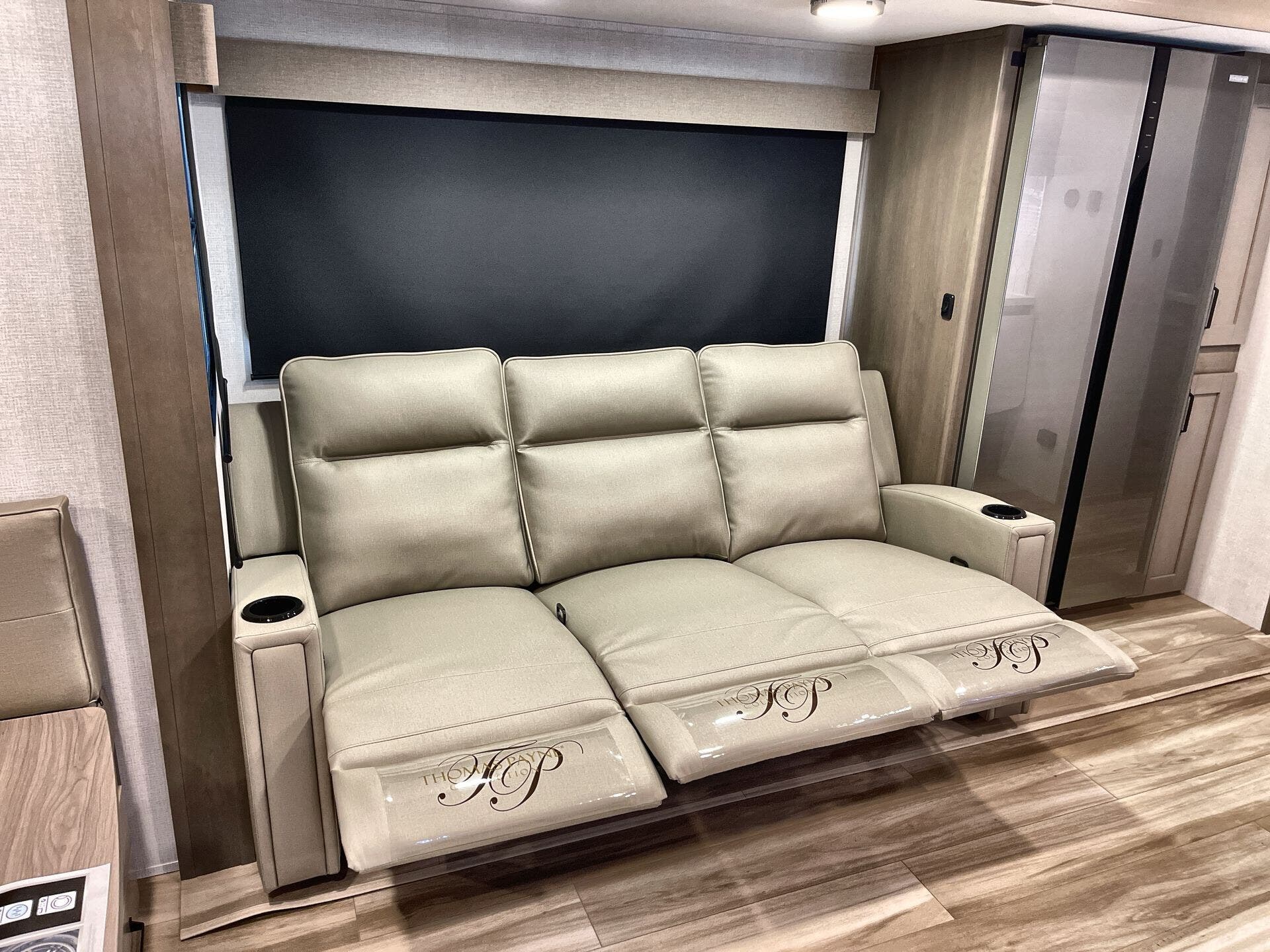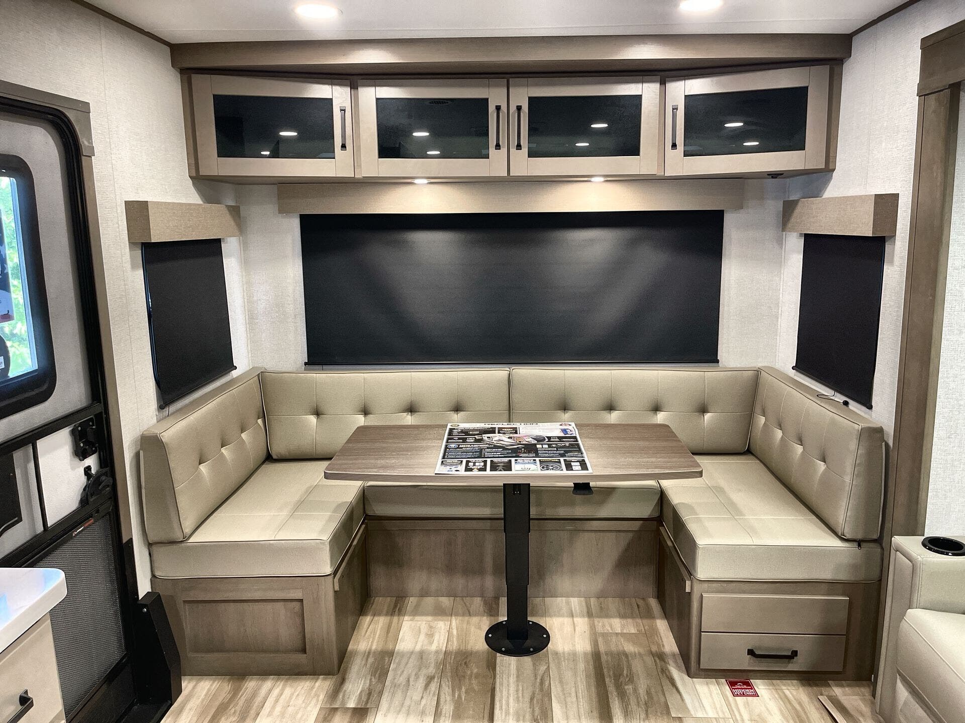 - Comfortable theater seating and a U-shaped dinette that converts into a convenient bed