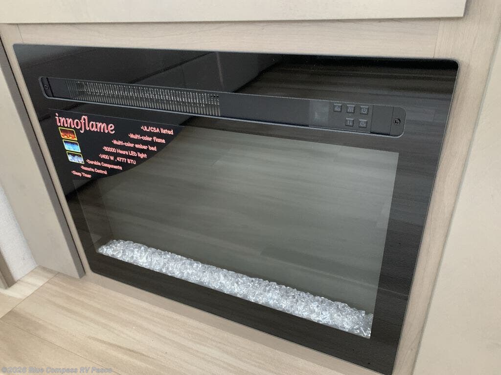 This rear living travel trailer will be perfect for extended stays at the campground or quick weekend trips to the lake! Once you've unloaded your gear from the pass-thru storage, head inside to relax on the rear tri-fold sofa with an adjustable headrest or on the theater seating across from the 40" TV and fireplace. There is also a booth dinette where you can dine together, or you can choose the optional swivel dinette. The spacious kitchen island will make meal time easier than ever, plus there is a pantry and 16 cu. ft. 12V refrigerator for food storage. The full bath is right next to the front private bedroom for easy nighttime use, and speaking of nighttime, you're sure to sleep soundly on the queen bed slide. There is also a large front closet, TV prep, plus washer and dryer prep if you choose to add these appliances.