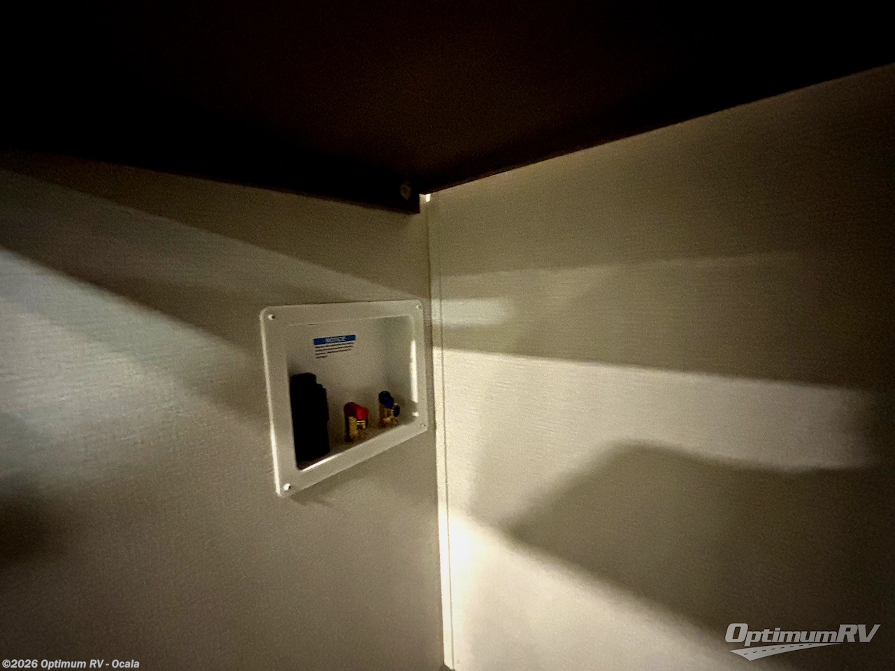 This rear living travel trailer will be perfect for extended stays at the campground or quick weekend trips to the lake! Once you've unloaded your gear from the pass-thru storage, head inside to relax on the rear tri-fold sofa with an adjustable headrest or on the theater seating across from the 40" TV and fireplace. There is also a booth dinette where you can dine together, or you can choose the optional swivel dinette. The spacious kitchen island will make meal time easier than ever, plus there is a pantry and 16 cu. ft. 12V refrigerator for food storage. The full bath is right next to the front private bedroom for easy nighttime use, and speaking of nighttime, you're sure to sleep soundly on the queen bed slide. There is also a large front closet, TV prep, plus washer and dryer prep if you choose to add these appliances.