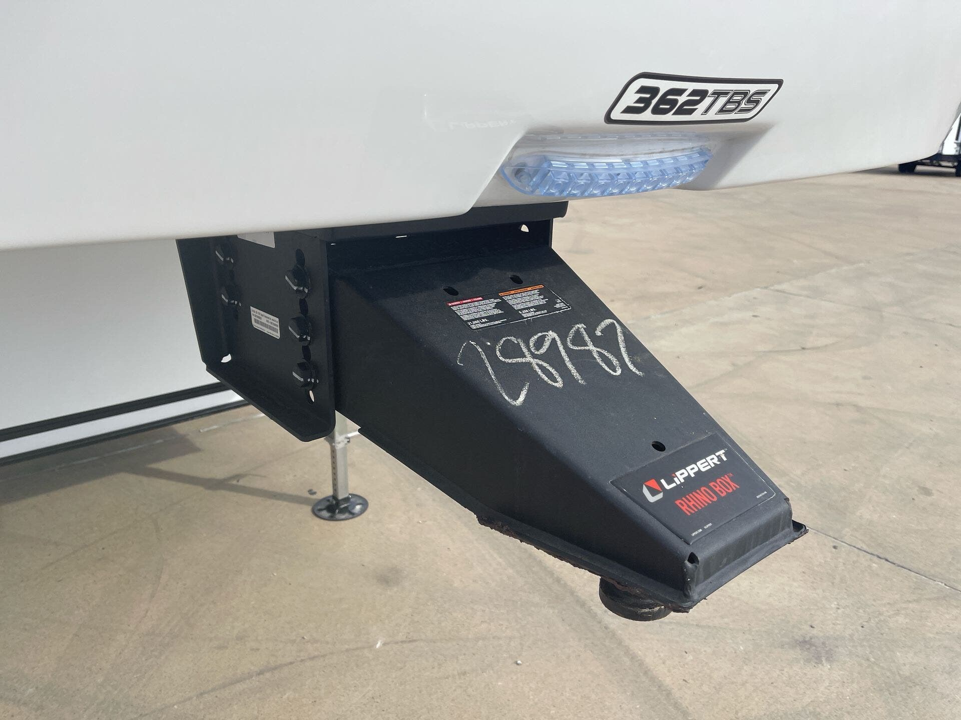 The 362TBS floorplan features four slide-outs, enhancing the interior living space significantly. It offers two private bedrooms: a front master bedroom with a queen-size bed, ample storage, and direct access to a full bathroom; and a mid-ship bunkhouse with a 54" x 74" top bed above a queen bed, its own half bathroom, and additional storage solutions. ?cite?turn0search2?