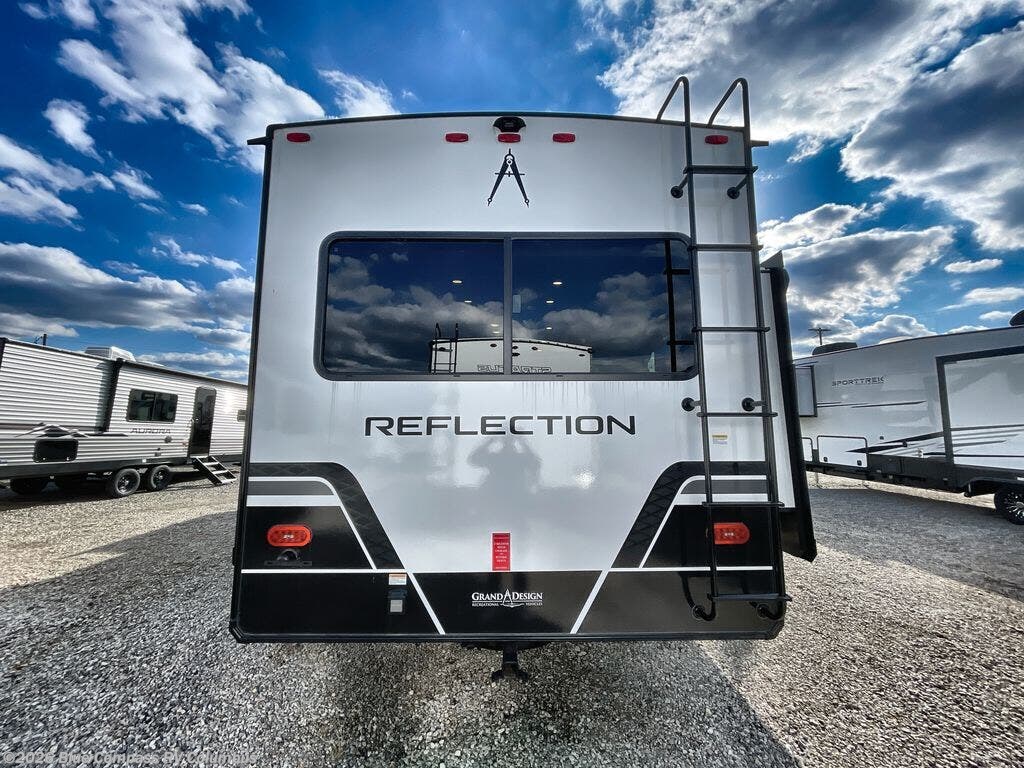 With any Reflection fifth wheel by Grand Design, you will have a solar panel for off-grid camping and a 60 amp charge controller and inverter prep, a Universal All-In-One docking station, unobstructed pass-through storage, and Goodyear Endurance tires. Each is constructed of gel coat exterior sidewalls, residential 5" truss rafters, walk-on roof decking, a fiberglass and radiant foil roof and front cap insulation plus laminated aluminum framed side walls, roof and end walls in slide rooms. Head inside to enjoy residential hardwood cabinet doors, premium Congoleum flooring, a spacious shower with a glass door, and many more comforts!