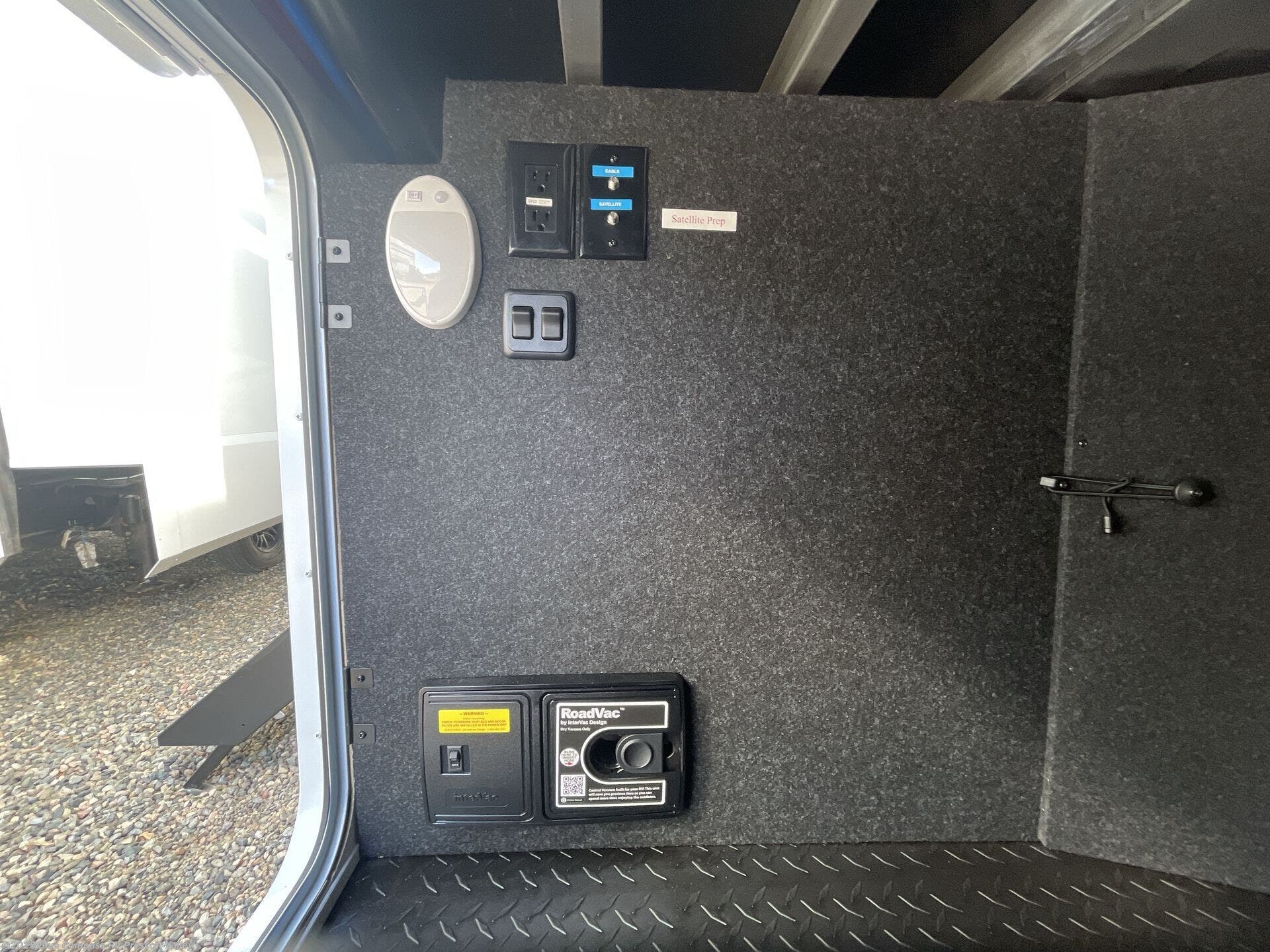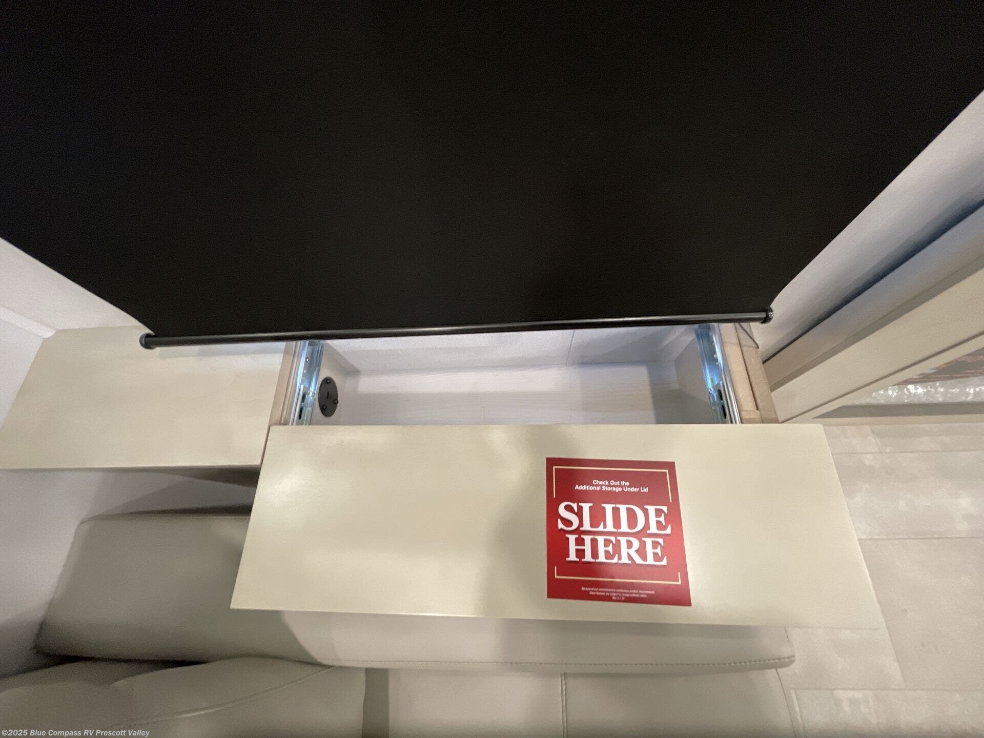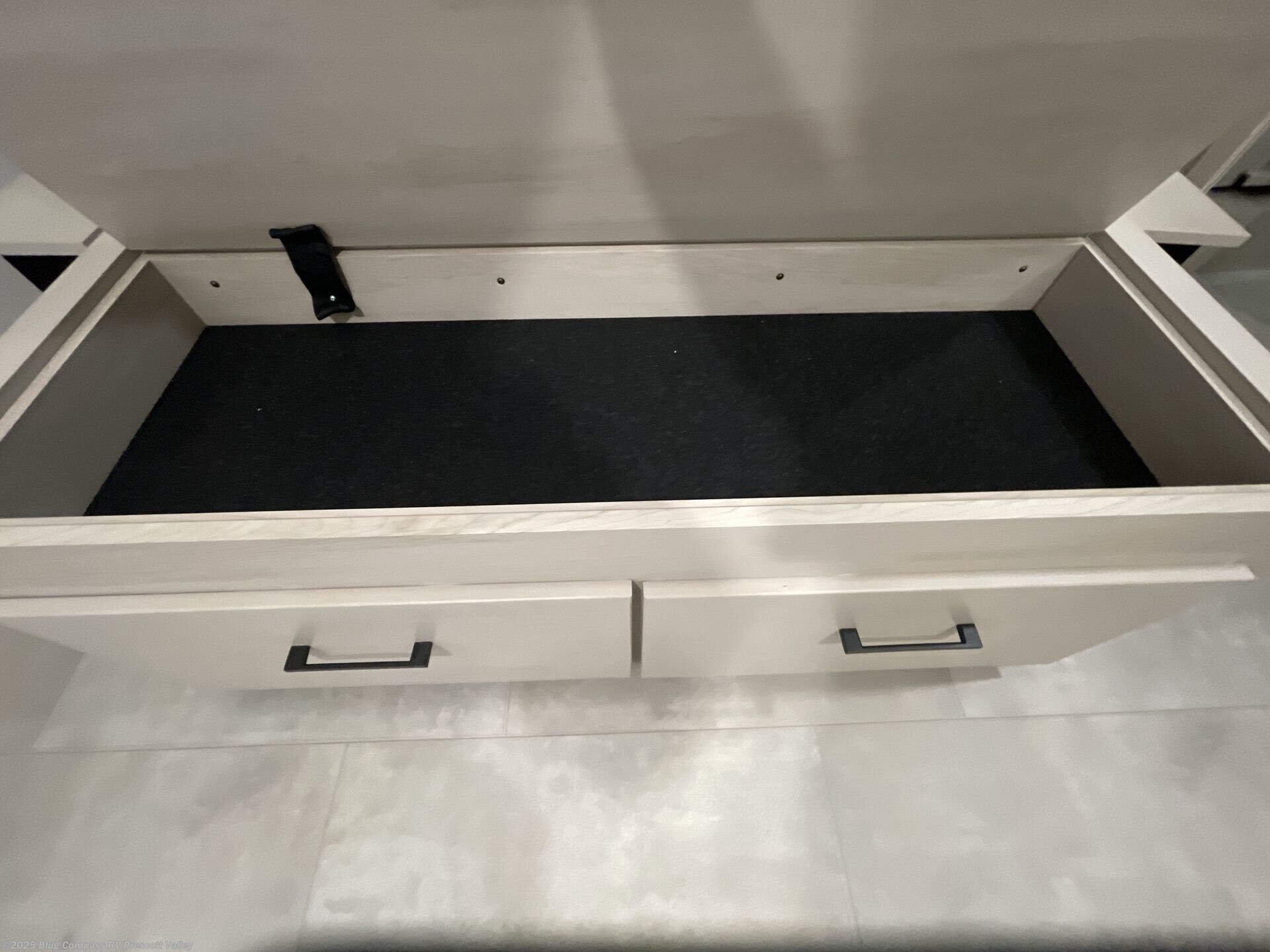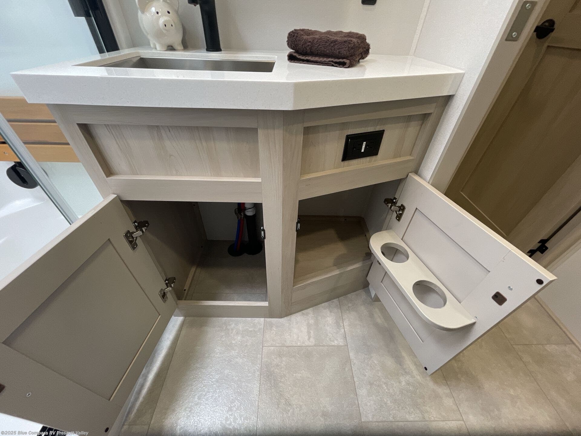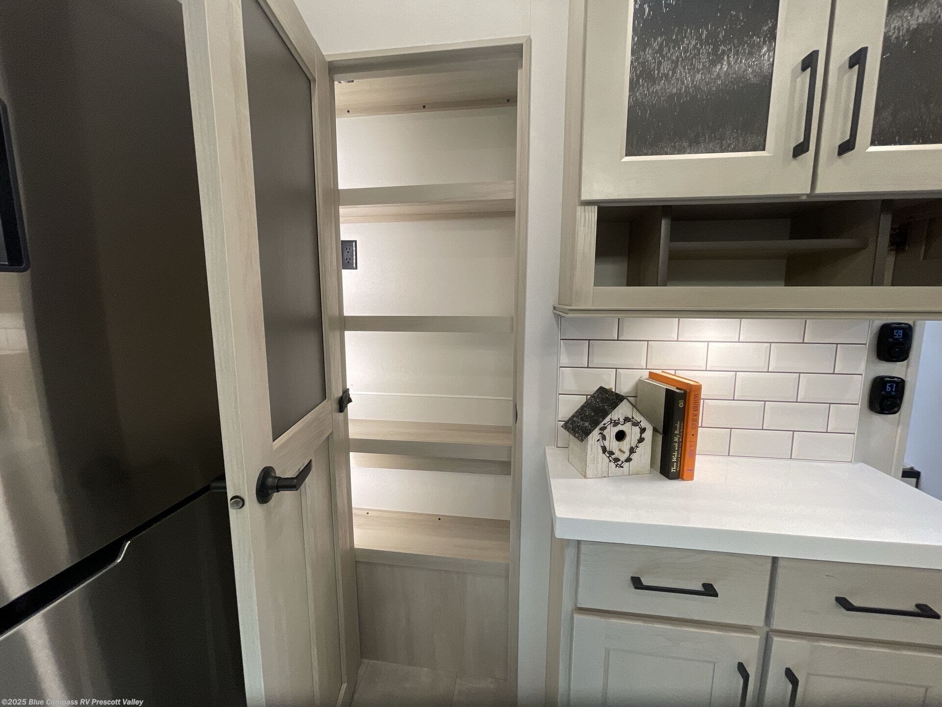 Traveling for long periods at a time is made easy with this gourmet kitchen that can feed your entire group a holiday meal! The professional-grade stainless steel cooktop with a built-in oven, microwave, 12V 20 cu. ft. refrigerator, and a kitchen island offers everything you will need to enjoy cooking for your family and guests. There is abundant storage throughout multiple overhead cabinets, a kitchen pantry and hutch, a bath linen cabinet for your towels, and in the front master bedroom which features a large closet. In the bedroom there is also a queen bed slide for added space to sleep comfortable at night, or you may choose an optional king bed if you enjoy more space. You will also find a closet with washer/dryer prep, large wardrobe, a clothes hamper plus a slide top dresser. Two nice awnings will provide outdoor living space keeping you protected from the sun and rain, and you can add an optional pull-out kitchen to enjoy convenient cooking outdoors as well.